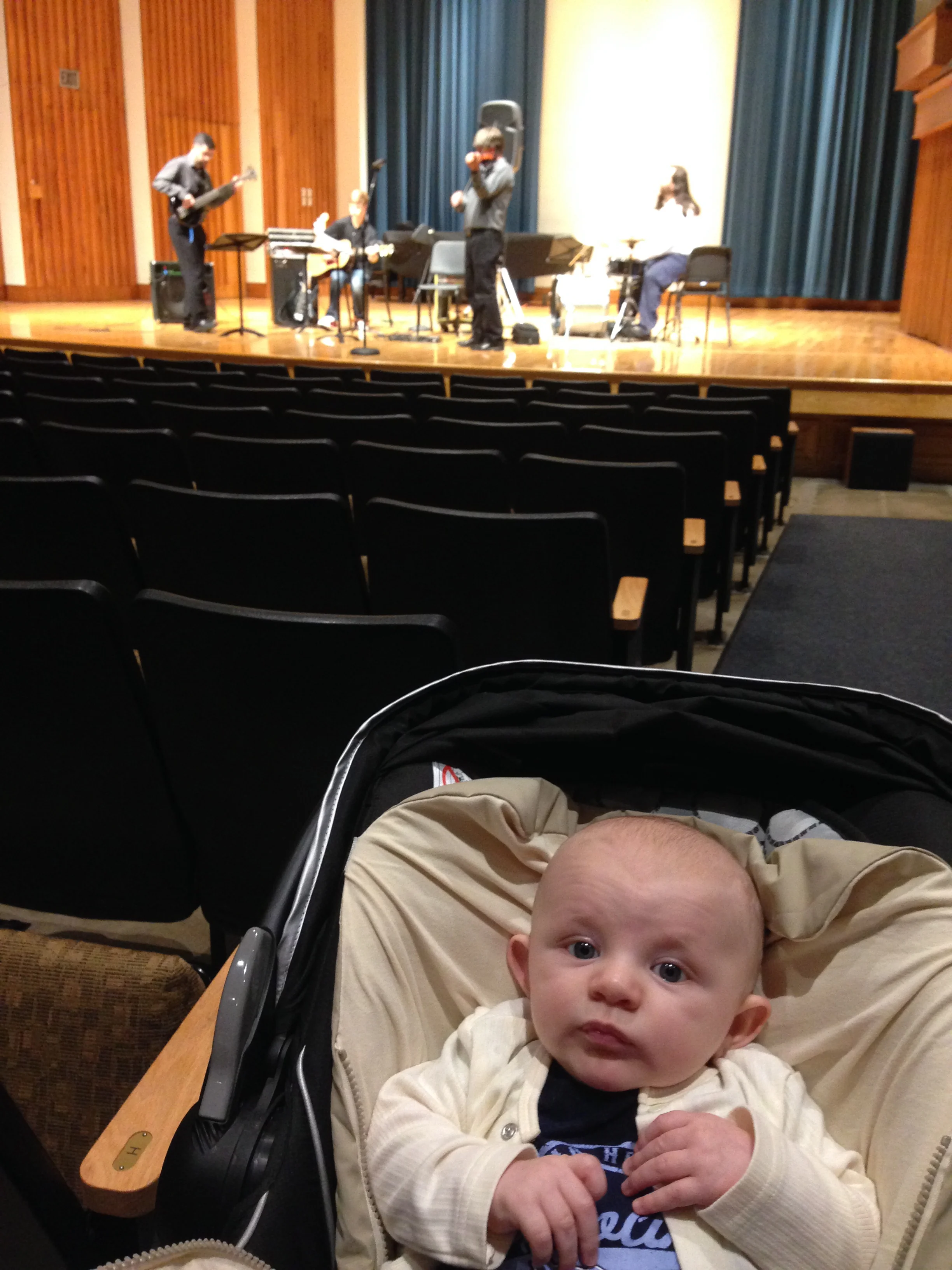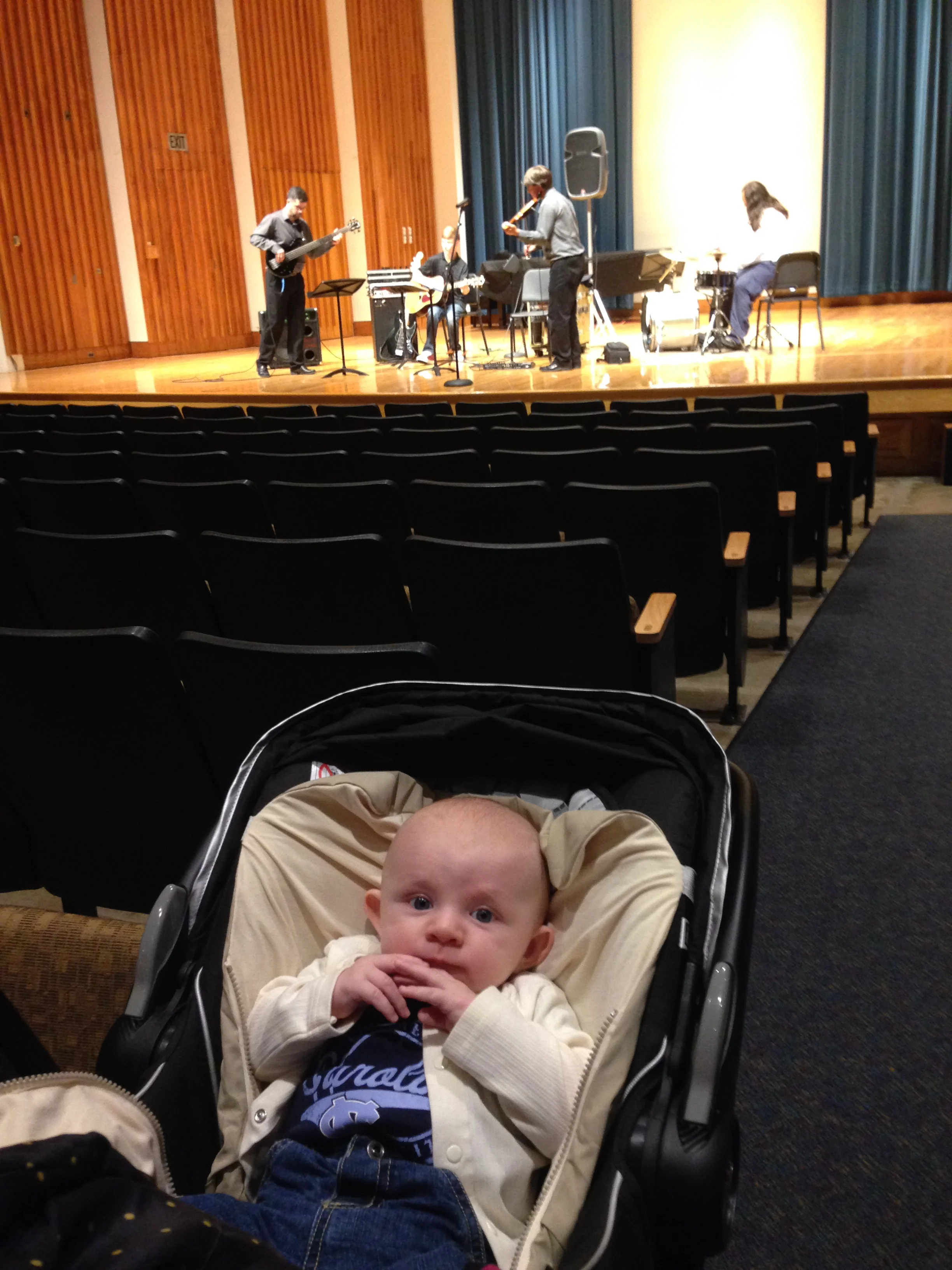 Listening to our first live rehearsal! Scott Laird came up to Penn State from NCSSM to do some lectures. He also gave a common hour performance. He played electric violin, Dr. Gardner on bass, Dan on drums, and Scott's son, Matt, on guitar. Gabriel and I had lots of fun listening & dancing to the music.