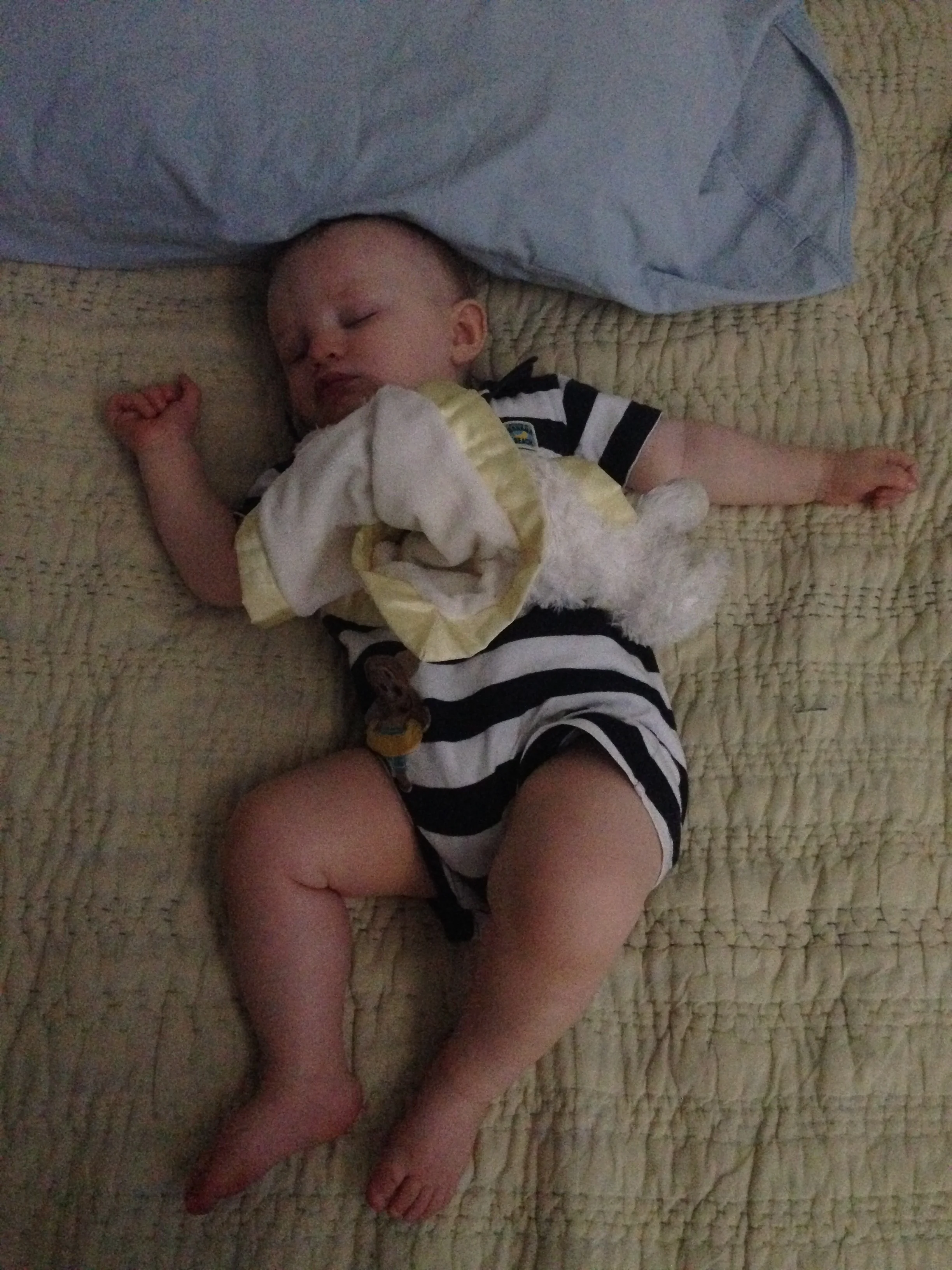 - He still takes a morning and afternoon nap. And they’ve gotten longer and more consistent! Sometimes he sleeps up to two hours. And he's a real pro at putting himself to sleep and also occupying himself when he wakes up. He LOVES his music & light box that hangs from his crib rail. He turns on the music and falls right asleep or uses it to just hang out until we come get him up. He's also figured out his sleep sheep so he sometimes reaches through the rail to push buttons and change the sounds he's hearing.