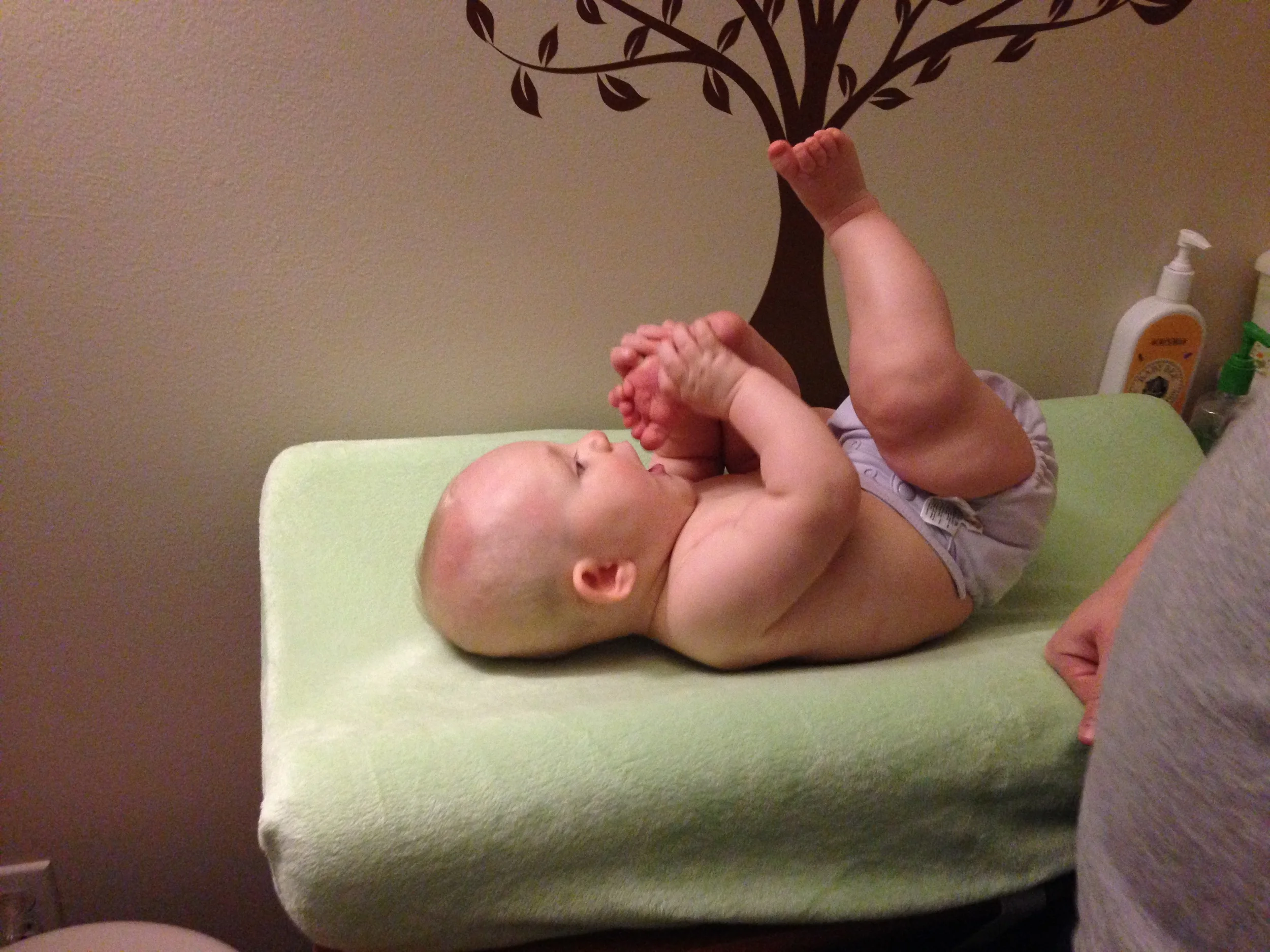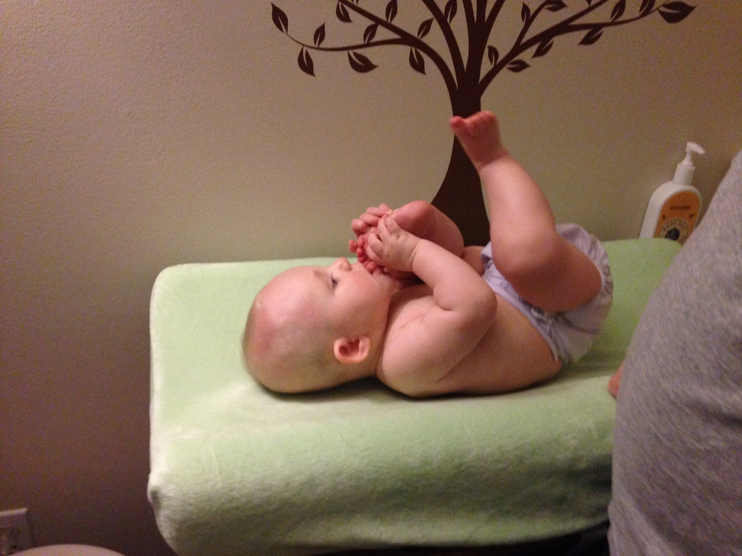 Our little goofball has figured out how to bend himself in half and suck on his own foot. It's really quite amusing. And happens almost exclusively during diaper changes which keeps life interesting.
