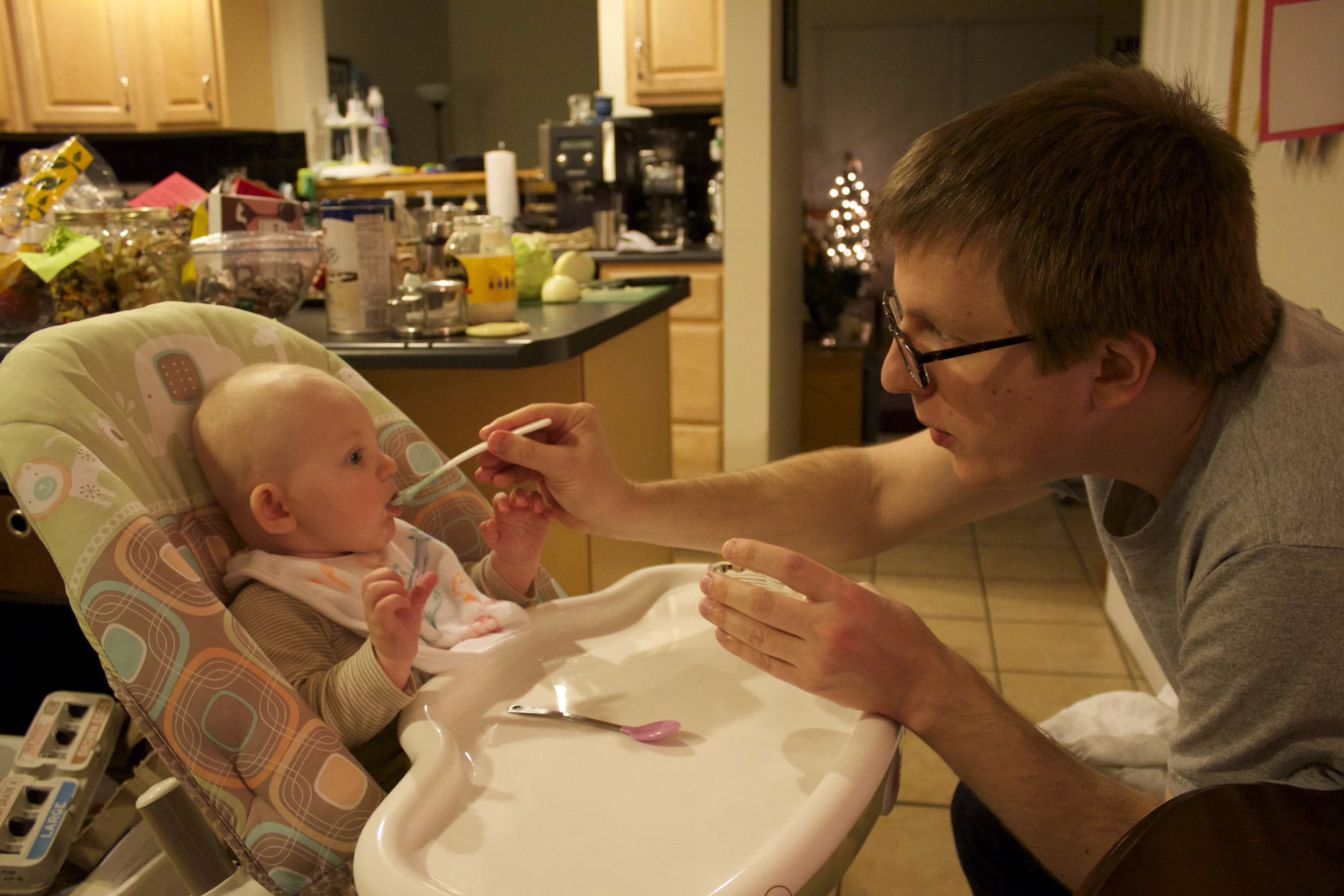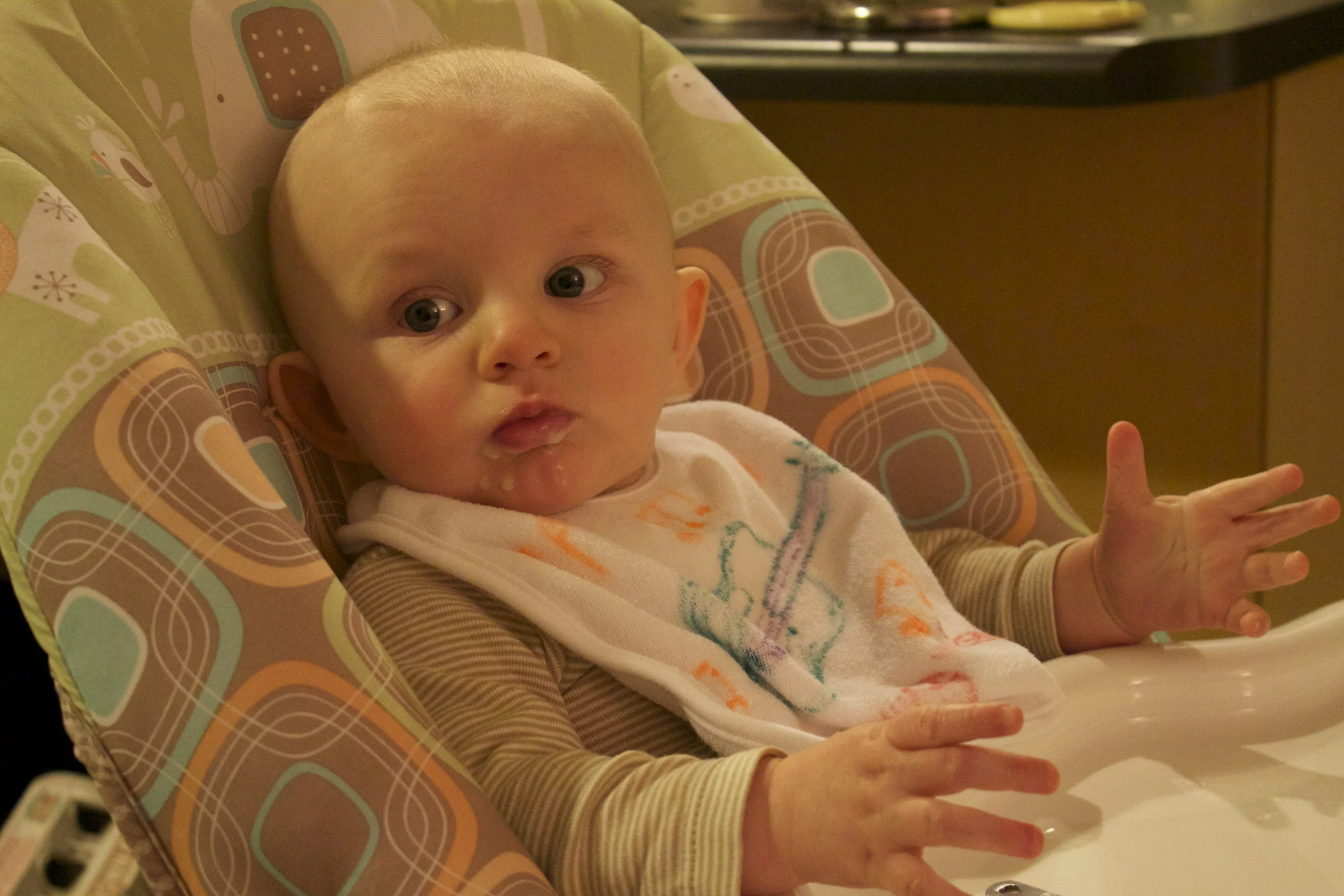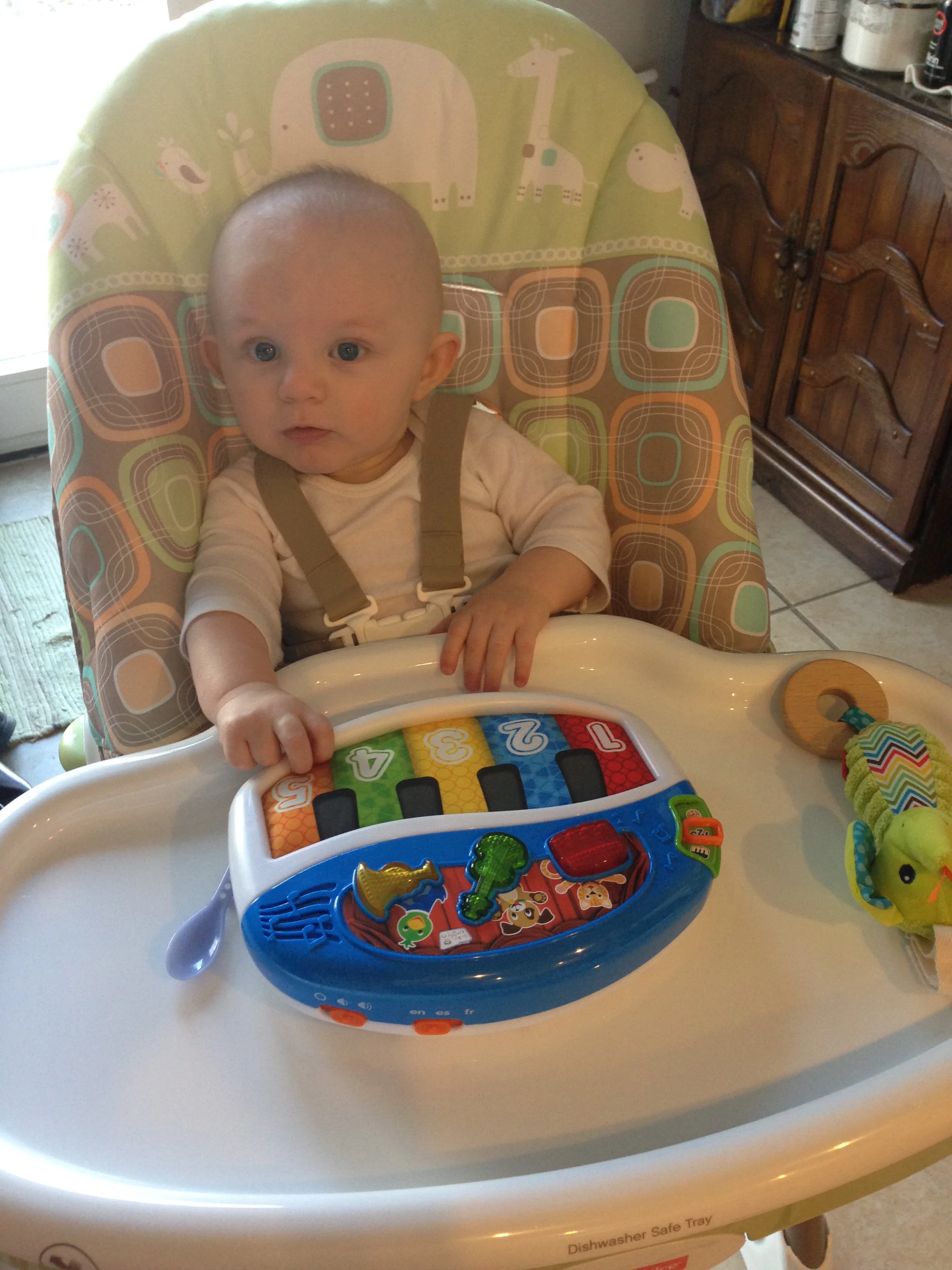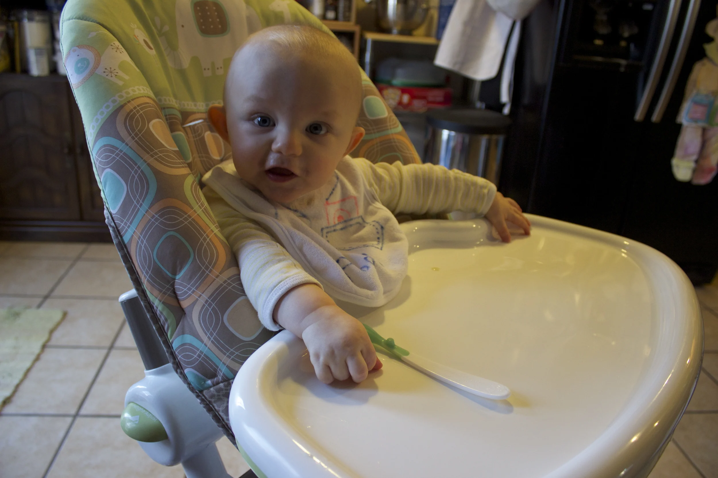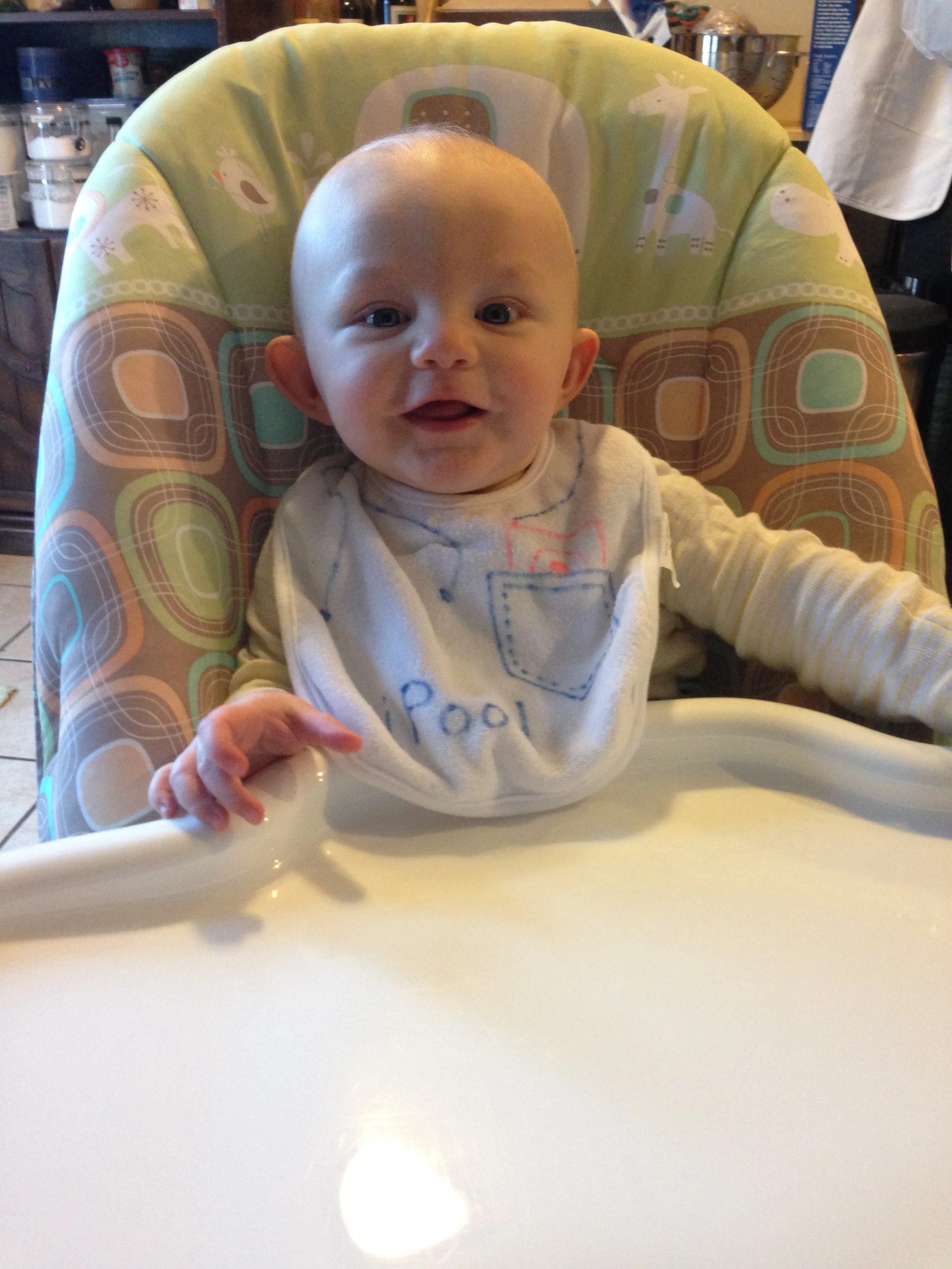 It's a couple days before we try some solid food so he's hanging out in the high chair to get the hang of it.