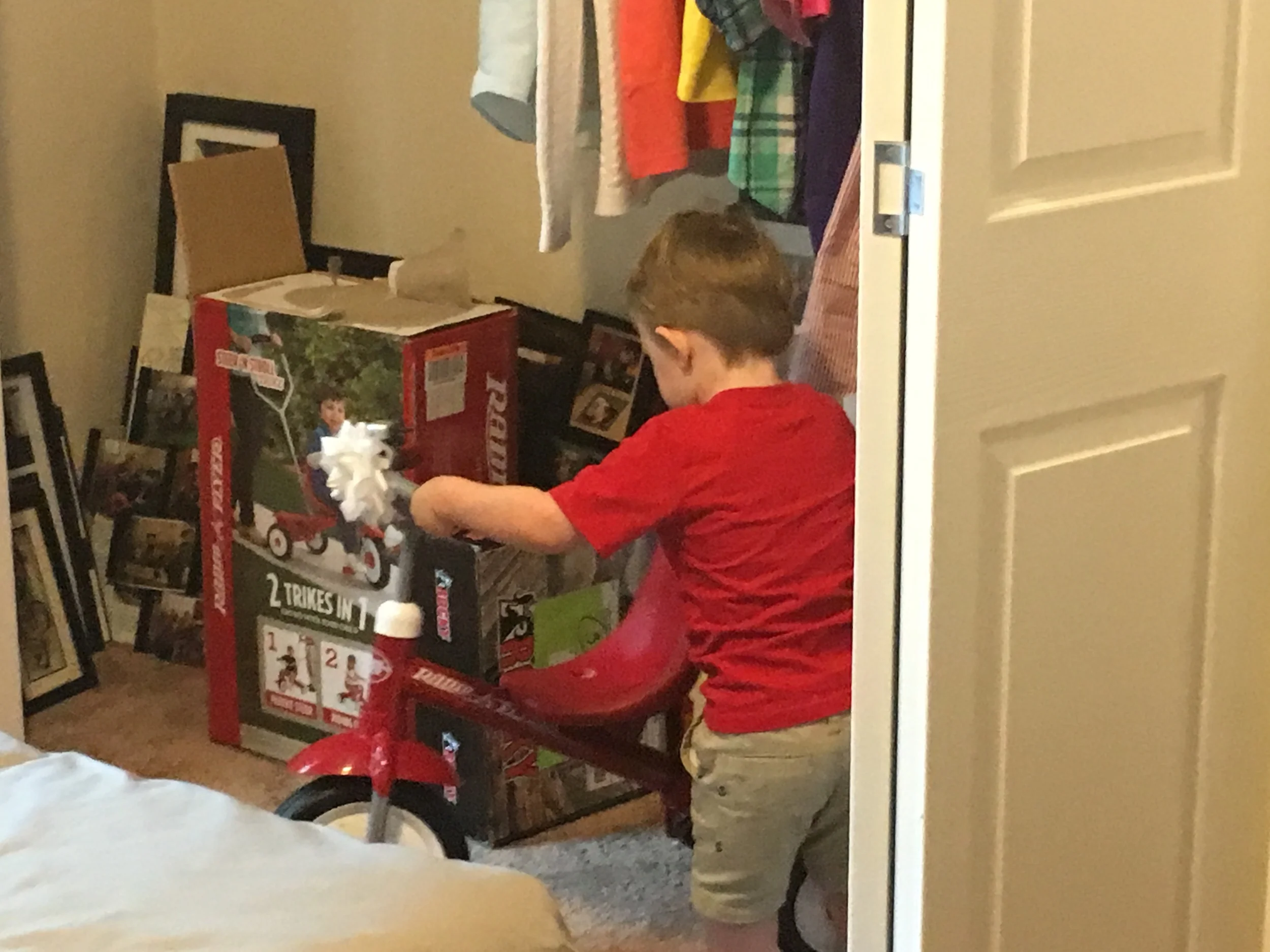 What's this, hiding in grammie & pop's closet?!? (Thank you, pop, for putting it together last night!)