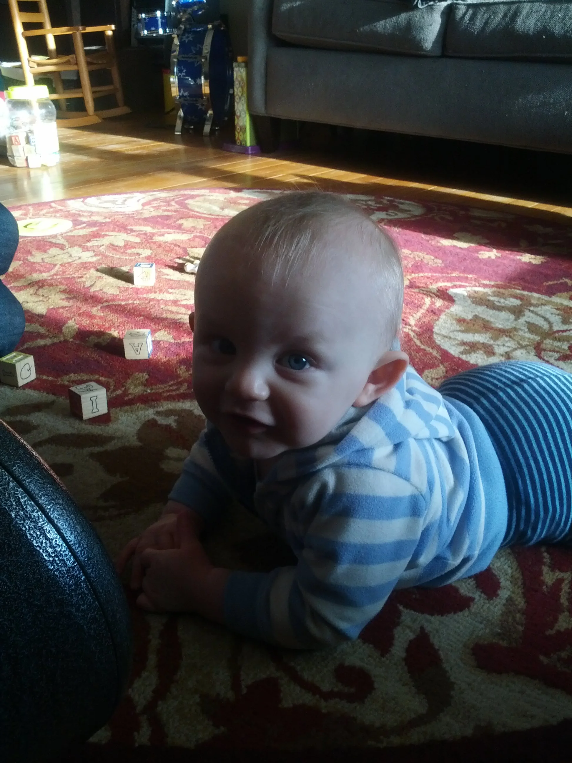 And then mommy got home and we got some real video of army crawling! This was about the only time mom stopped cuddling him all day after getting home.