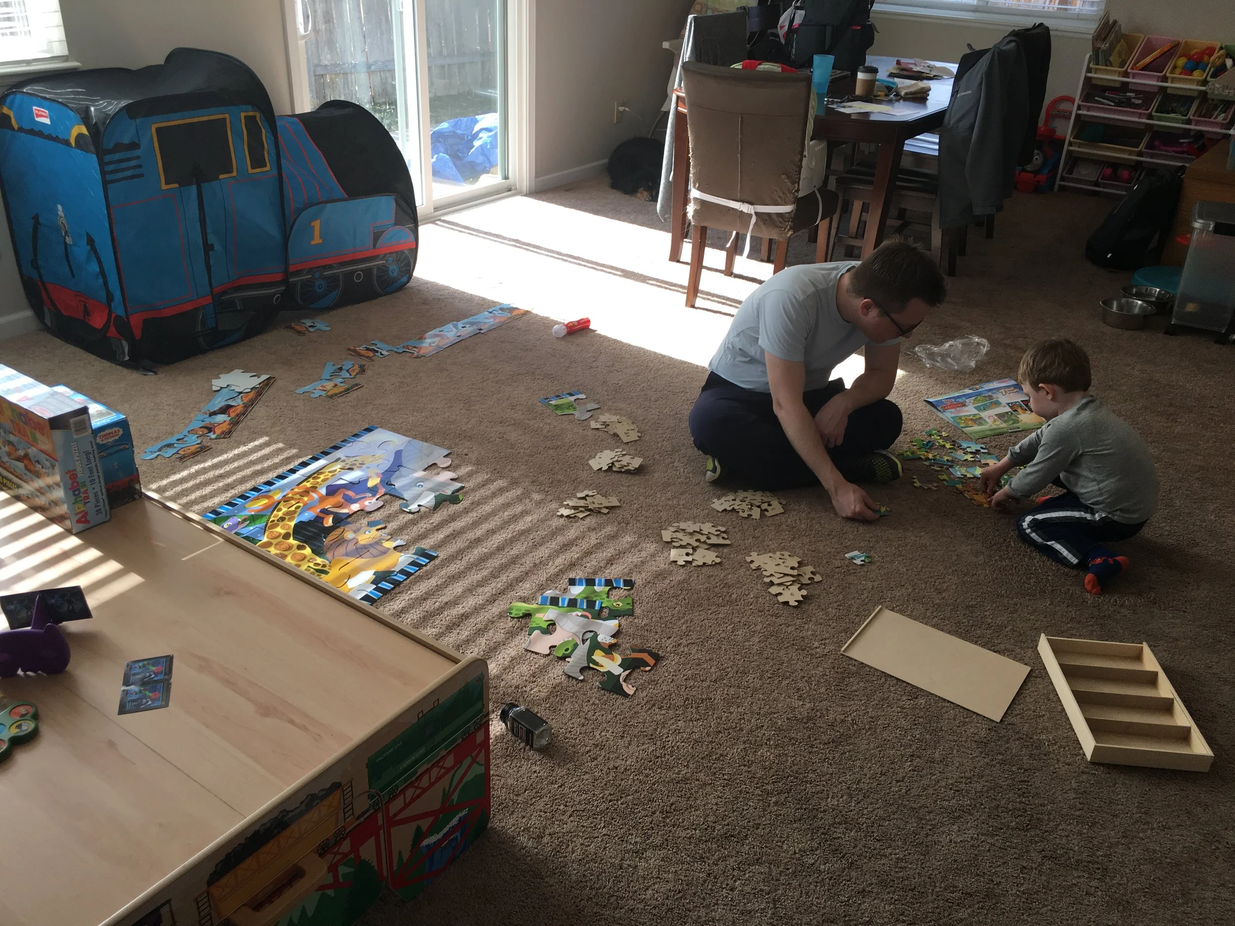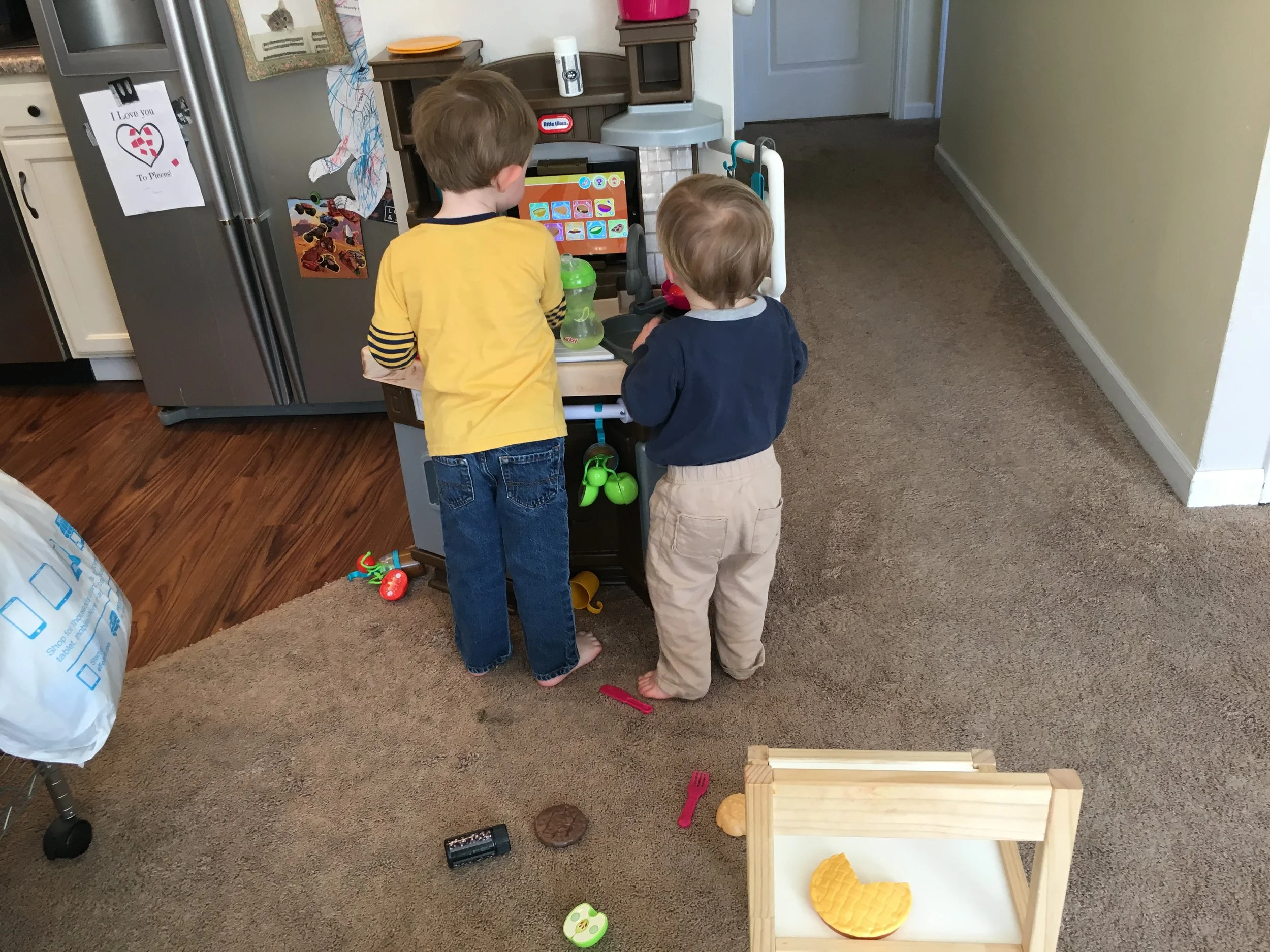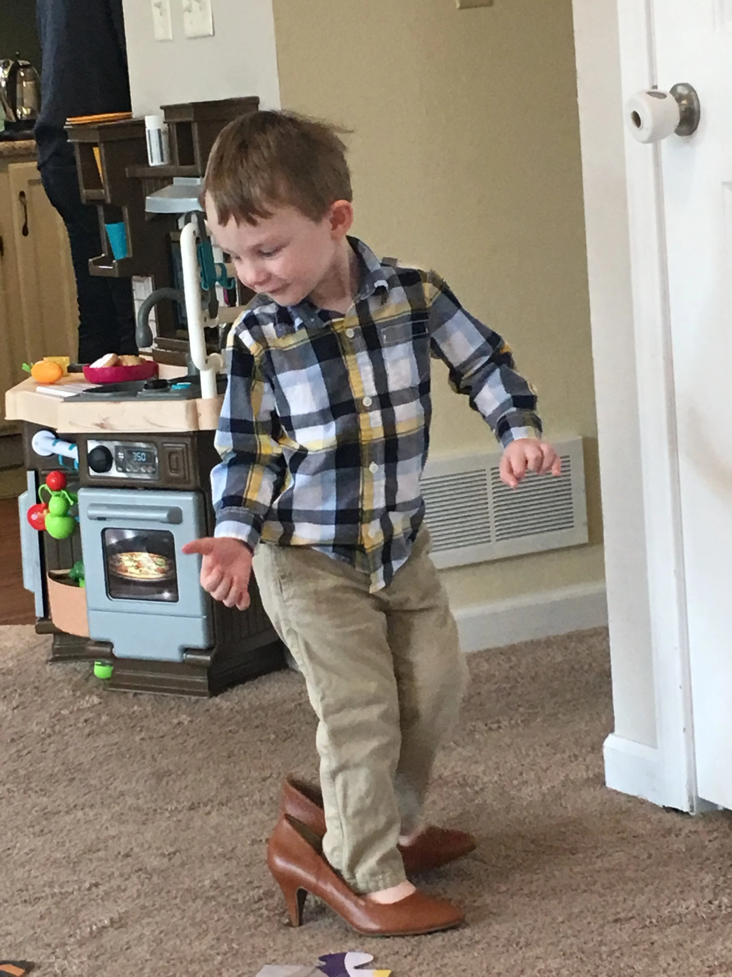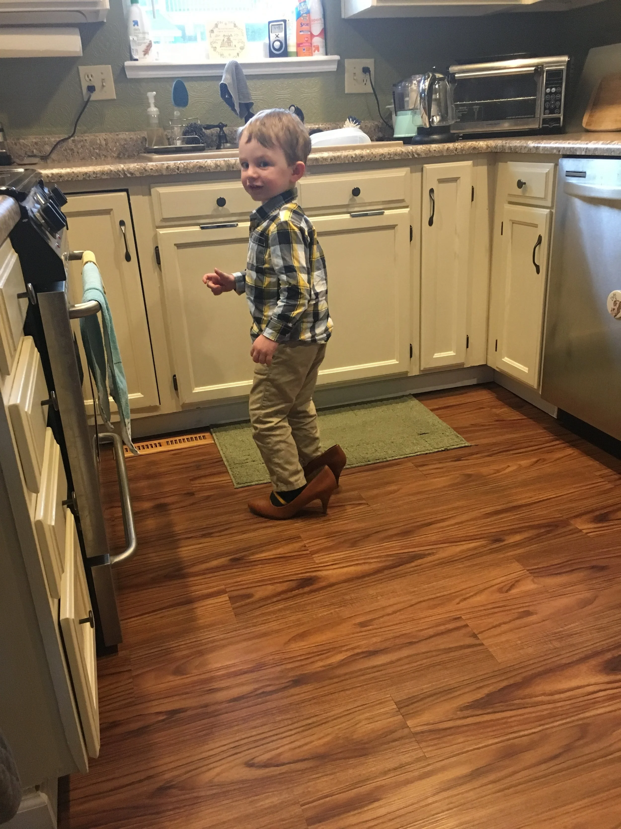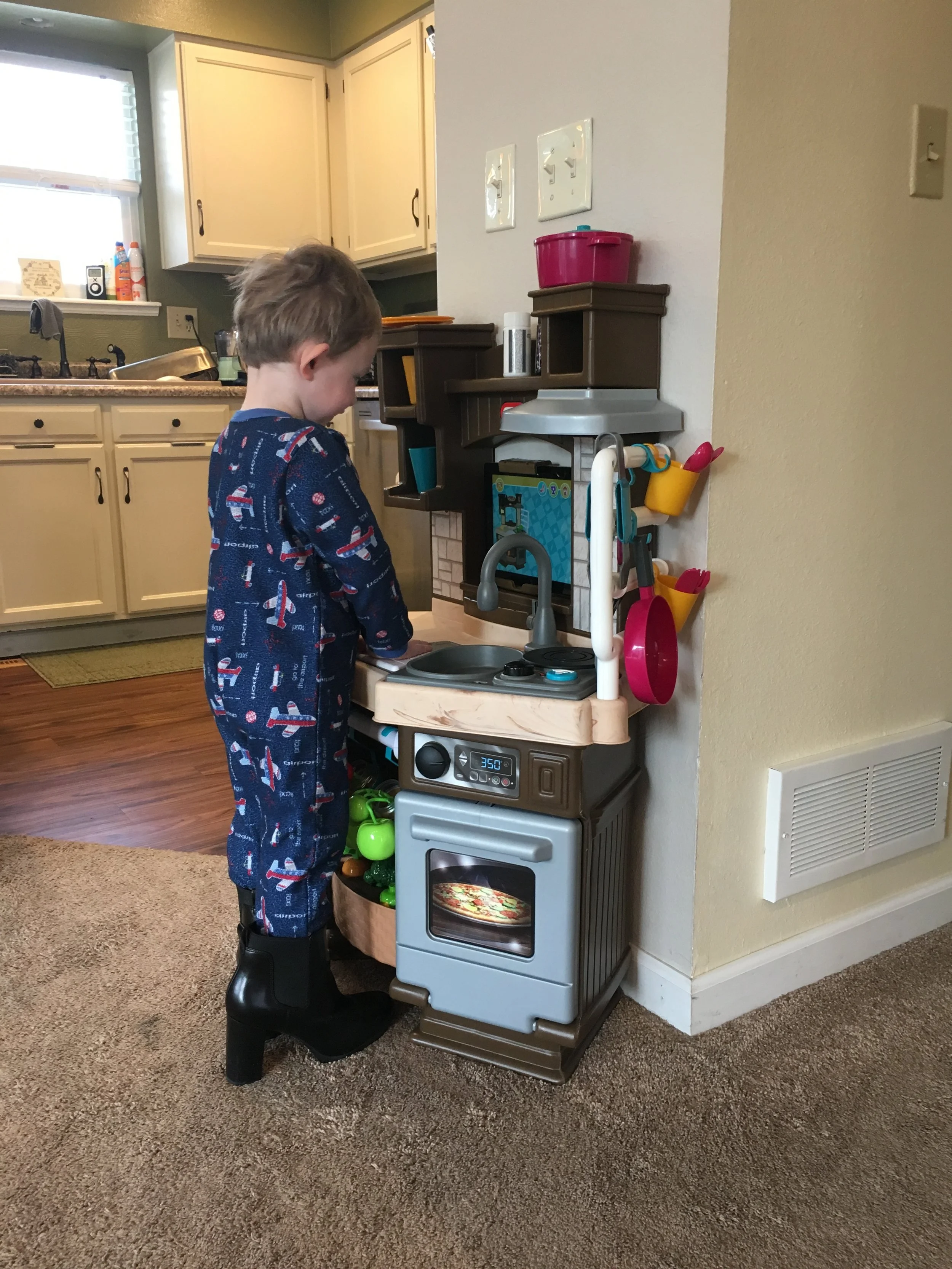 Airplane, footsie pjs, mama’s boots, cooking in the kitchen. Love this kid. <3