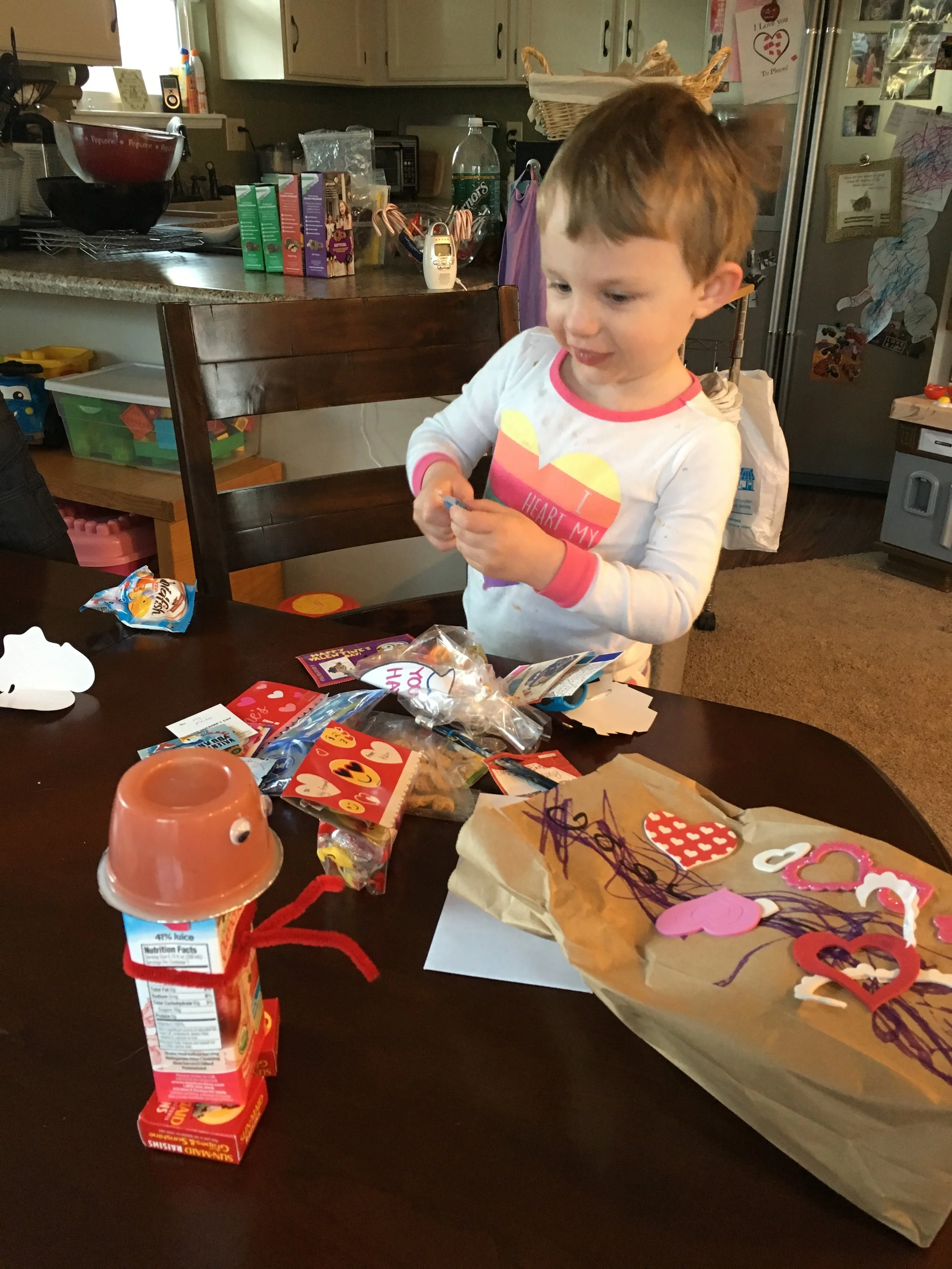 May not ever happen again, but I’m “that mom” for this Valentine’s Day and made this adorable robots for everyone in his class.