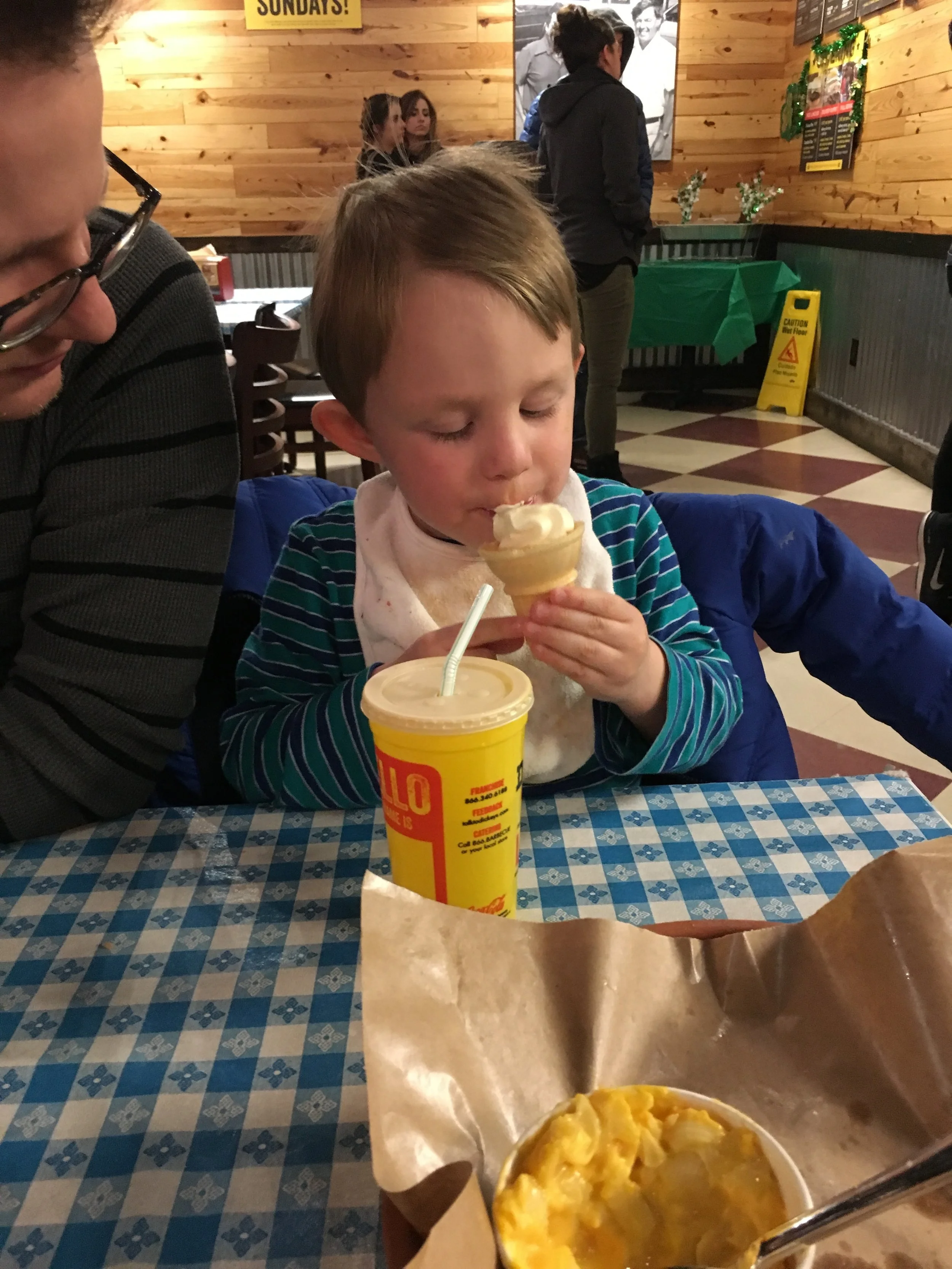 Our first time out while Gabriel is with a babysitter! We’re glad Miss Audra lives 2 doors down and Gabriel loves spending time with her. This was a perfect, quiet dessert to break her in.