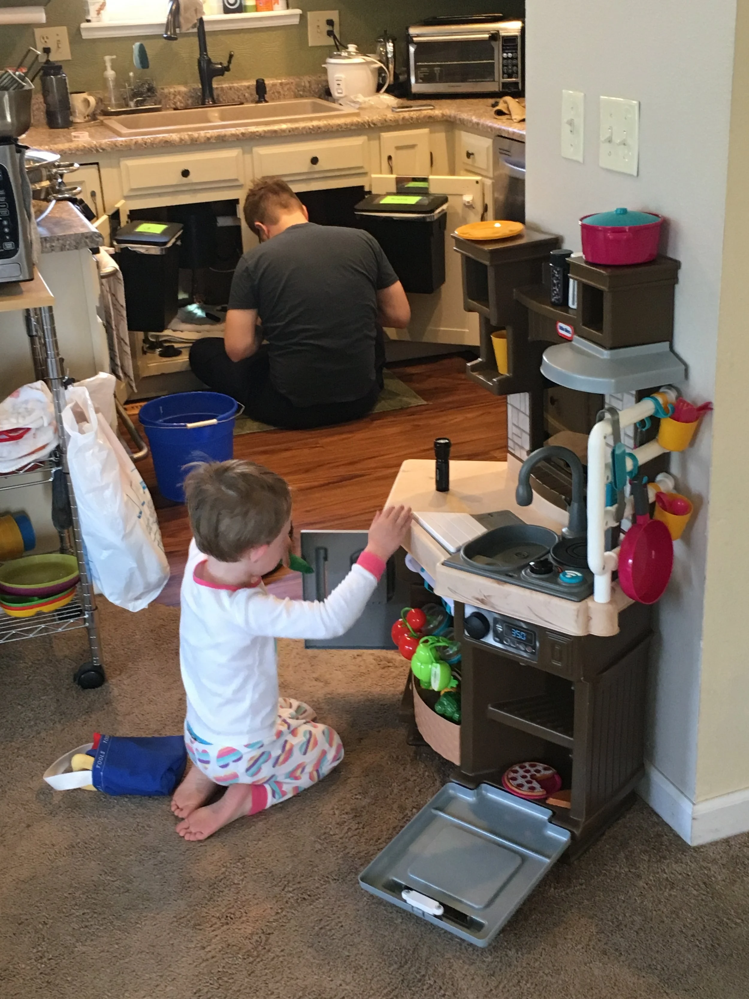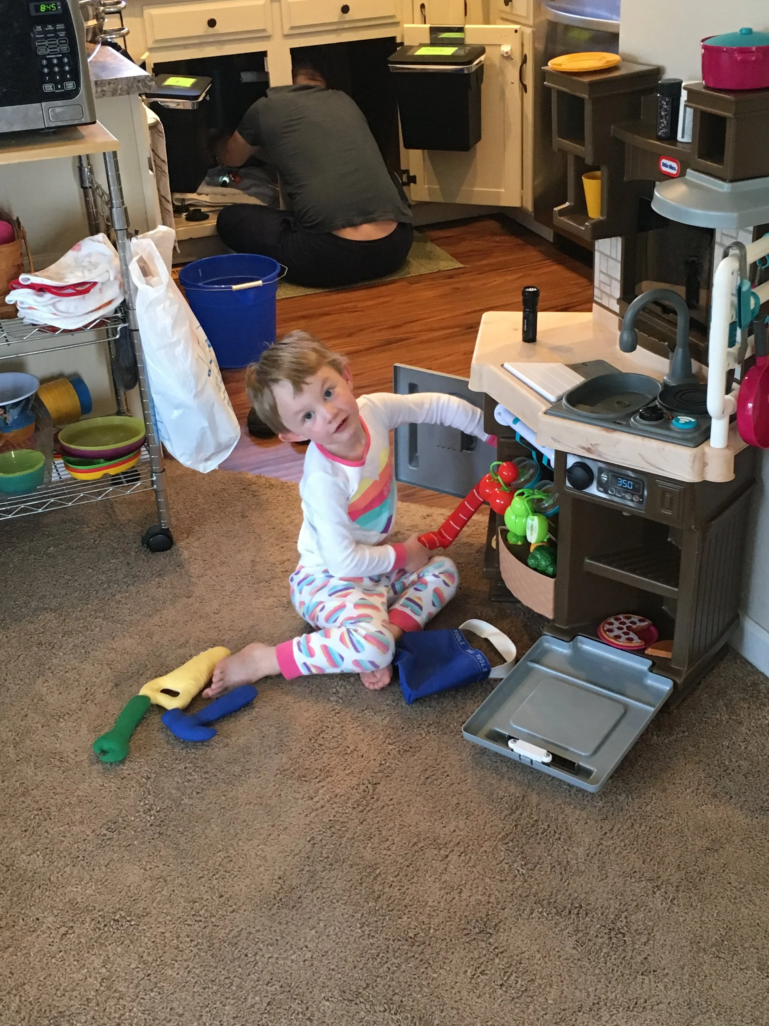 Unfortunately our sink needed some repair (thank you daddy!) but it was cute to see Gabriel become mini-me and “fix” his own sink with his cloth tools.