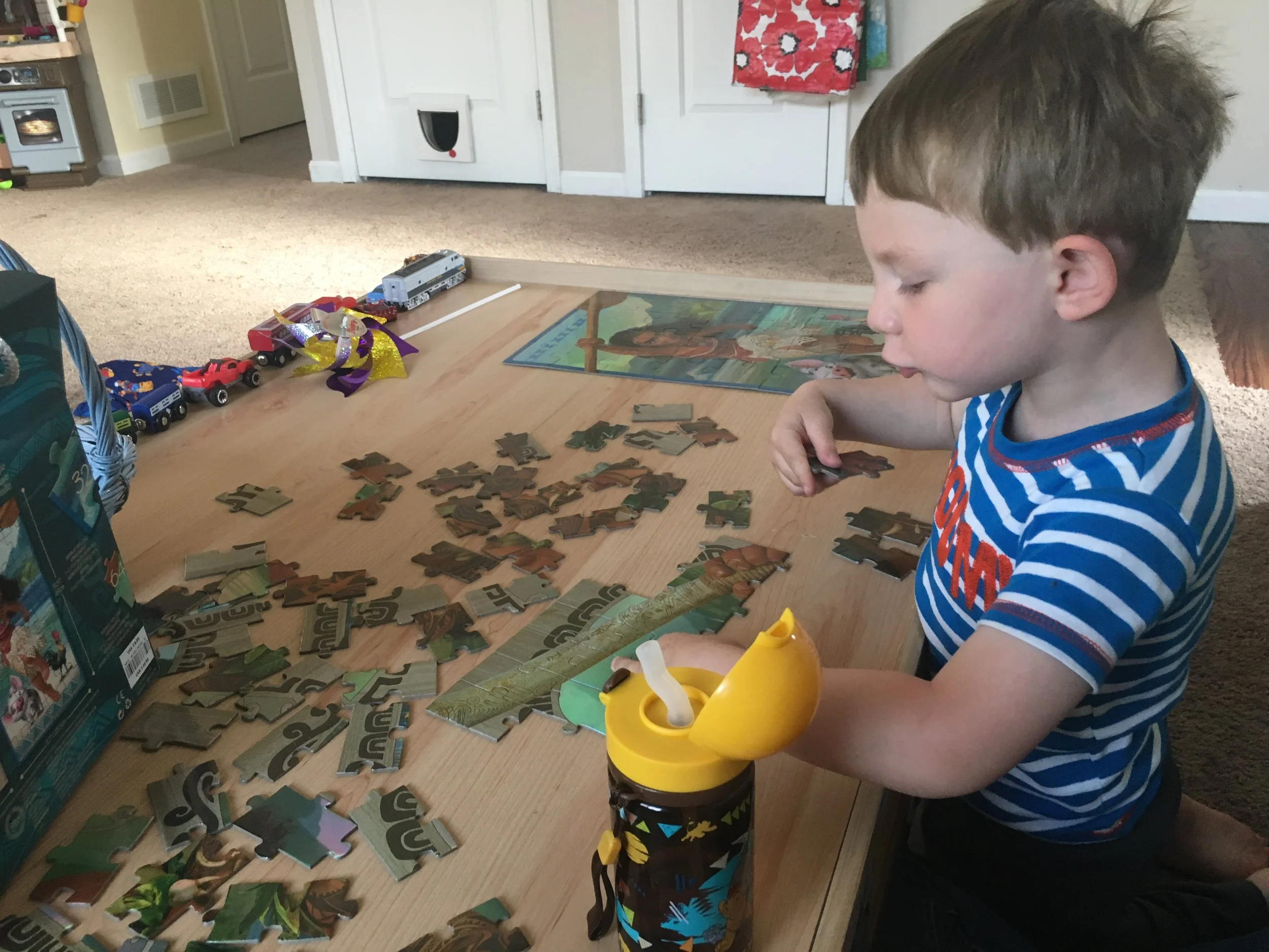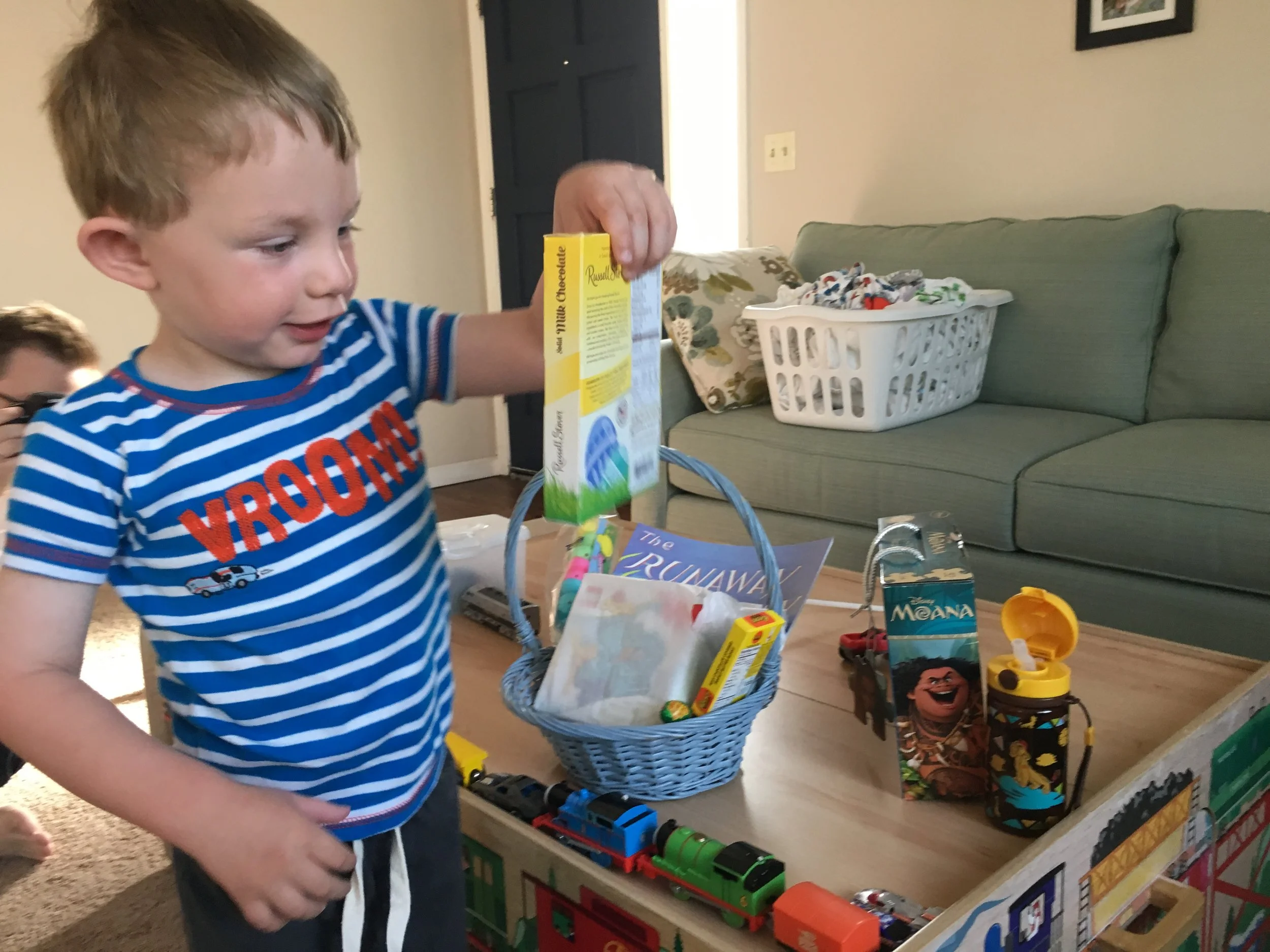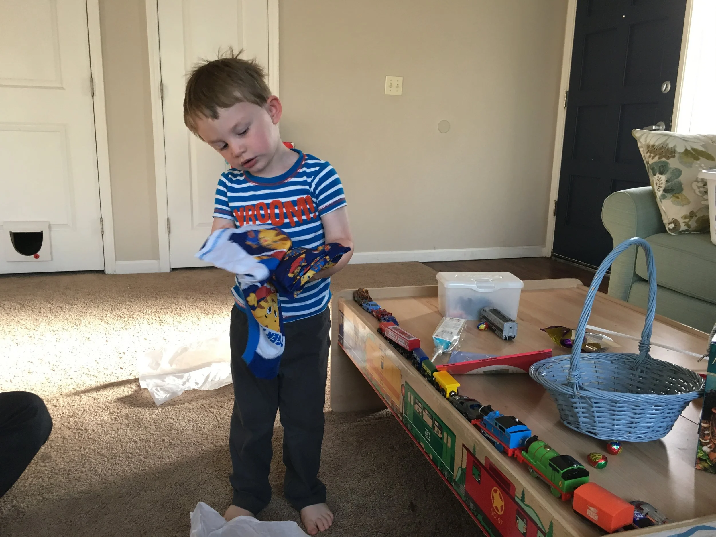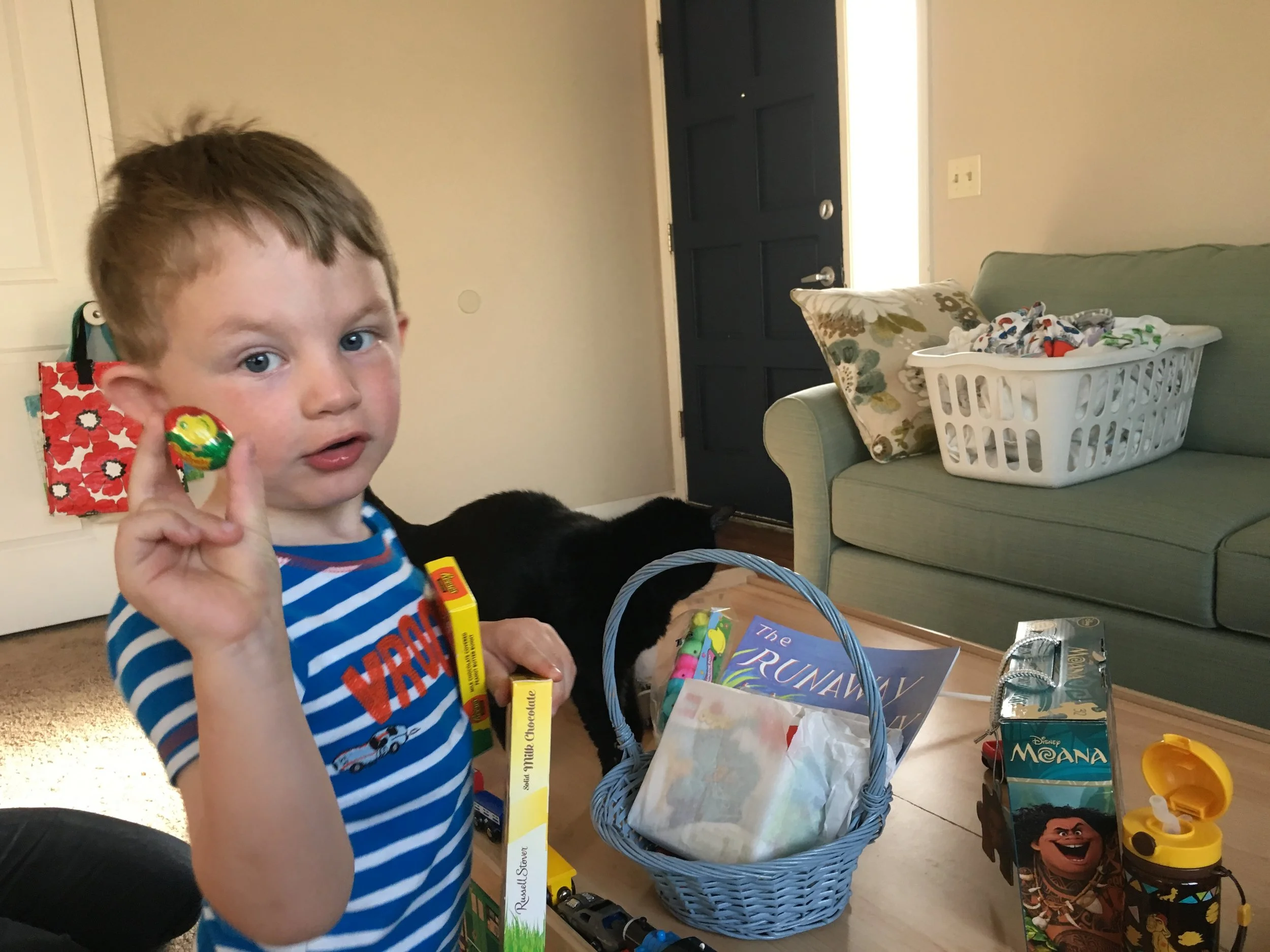 Happy Easter! The Easter bunny brought a water bottle, candy, puzzles, a book, a duplo set, and pjs. Pretty awesome!