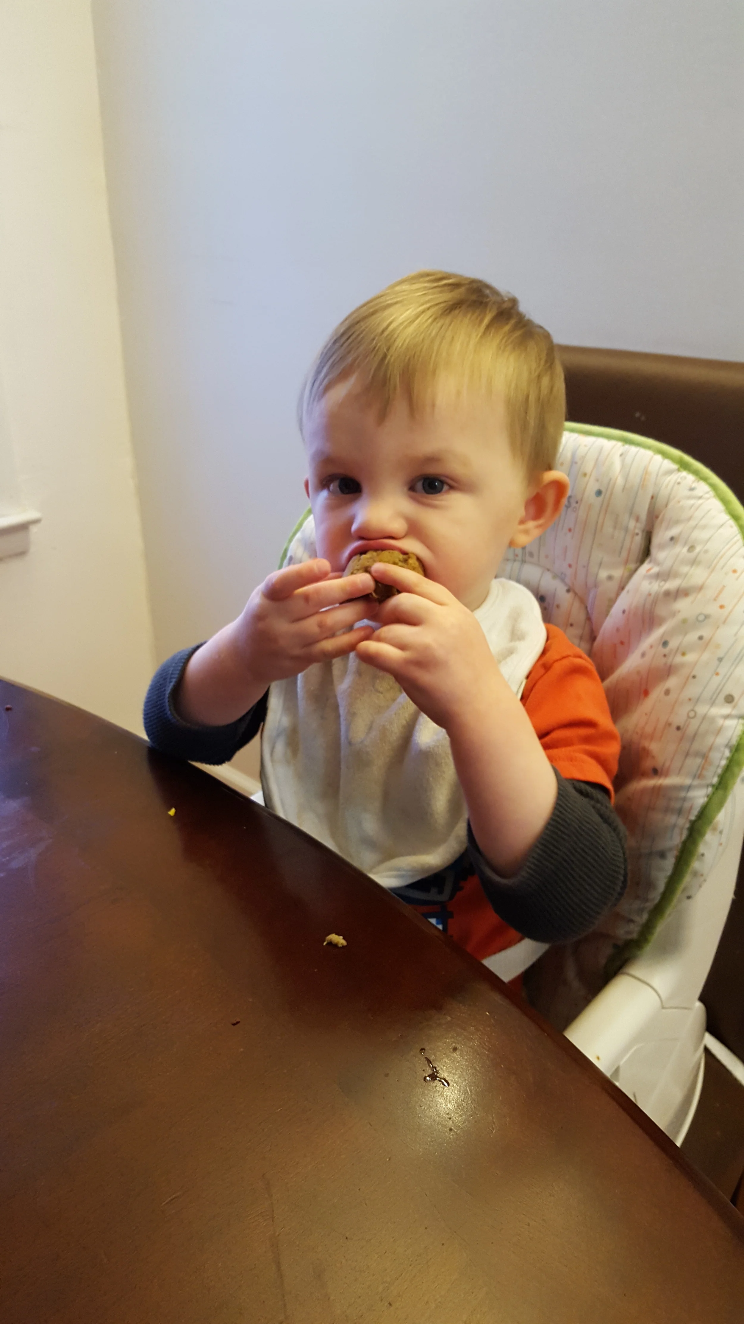 Mama's gone but she left behind yummy breakfast muffins. Have a good day mama!