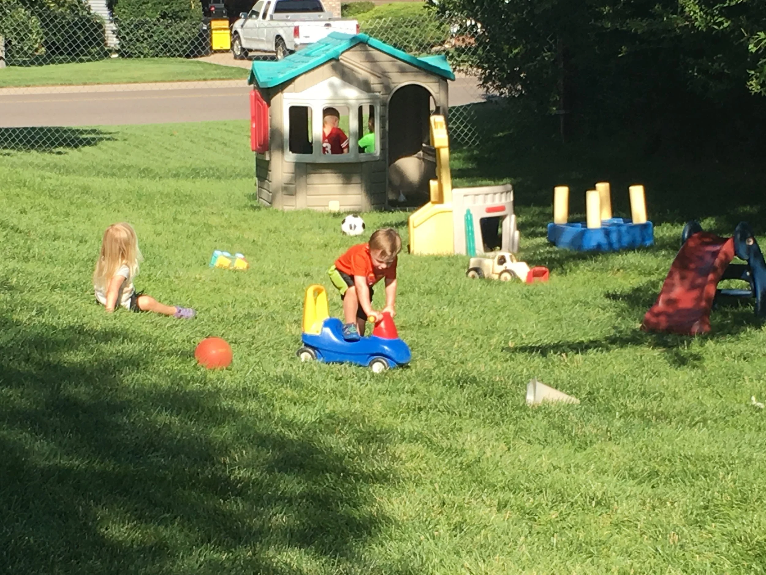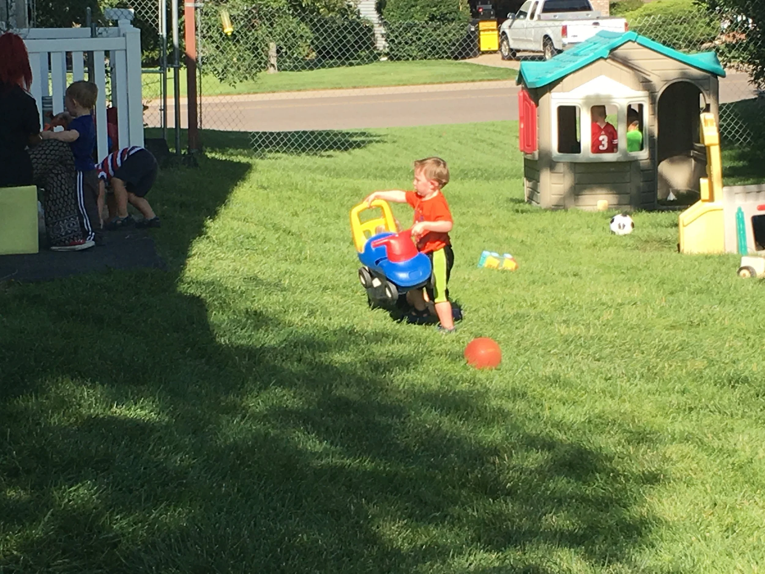 New daycare! There are so many different outside play areas at ABC West and Mr. G LOVES it.