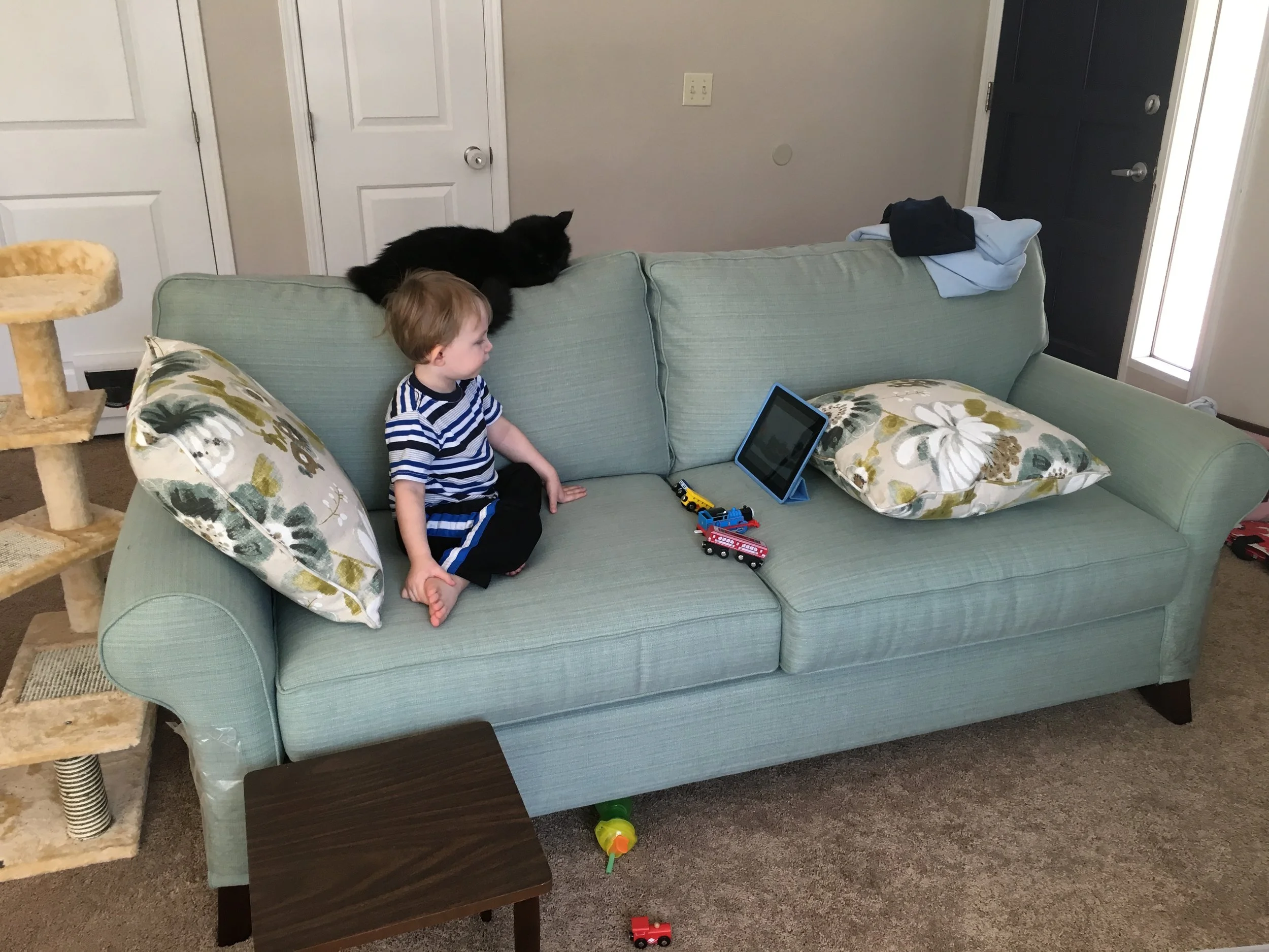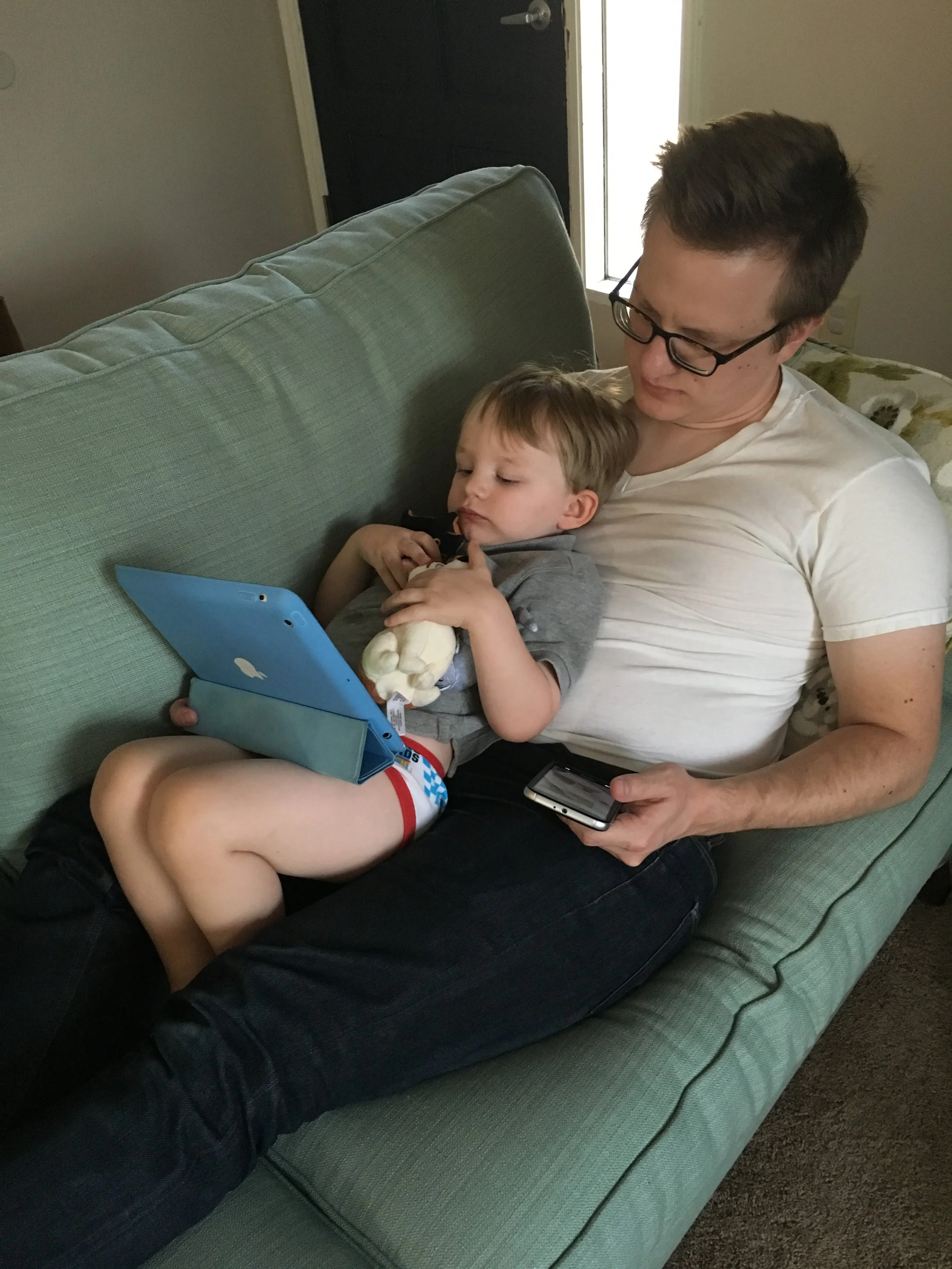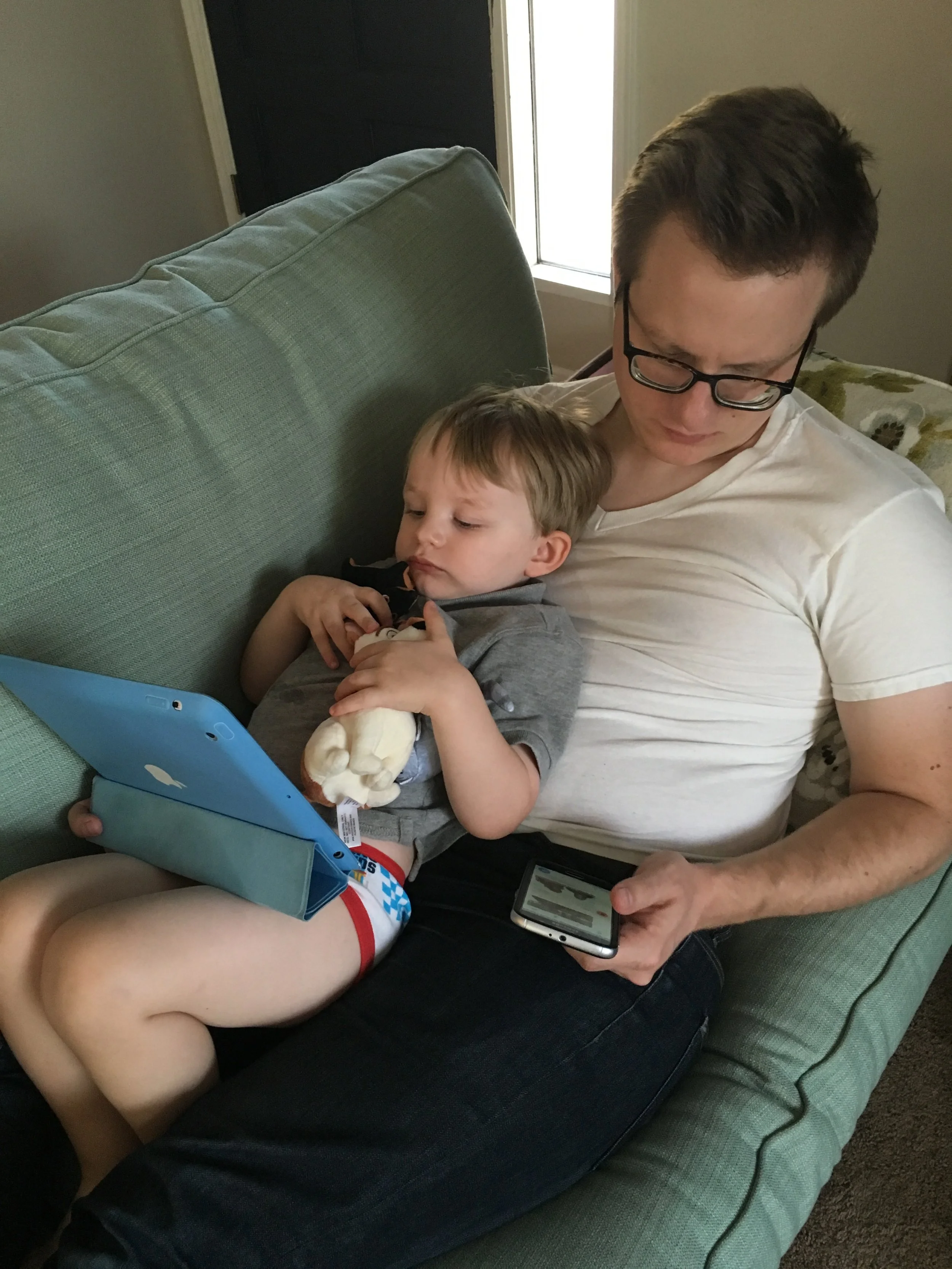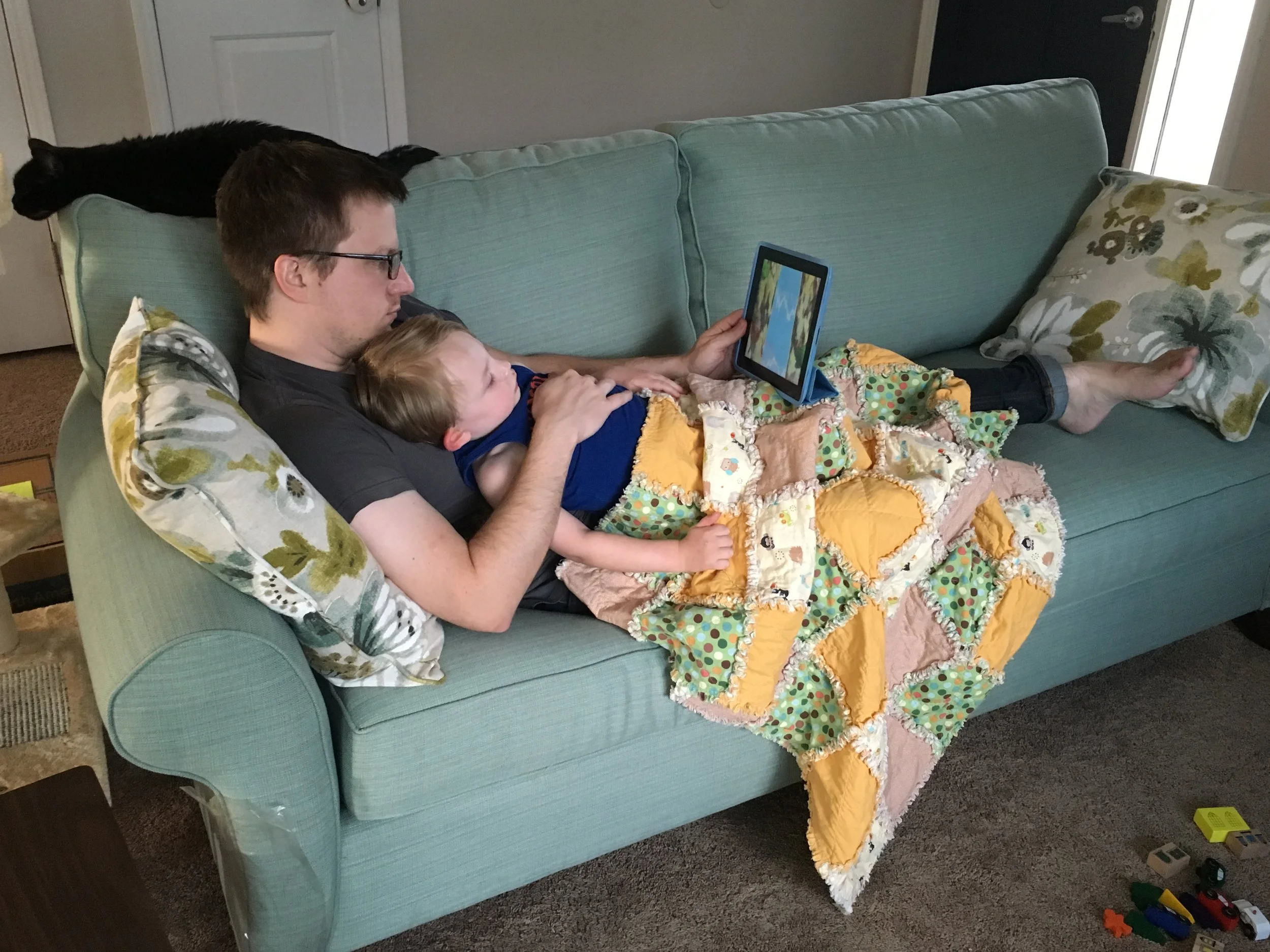 Sometimes you just need to snuggle on the couch with dada. Mama starting work has been quite a change for everybody.