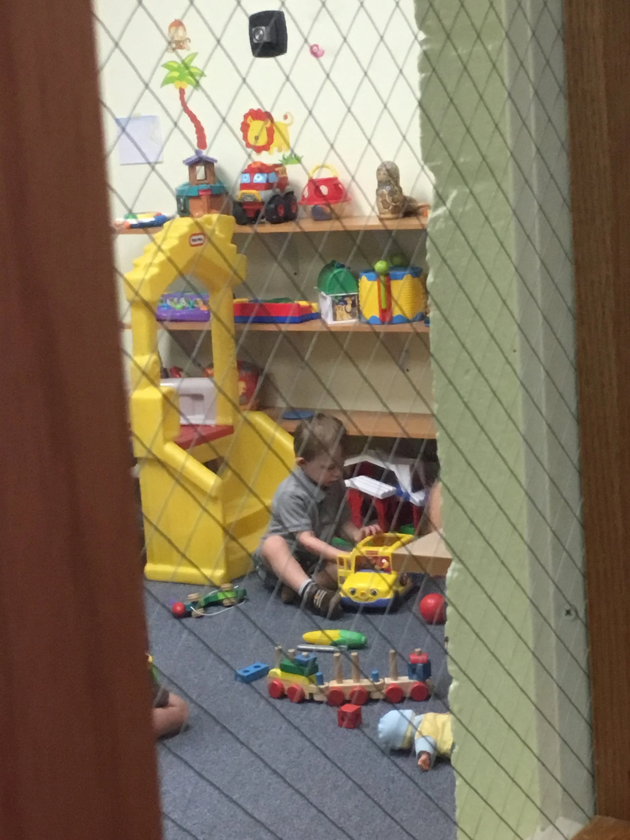 This boy is such a pro - here he is hanging out in the nursery at church. Very rarely has a concern about being away from mama & dada (as long as there are fun toys!).