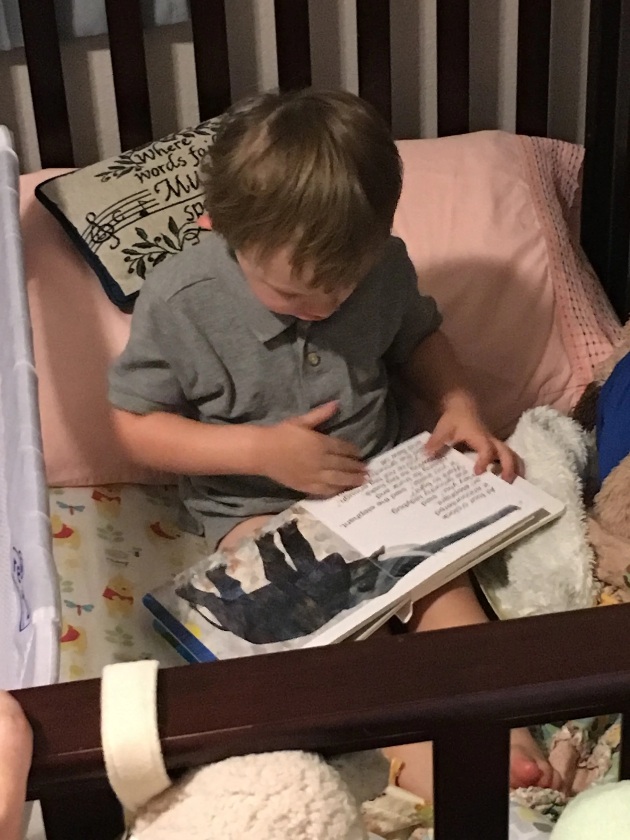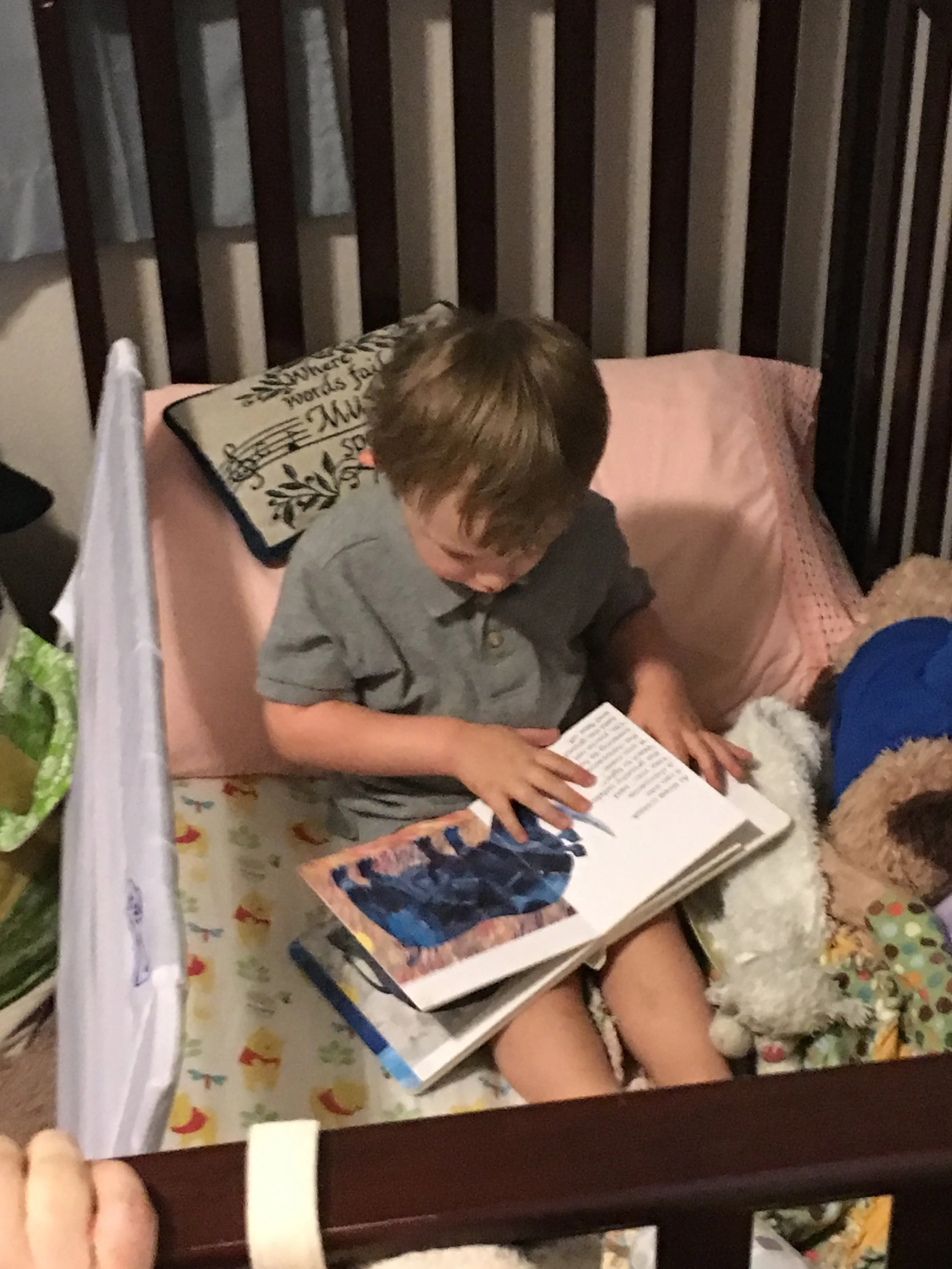 Wake up from nap, hang out in bed with books, make tons of animal noises so mama & dada have to figure out which book I'm reading.