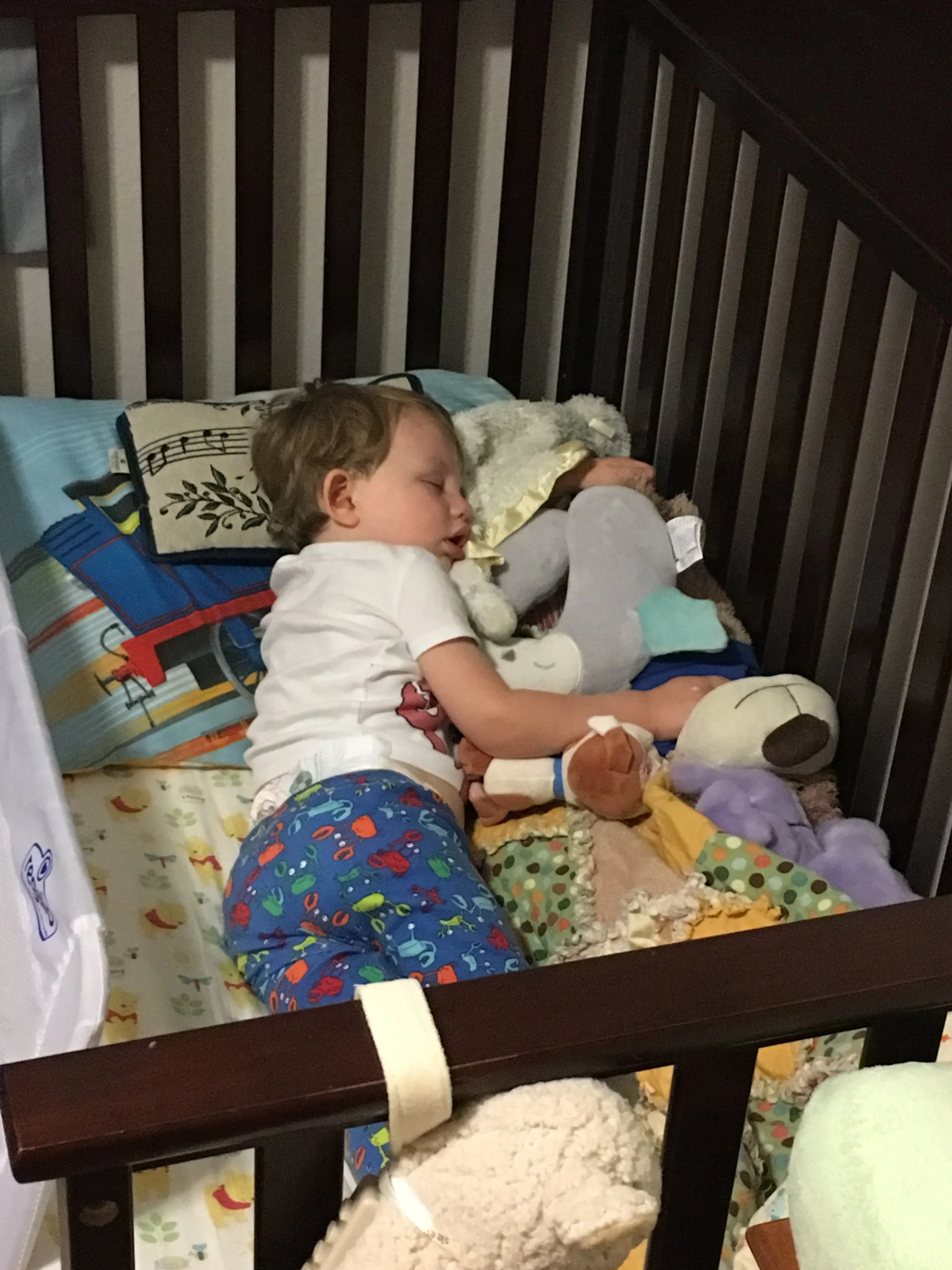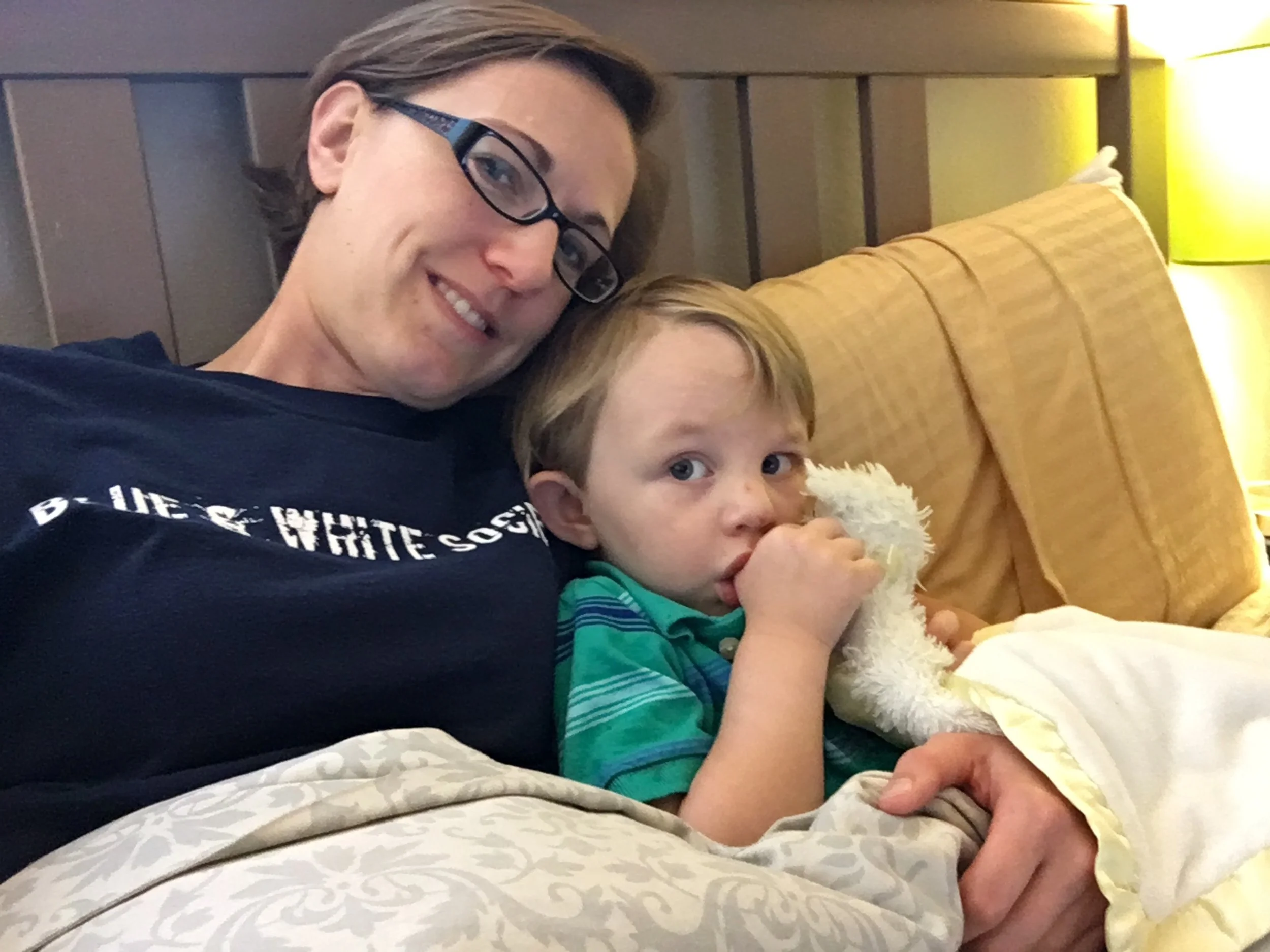 Thankfully stuffed animals, tablets, and dada make everything better.