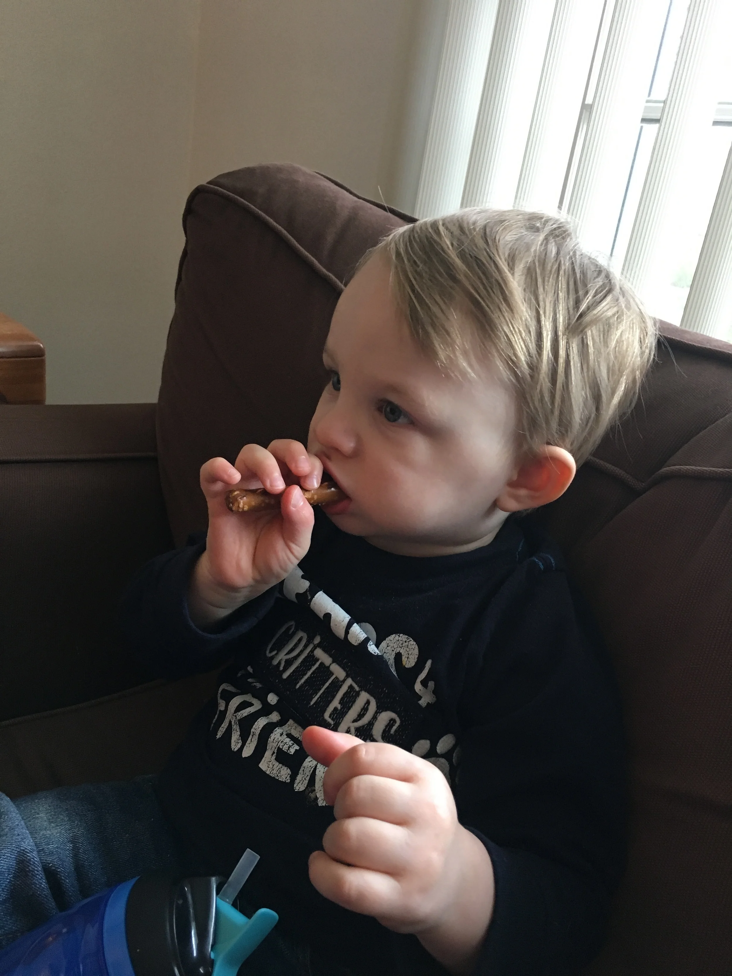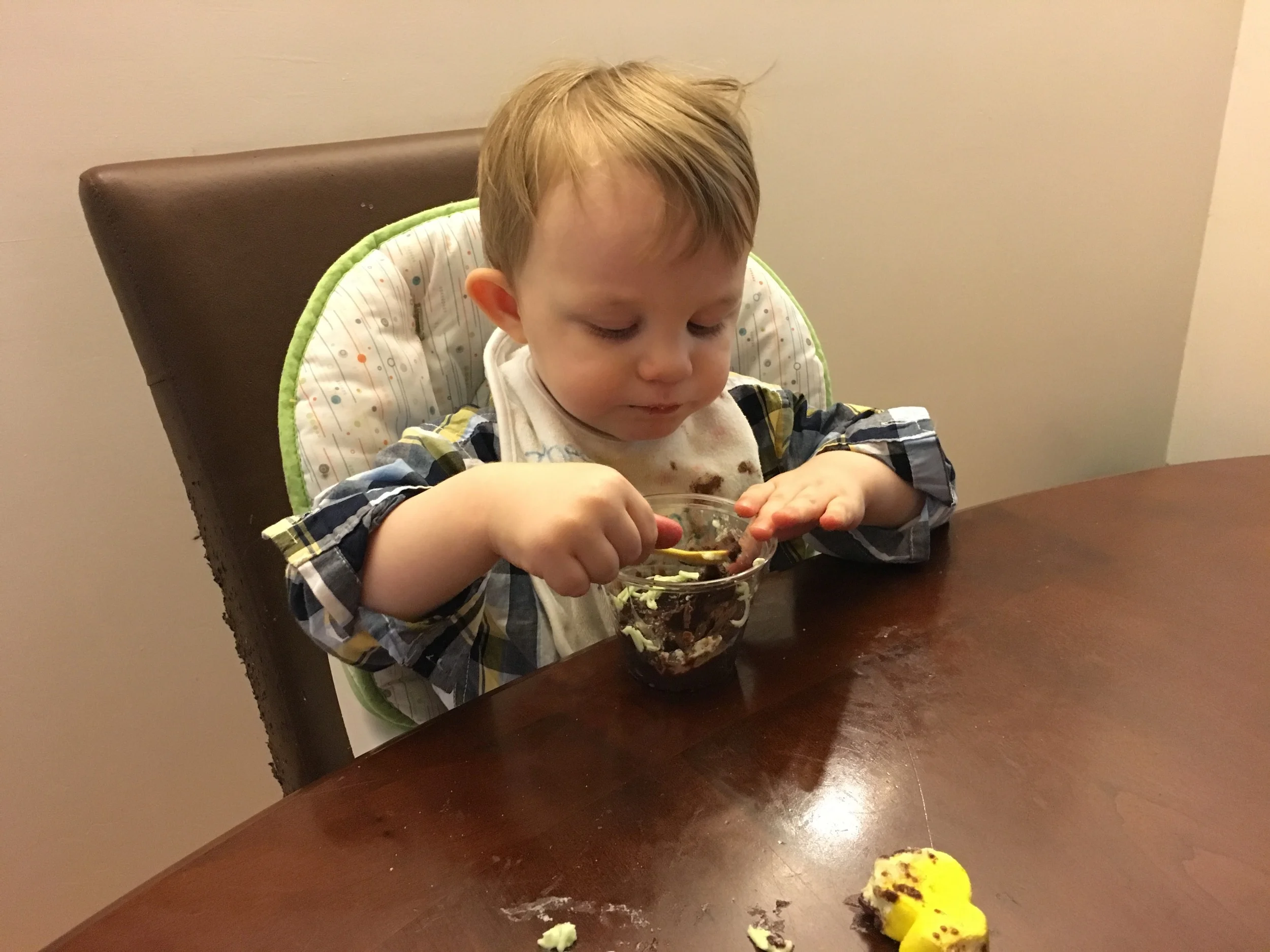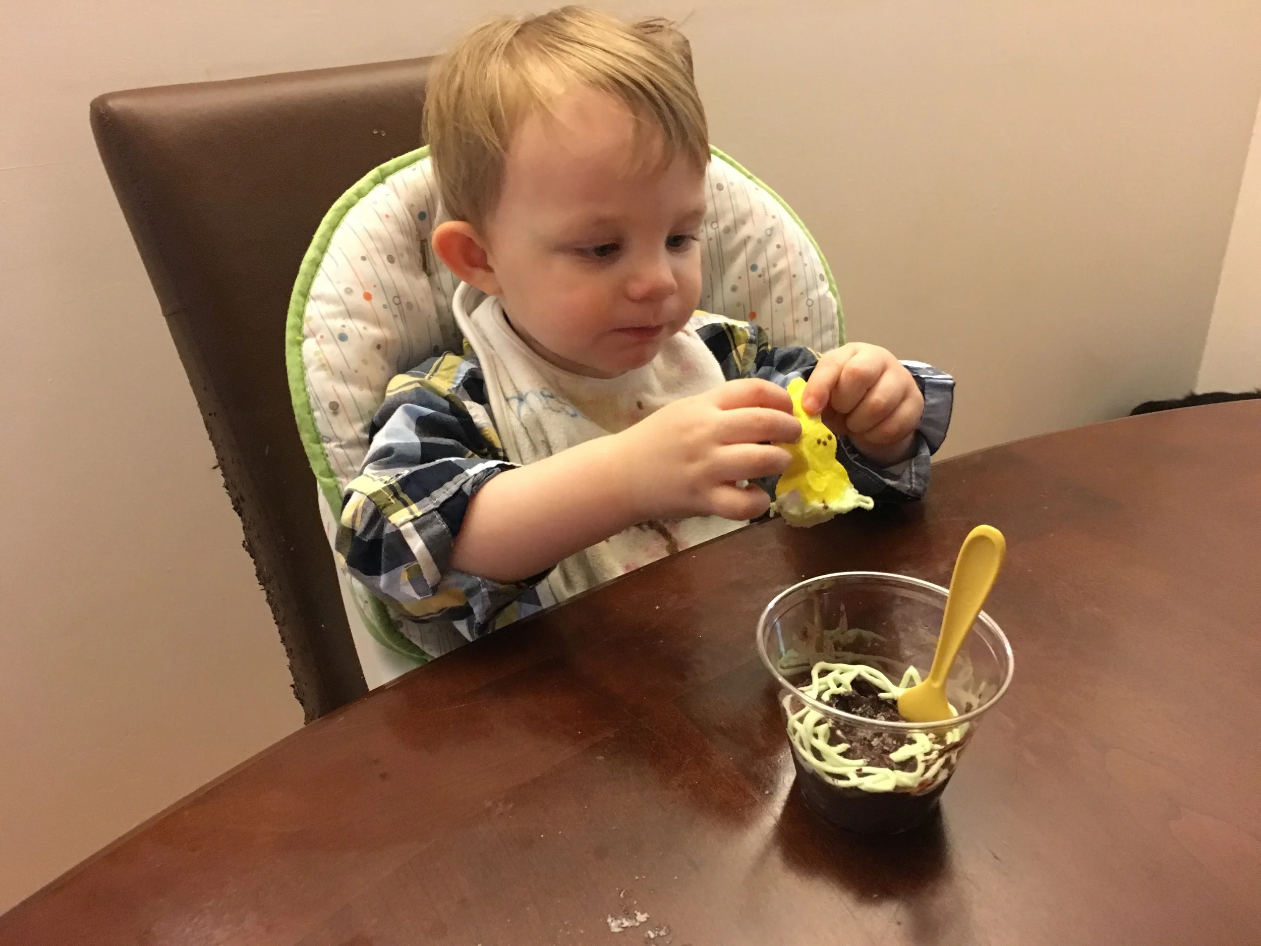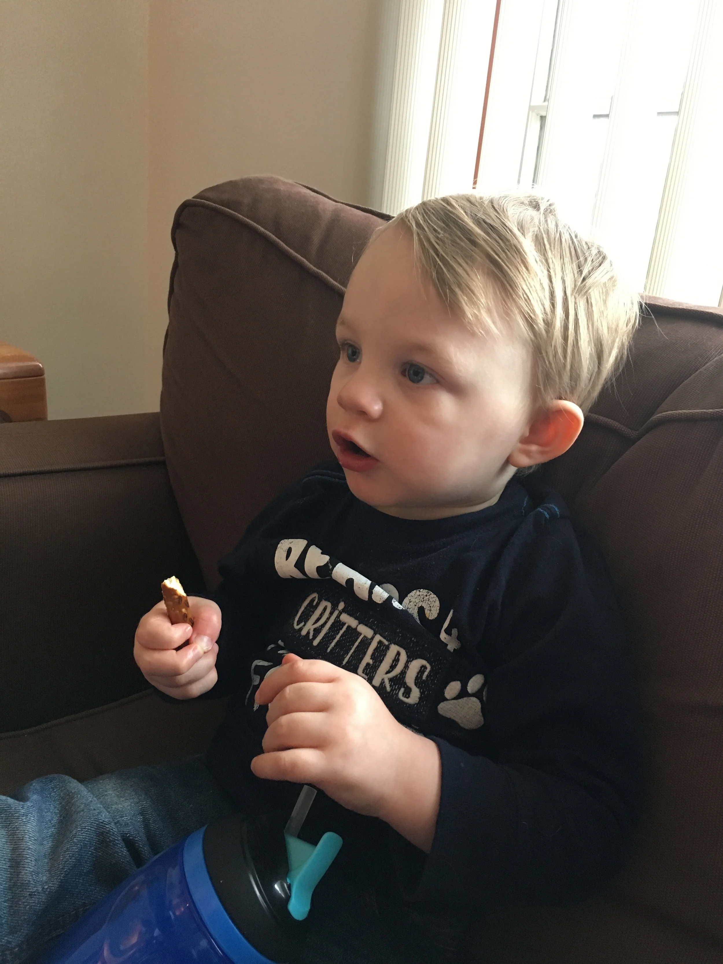 Since we couldn't fit all our desired activities into Easter-day, we continued the fun to the day after Easter. And, randomly, here is Gabriel's first pretzel stick. Mama was eating them for a snack and he wanted one so bad! The Marvin family will surely be excited. ;-)