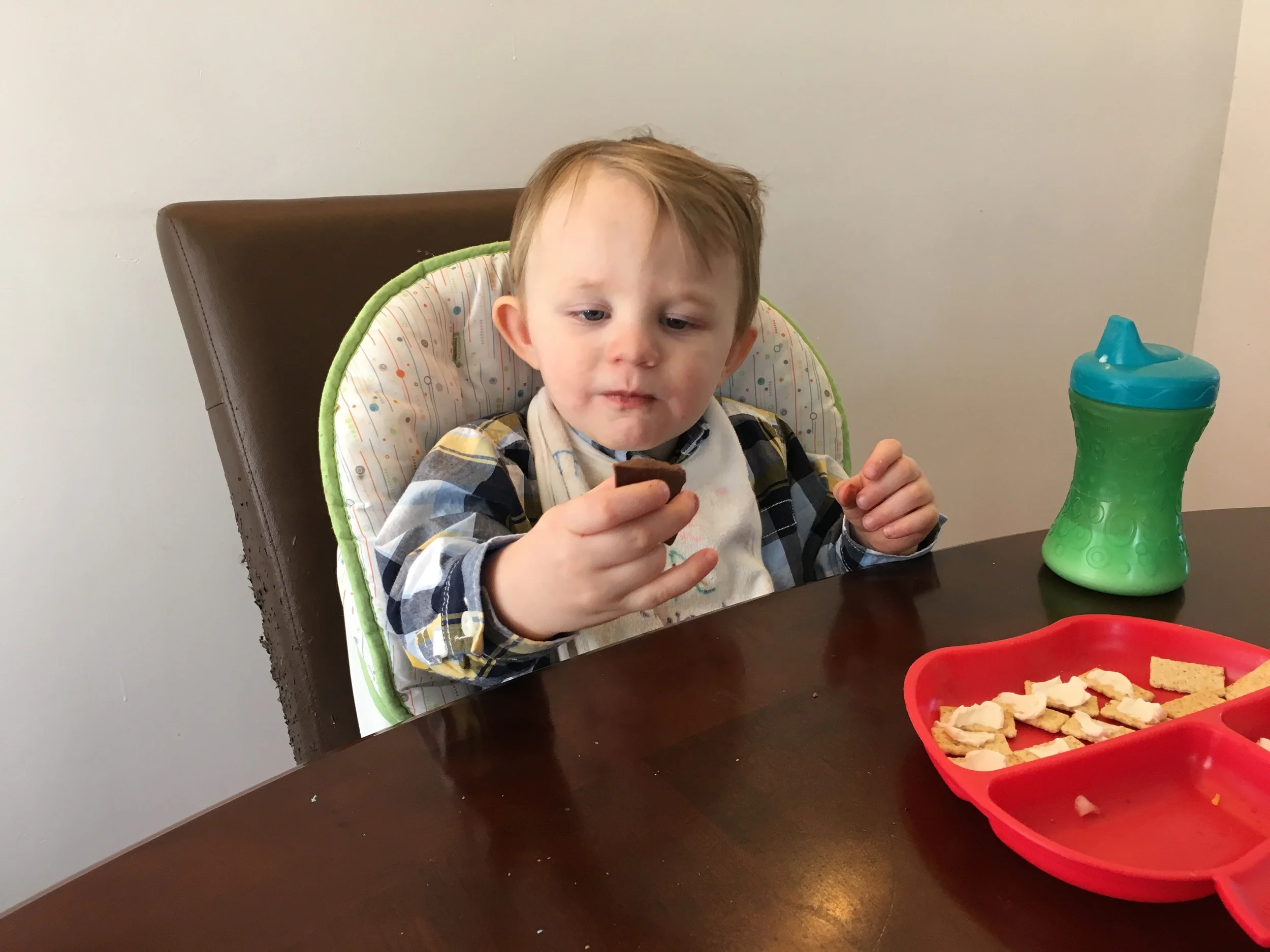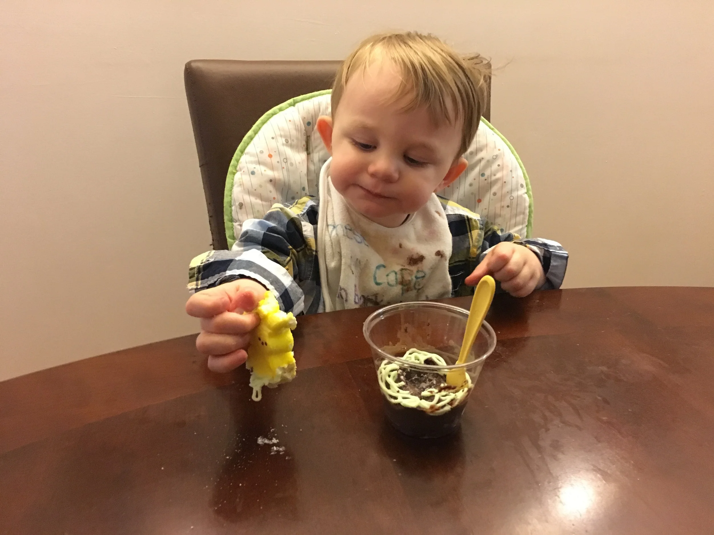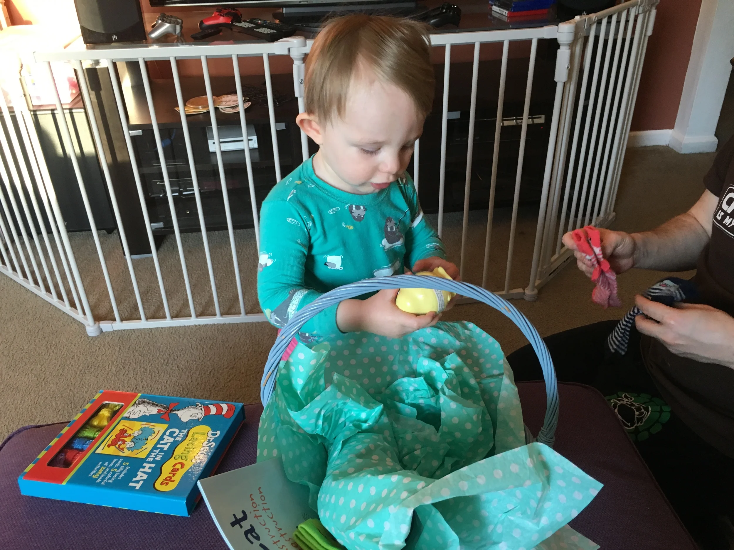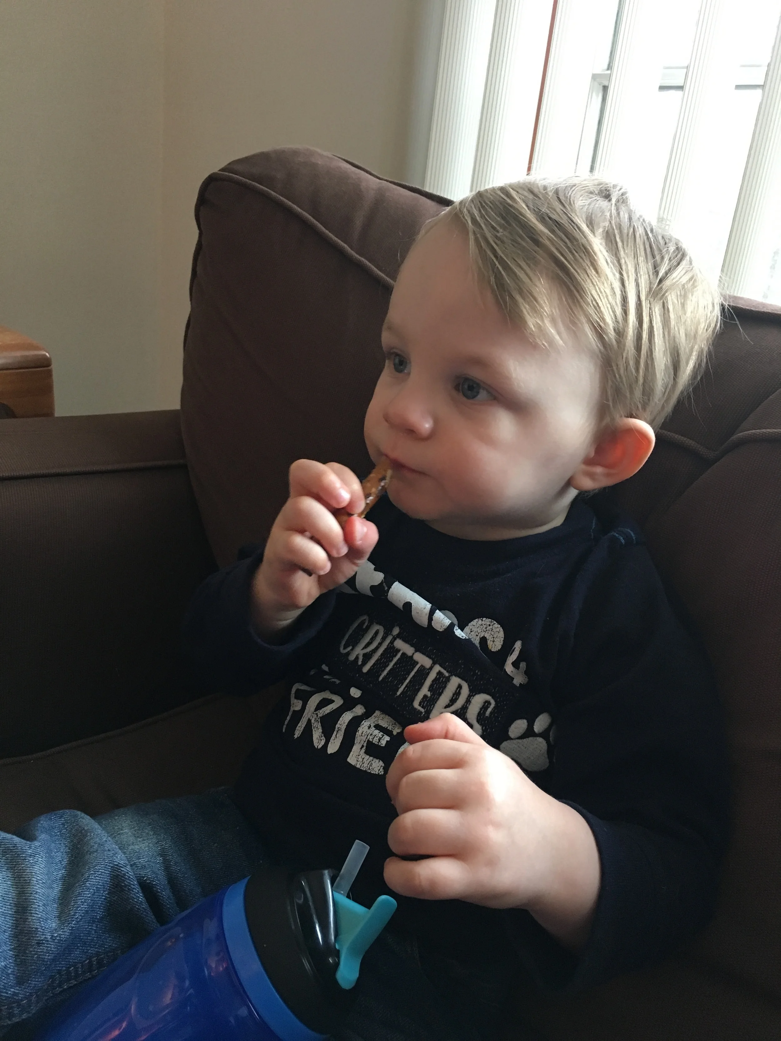 Since we couldn't fit all our desired activities into Easter-day, we continued the fun to the day after Easter. And, randomly, here is Gabriel's first pretzel stick. Mama was eating them for a snack and he wanted one so bad! The Marvin family will surely be excited. ;-)