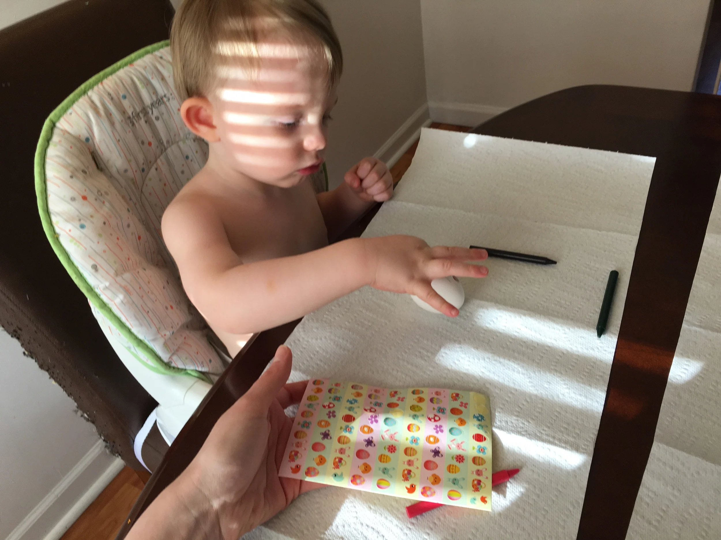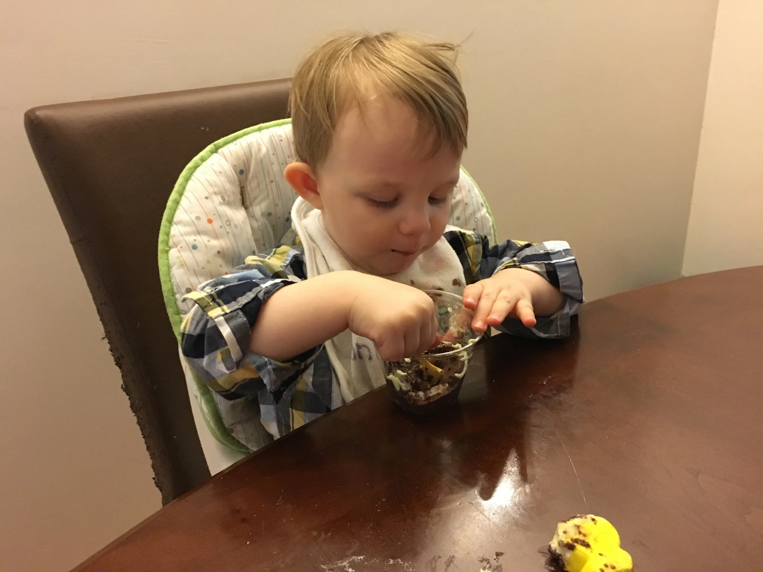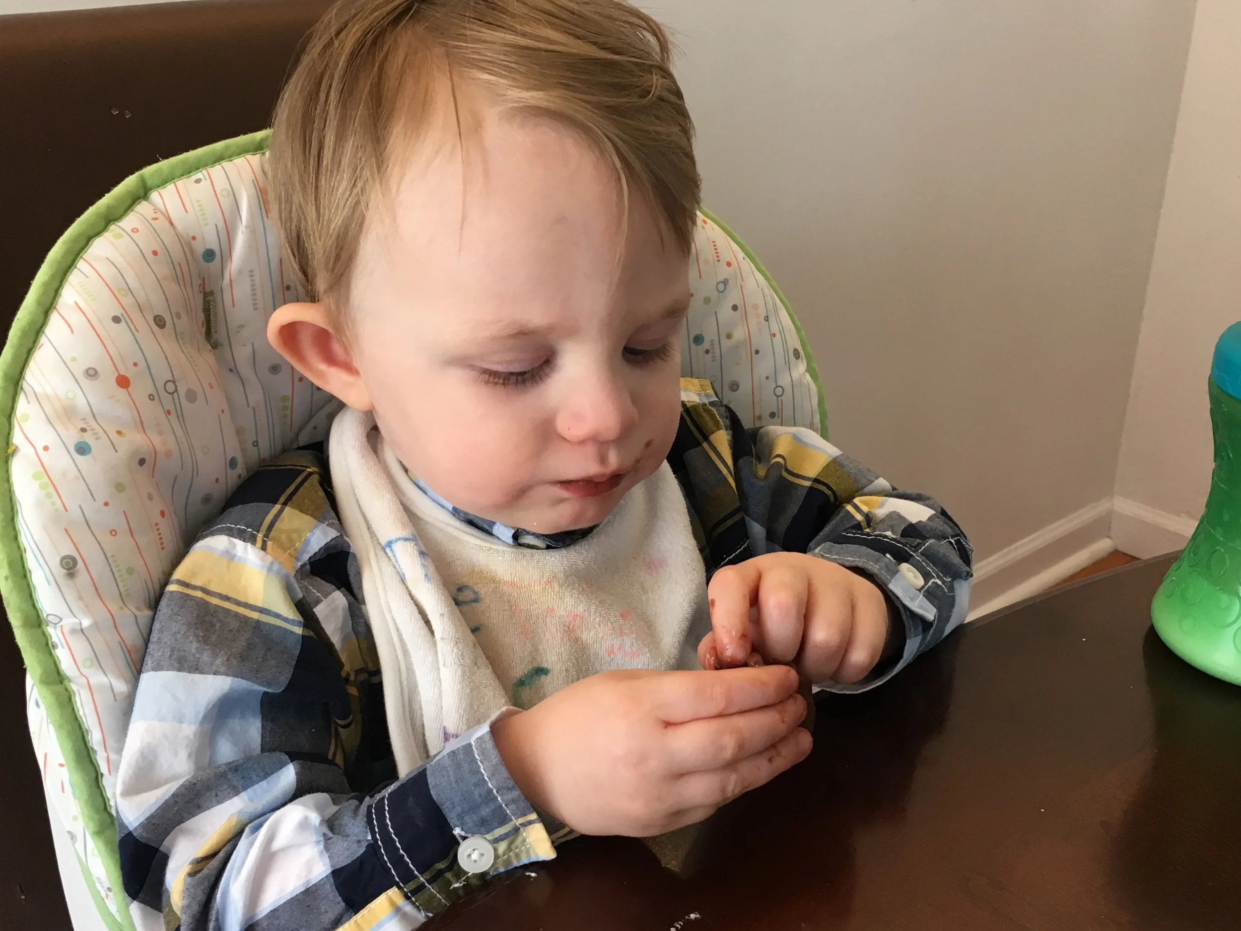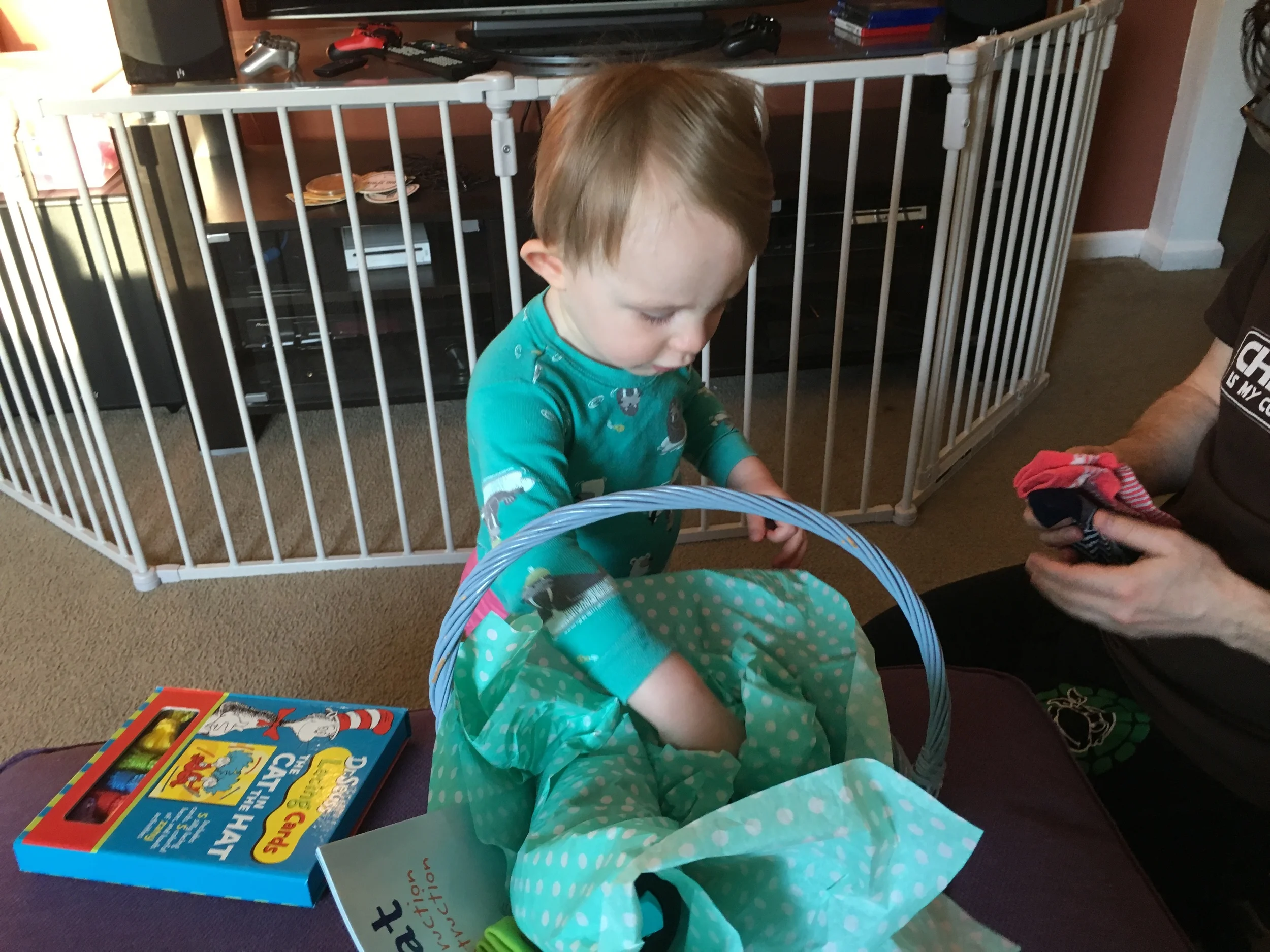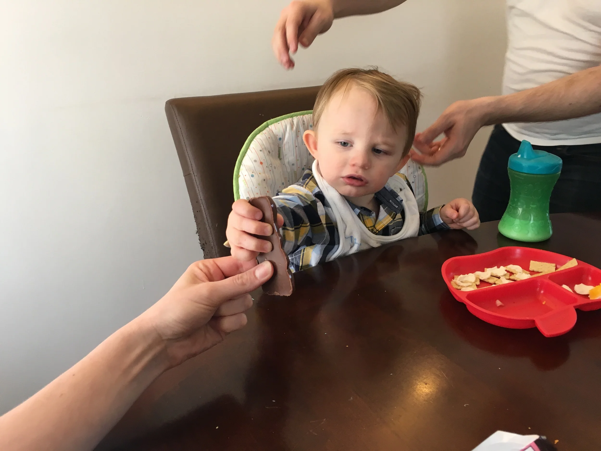 Since we couldn't fit all our desired activities into Easter-day, we continued the fun to the day after Easter. And, randomly, here is Gabriel's first pretzel stick. Mama was eating them for a snack and he wanted one so bad! The Marvin family will surely be excited. ;-)
