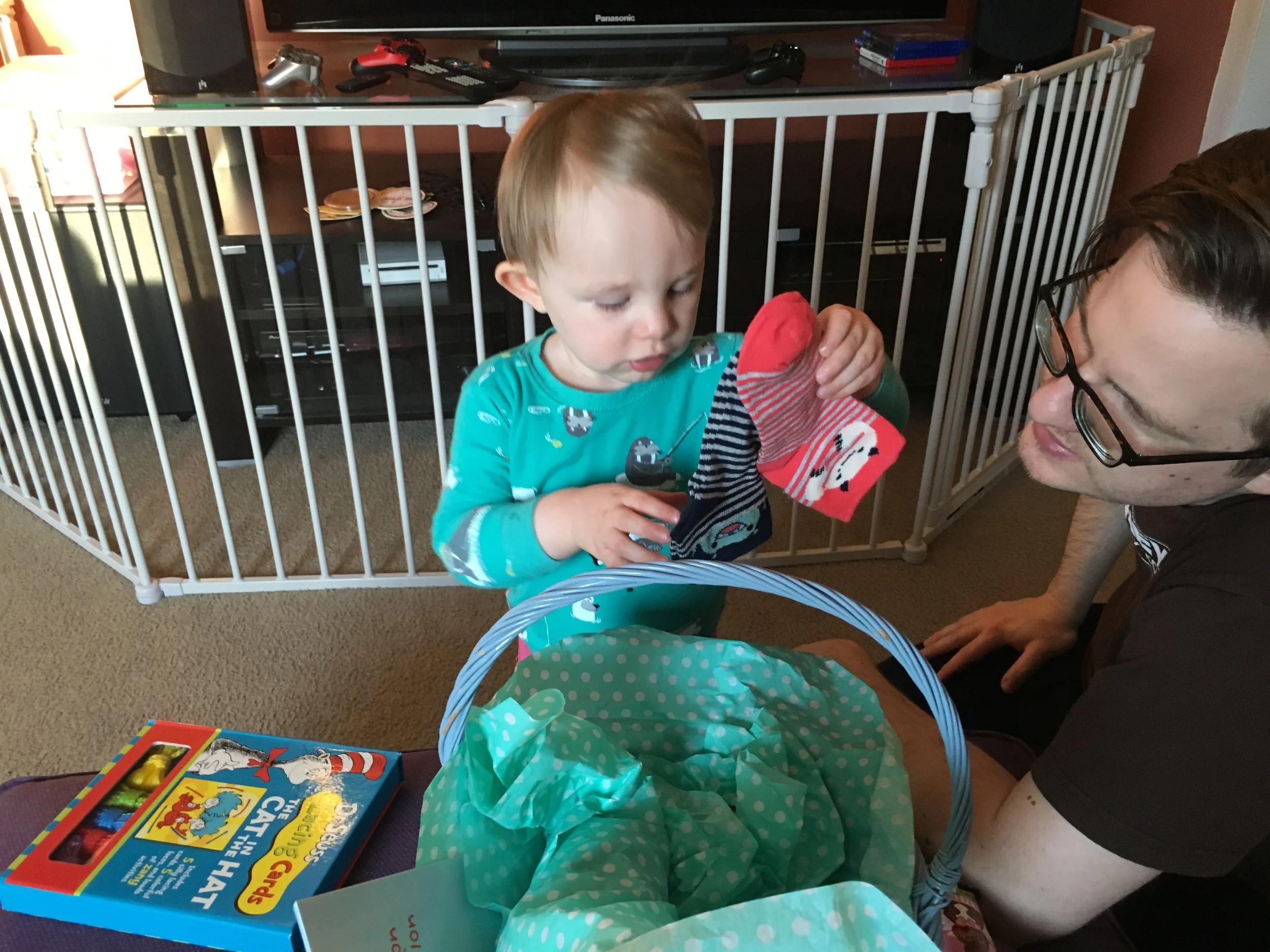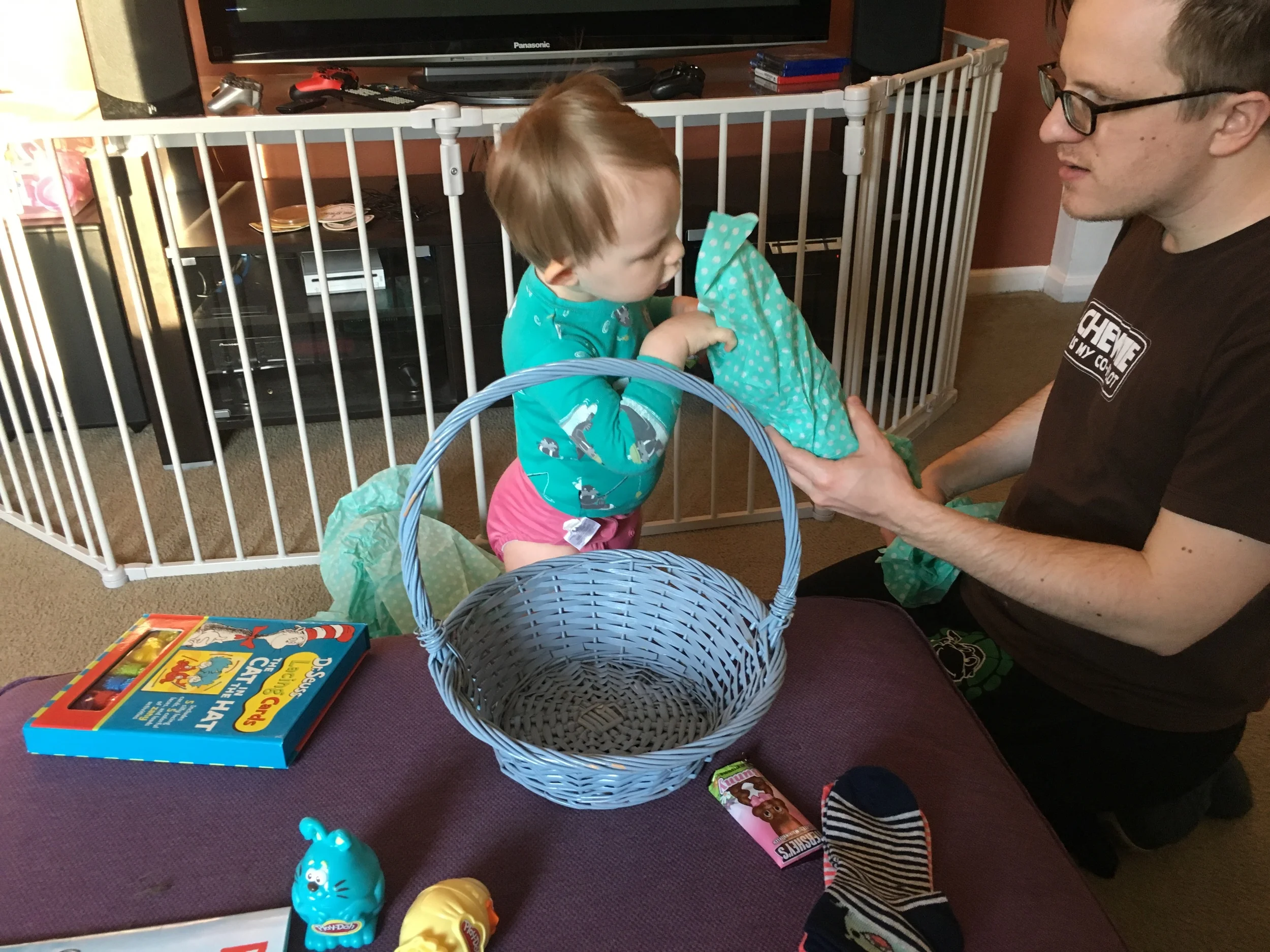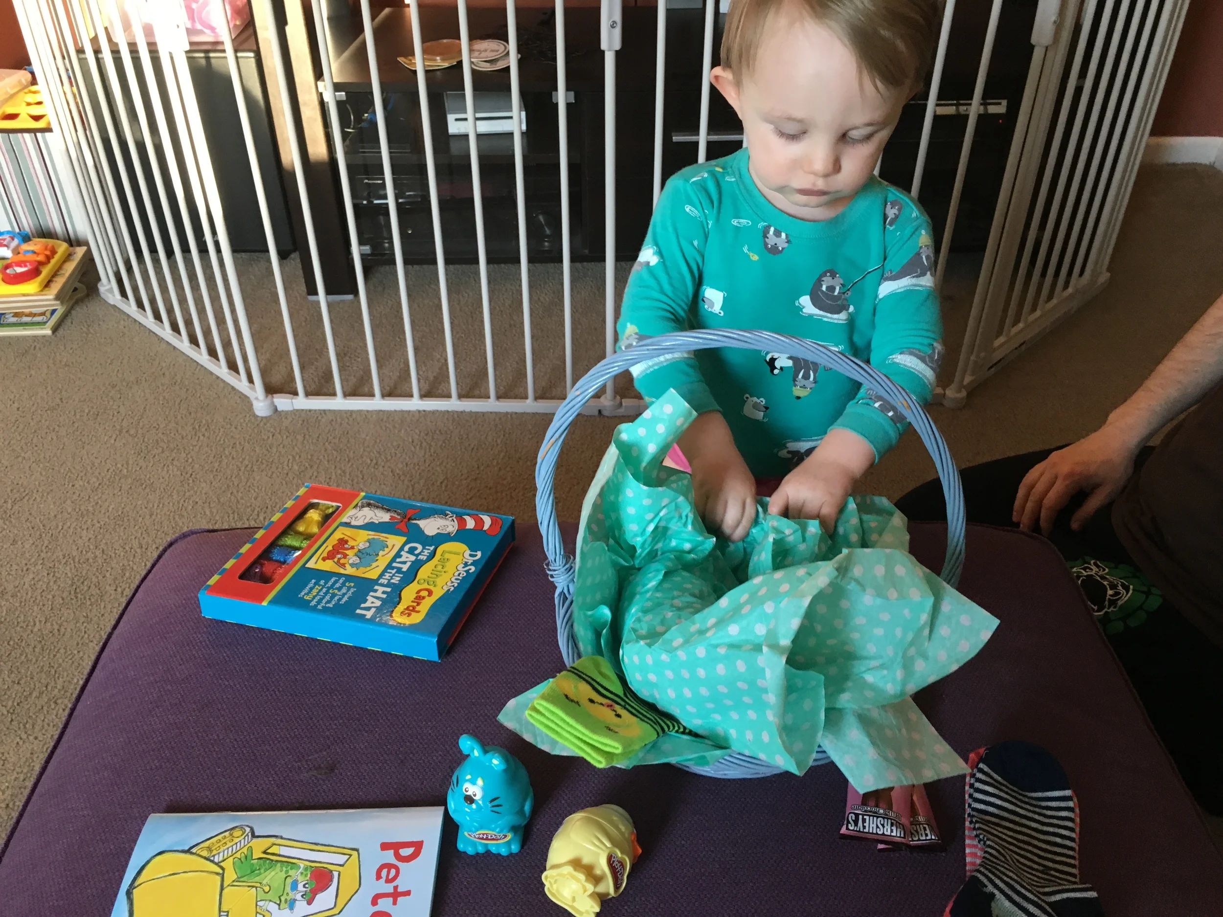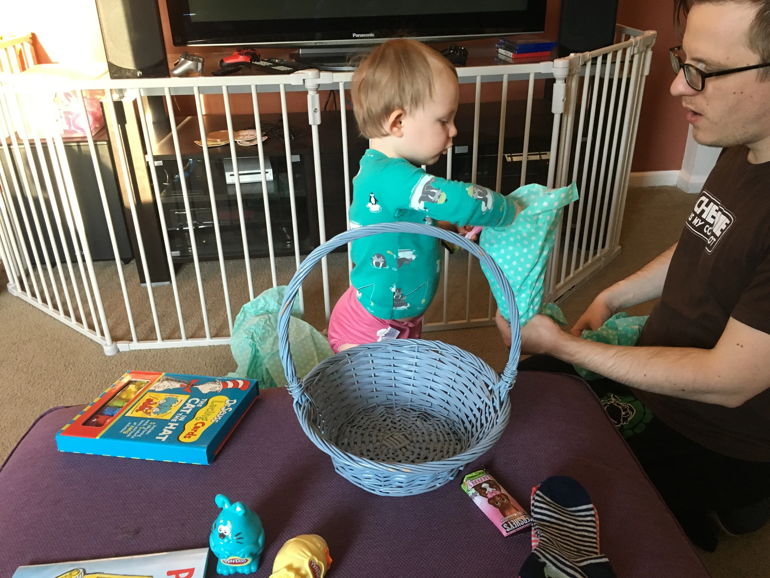 Since we couldn't fit all our desired activities into Easter-day, we continued the fun to the day after Easter. And, randomly, here is Gabriel's first pretzel stick. Mama was eating them for a snack and he wanted one so bad! The Marvin family will surely be excited. ;-)