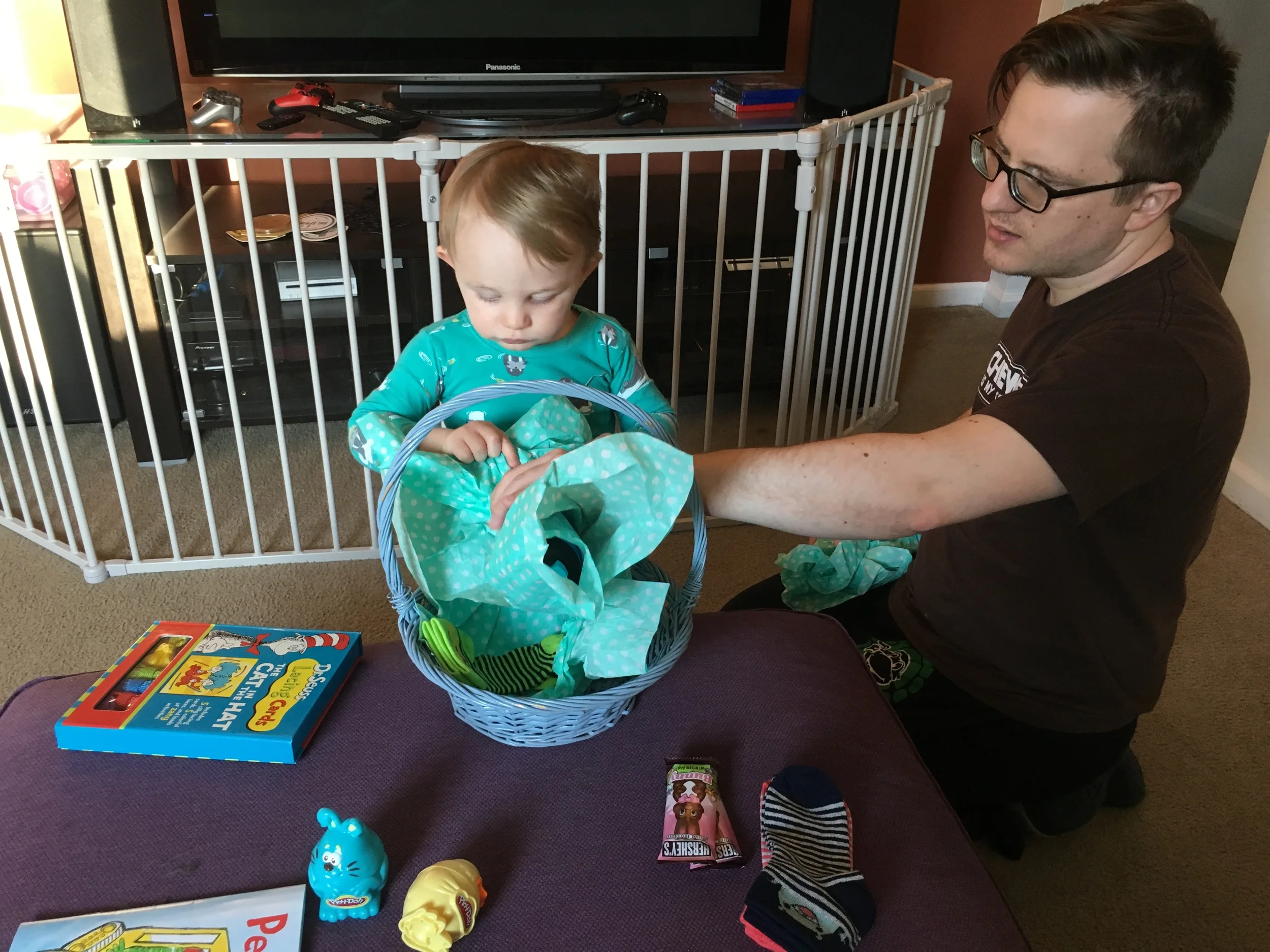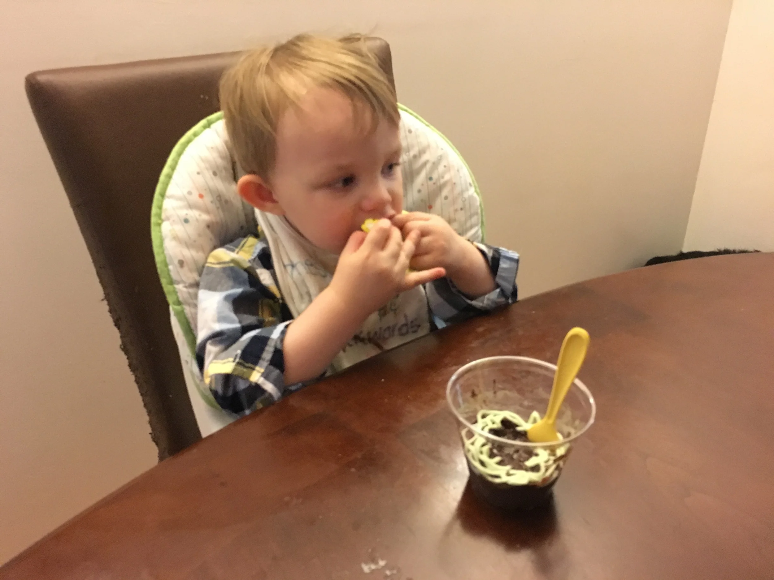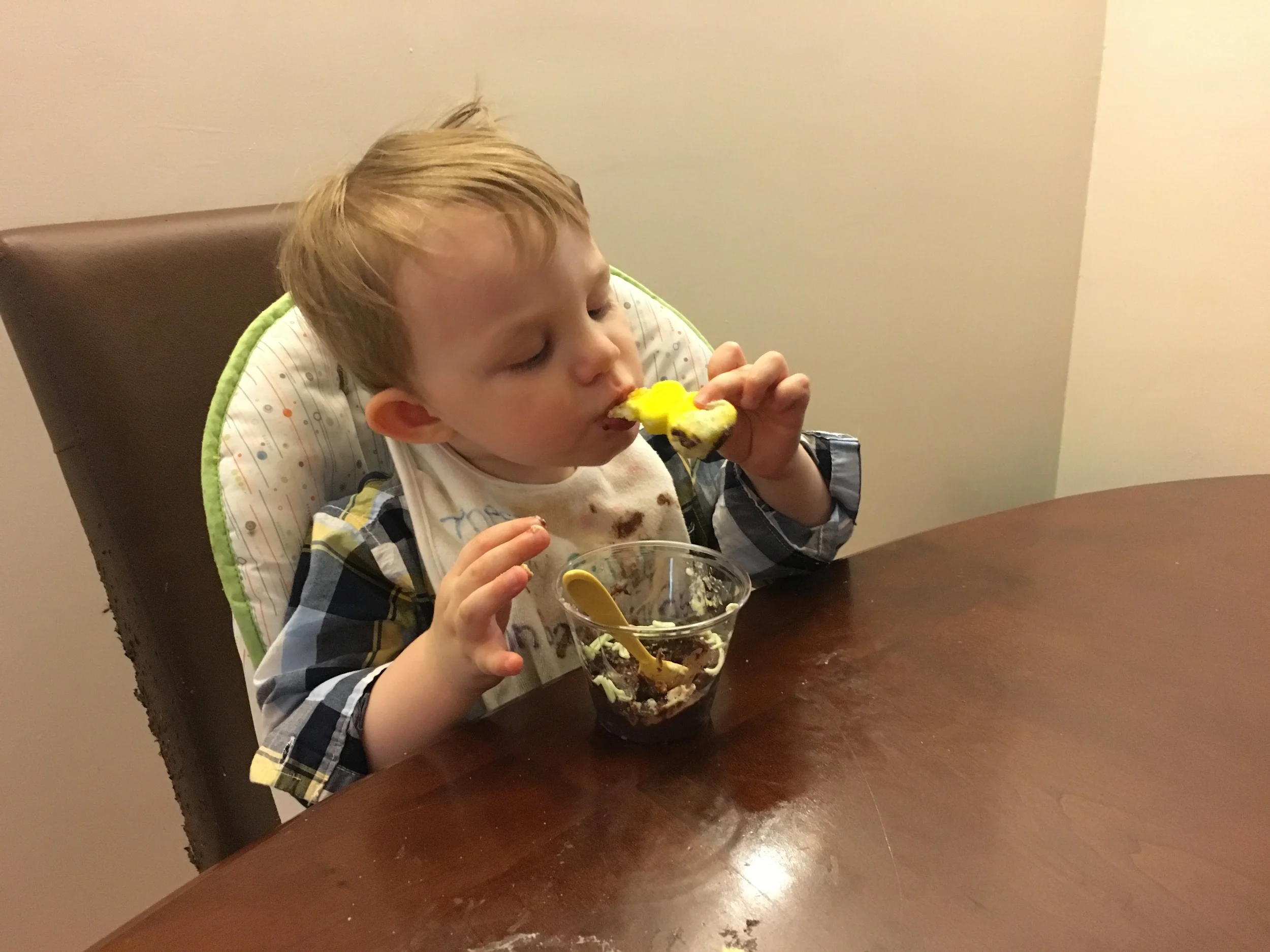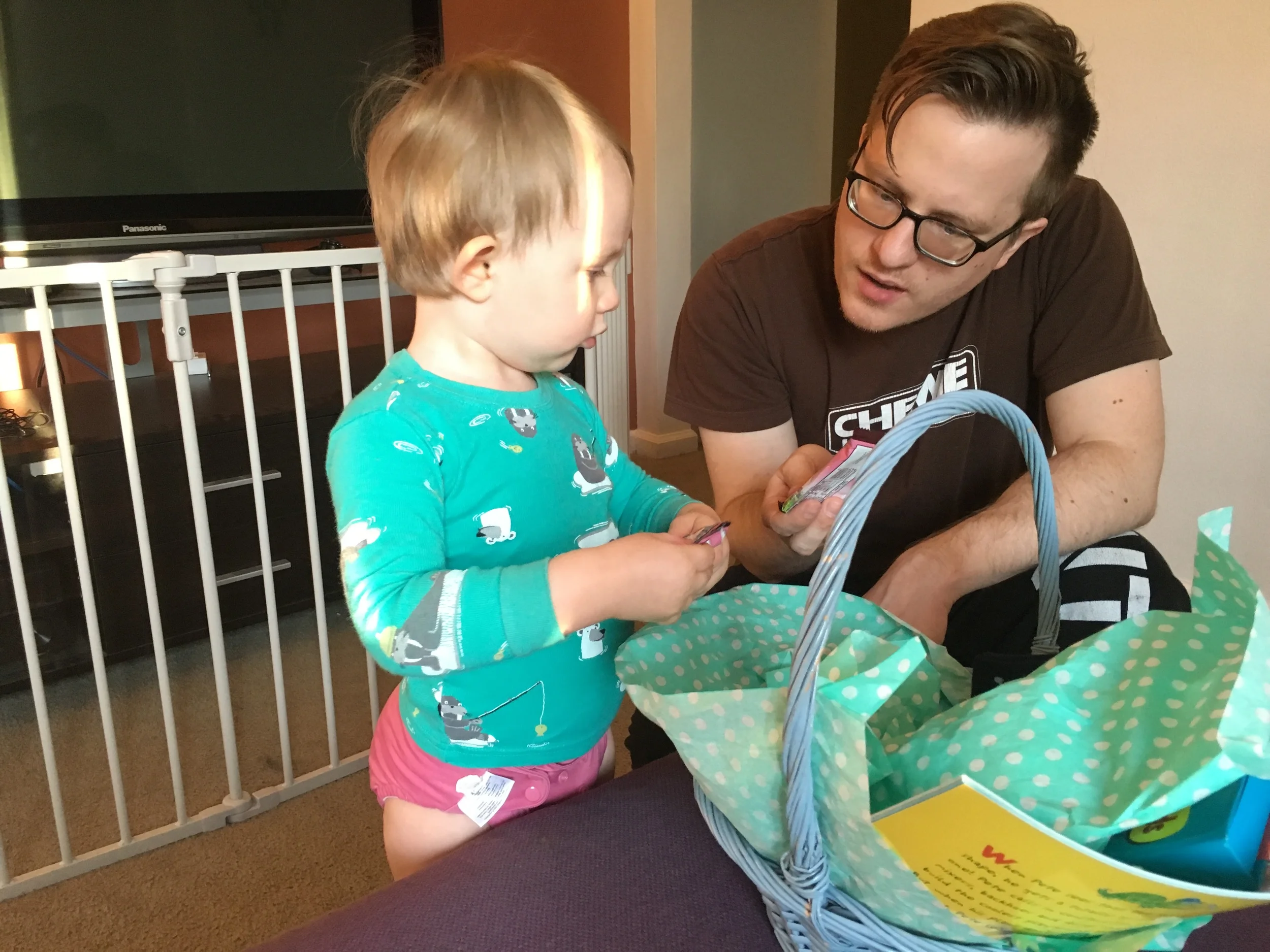 Since we couldn't fit all our desired activities into Easter-day, we continued the fun to the day after Easter. And, randomly, here is Gabriel's first pretzel stick. Mama was eating them for a snack and he wanted one so bad! The Marvin family will surely be excited. ;-)