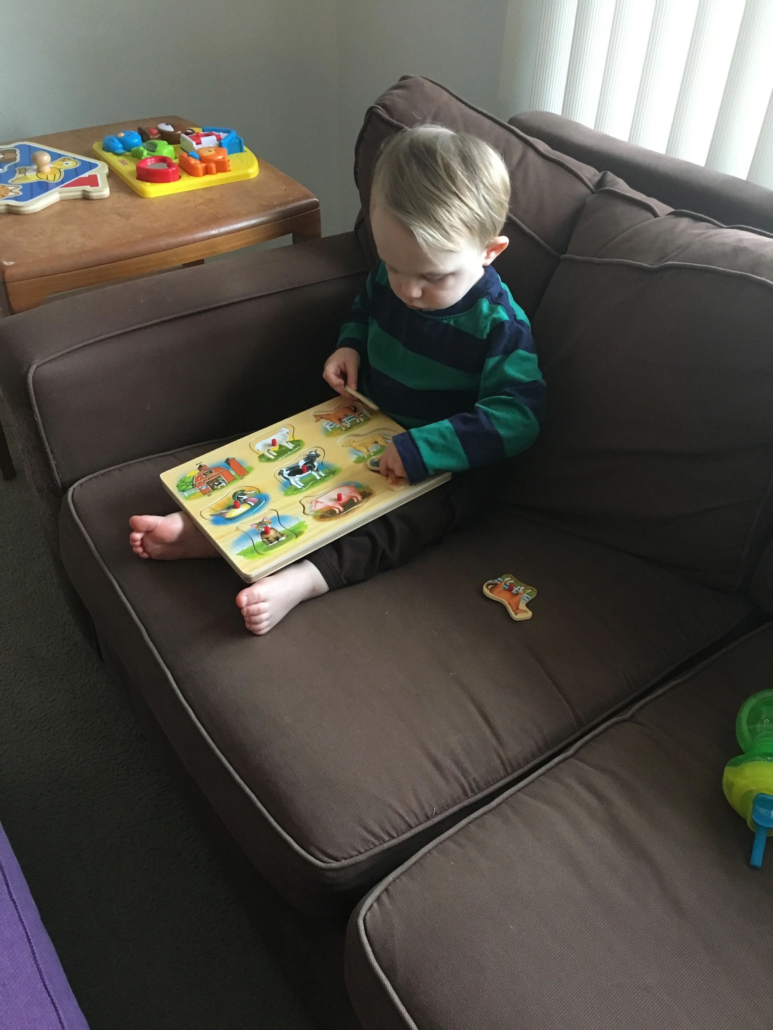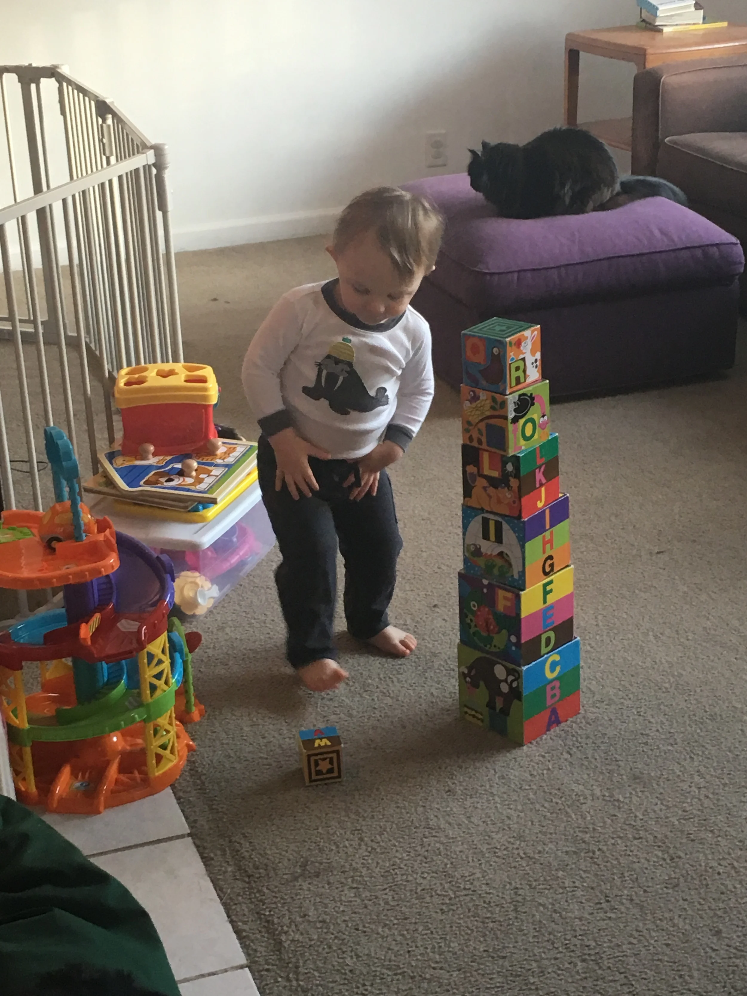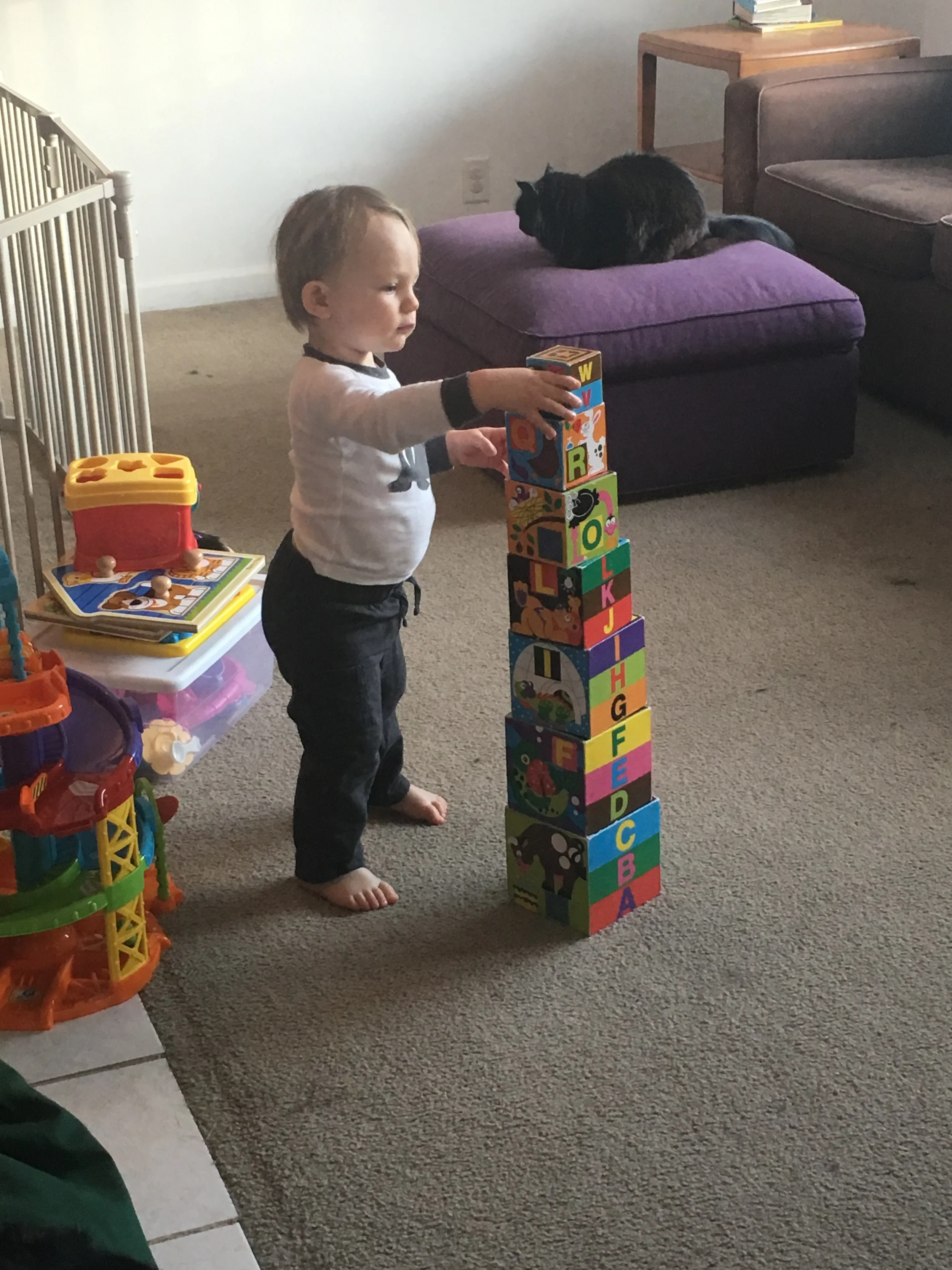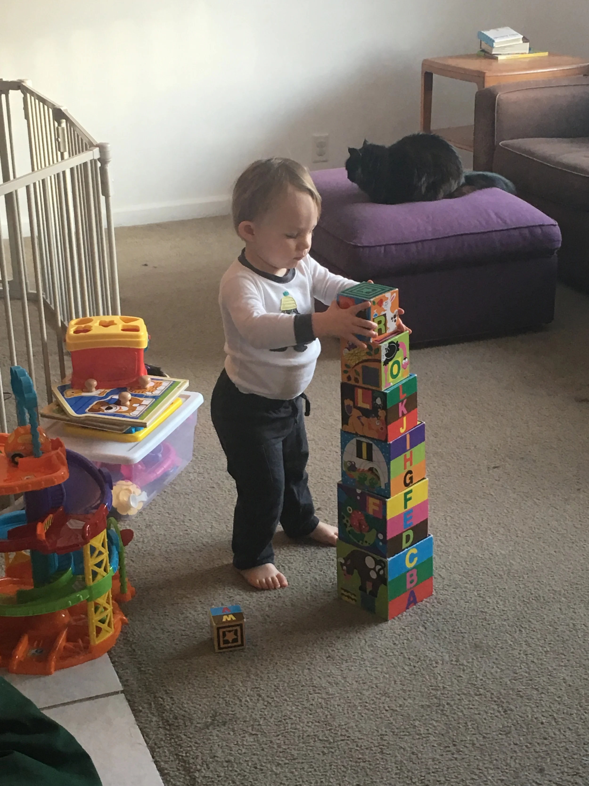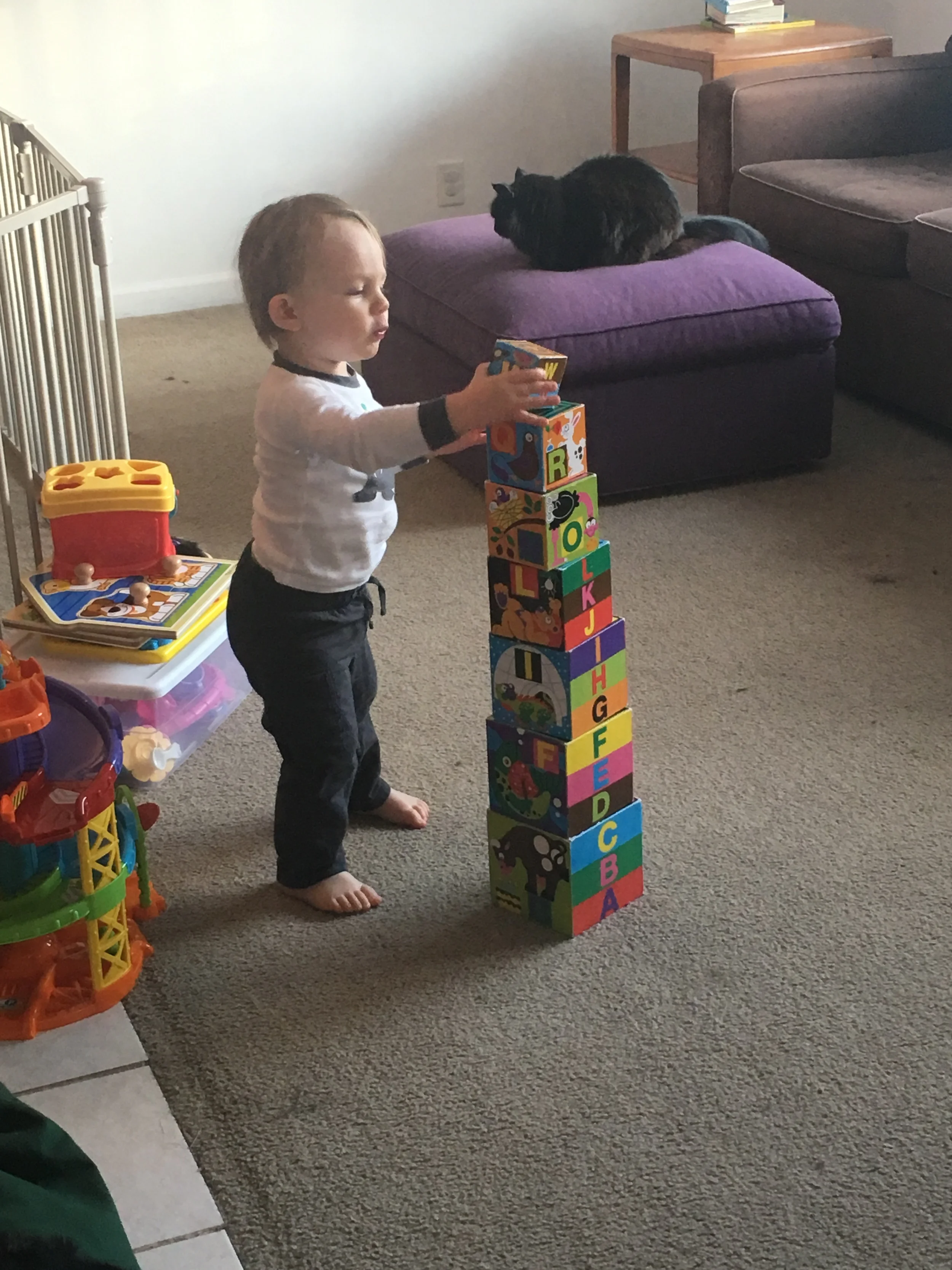 It seems like he mastered these building blocks over night. He used to struggle but now he builds the whole tower like it's no big deal. Forgive the multitude of pictures, but his facial expressions, and intense concentration, kill me!