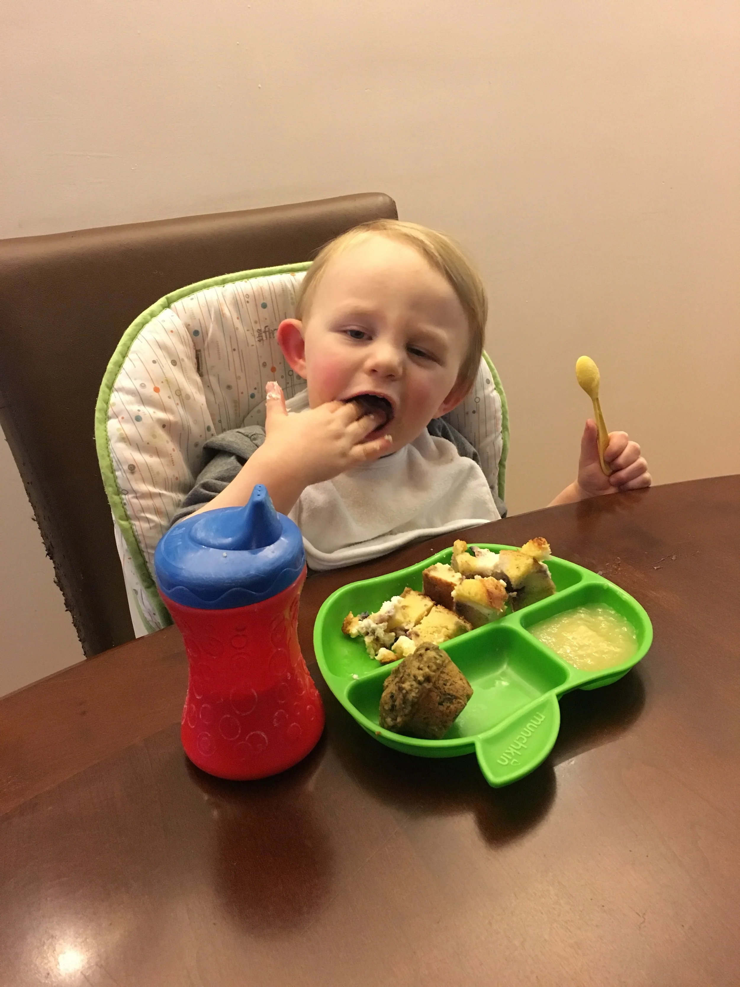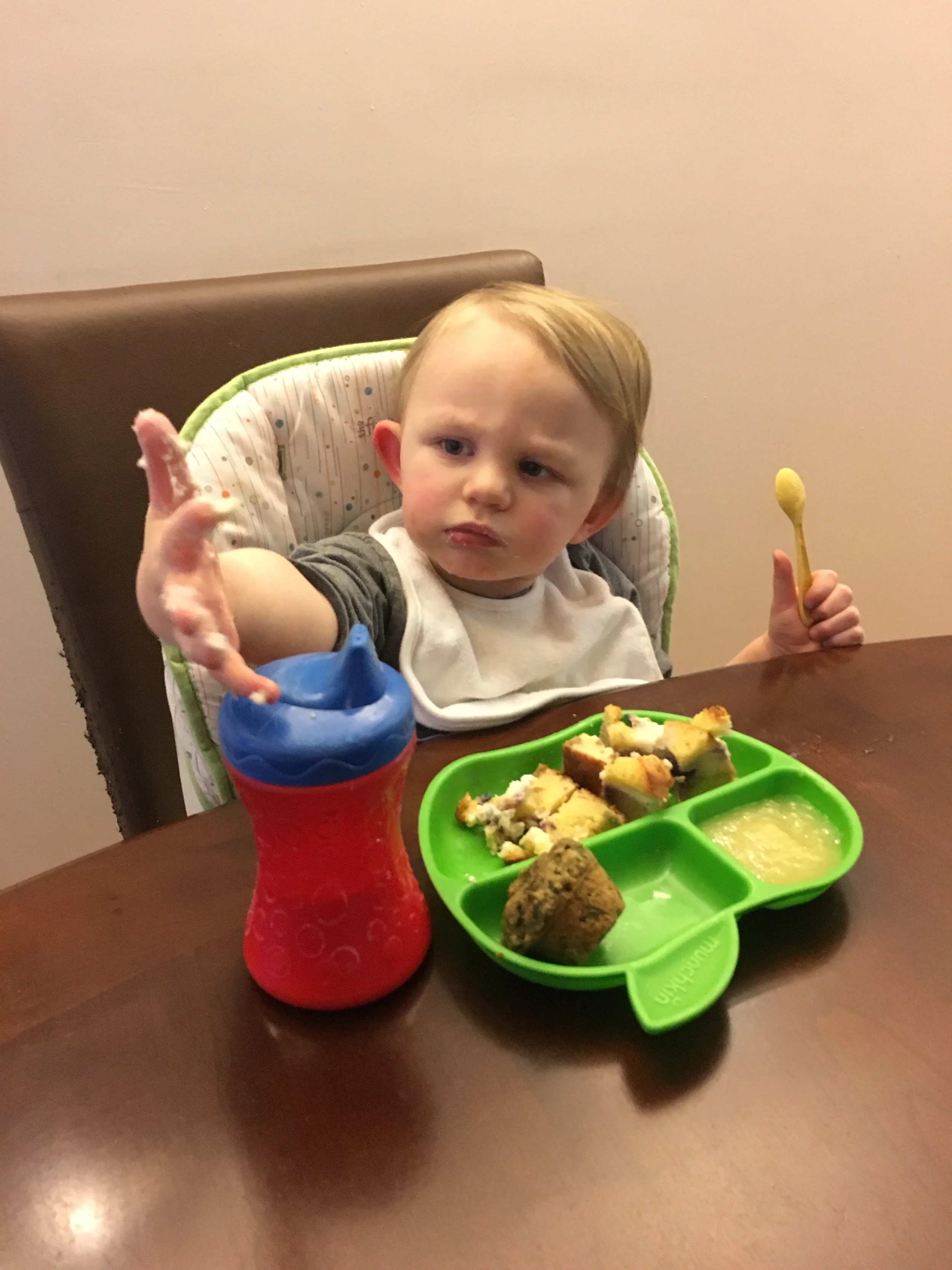 "Mama, I think I got some breakfast on my fingers."