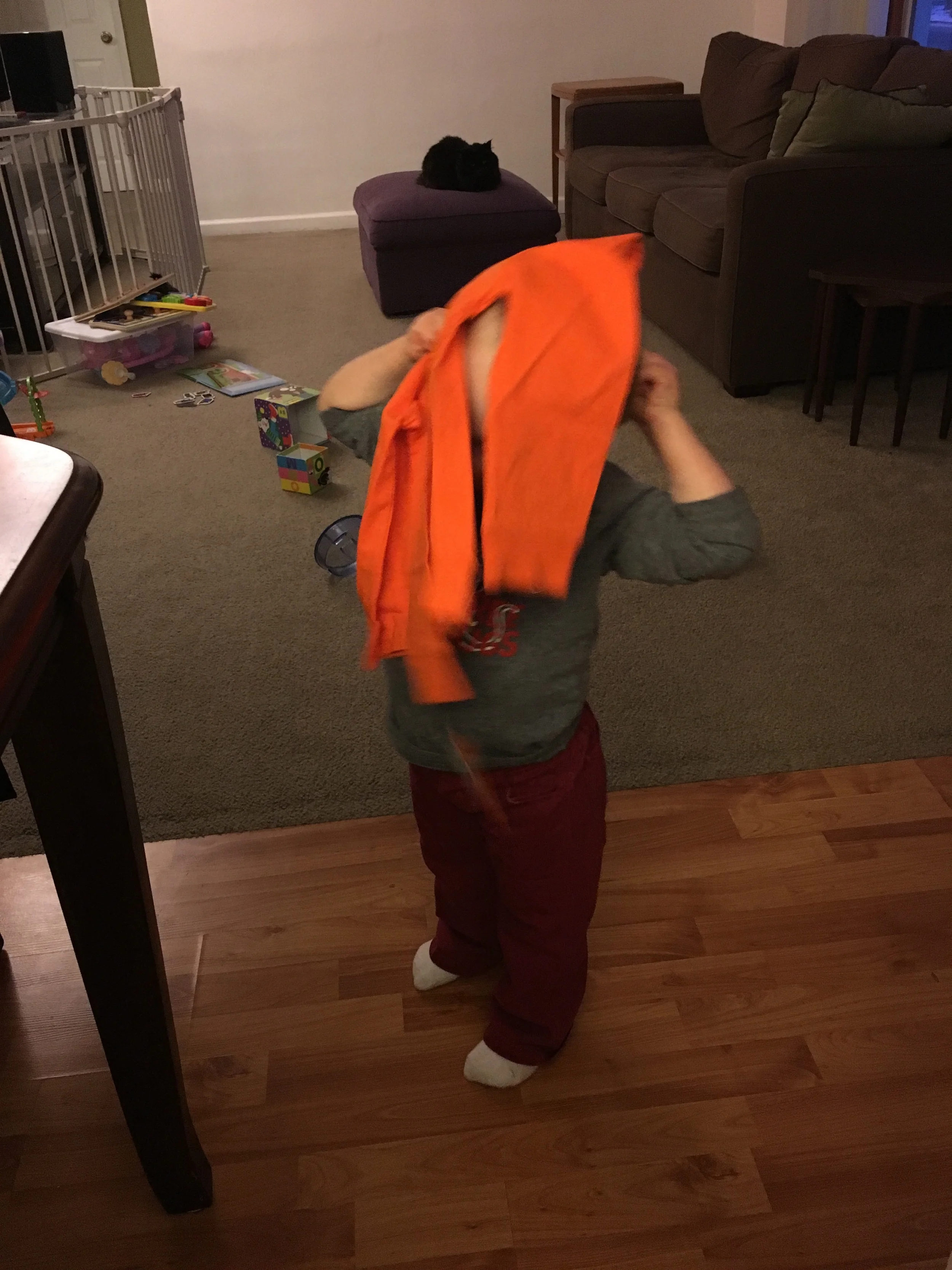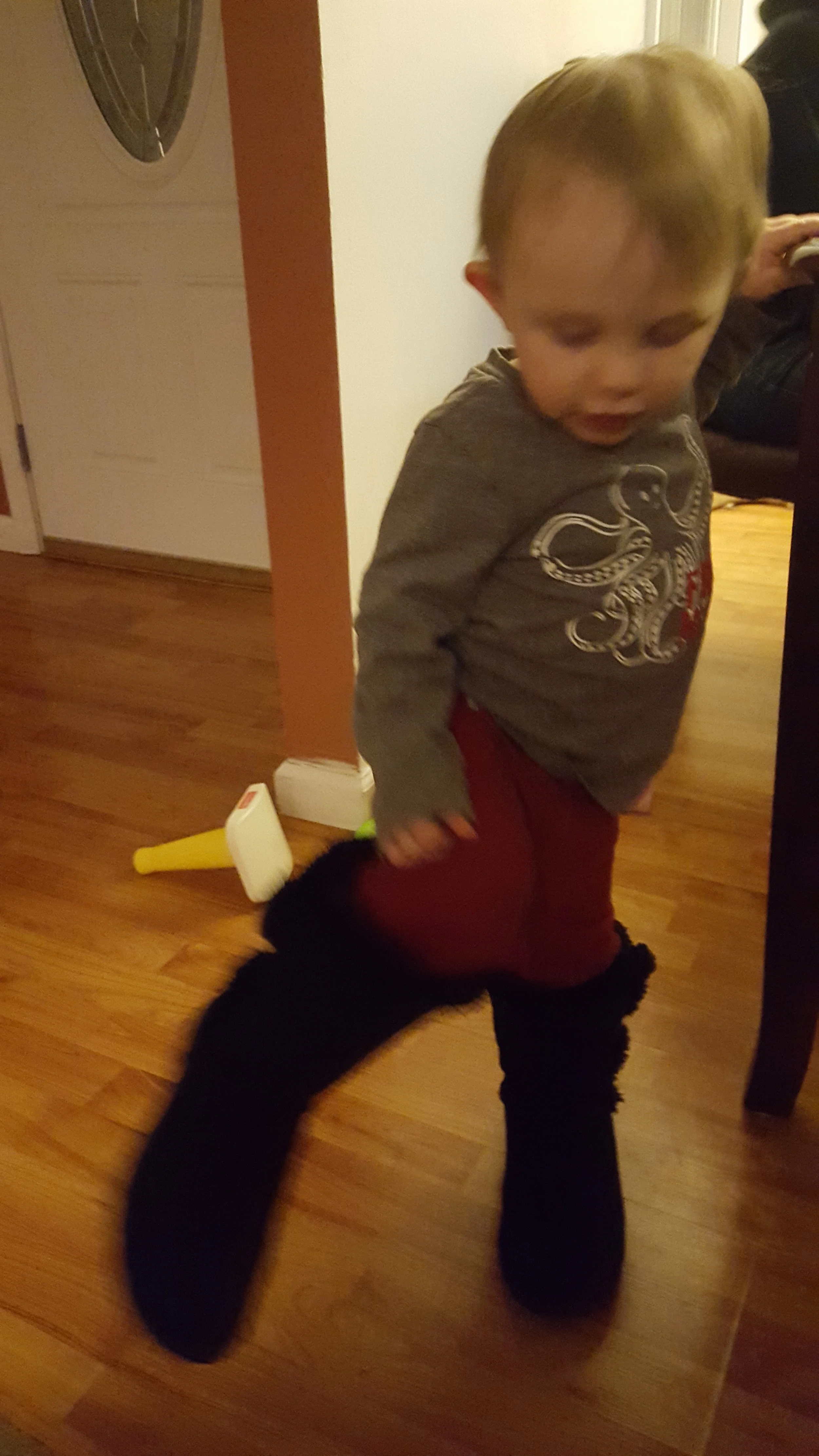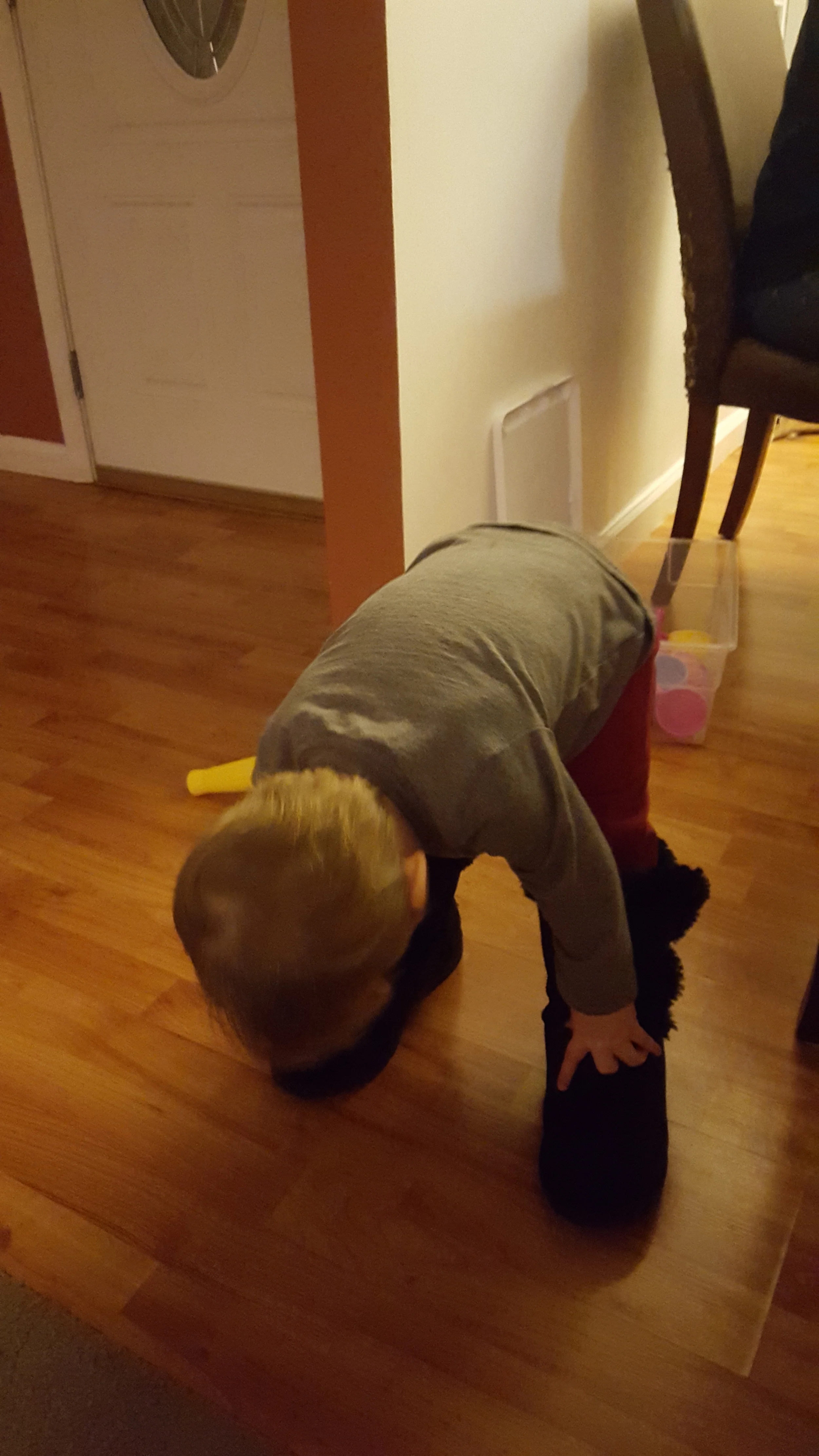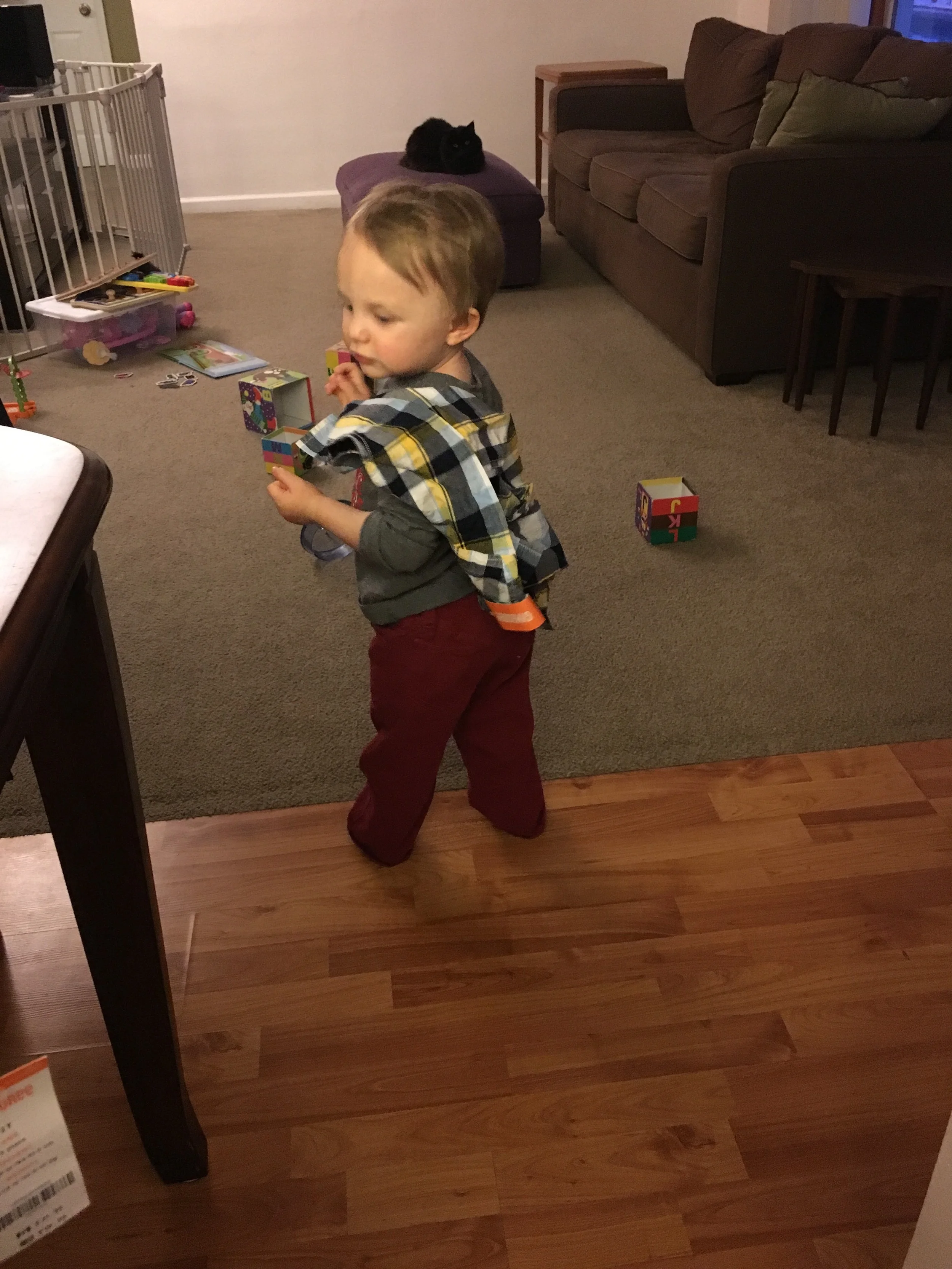 And mama got new boots. So after "trying on" his own clothes, he "tried on" my boots.