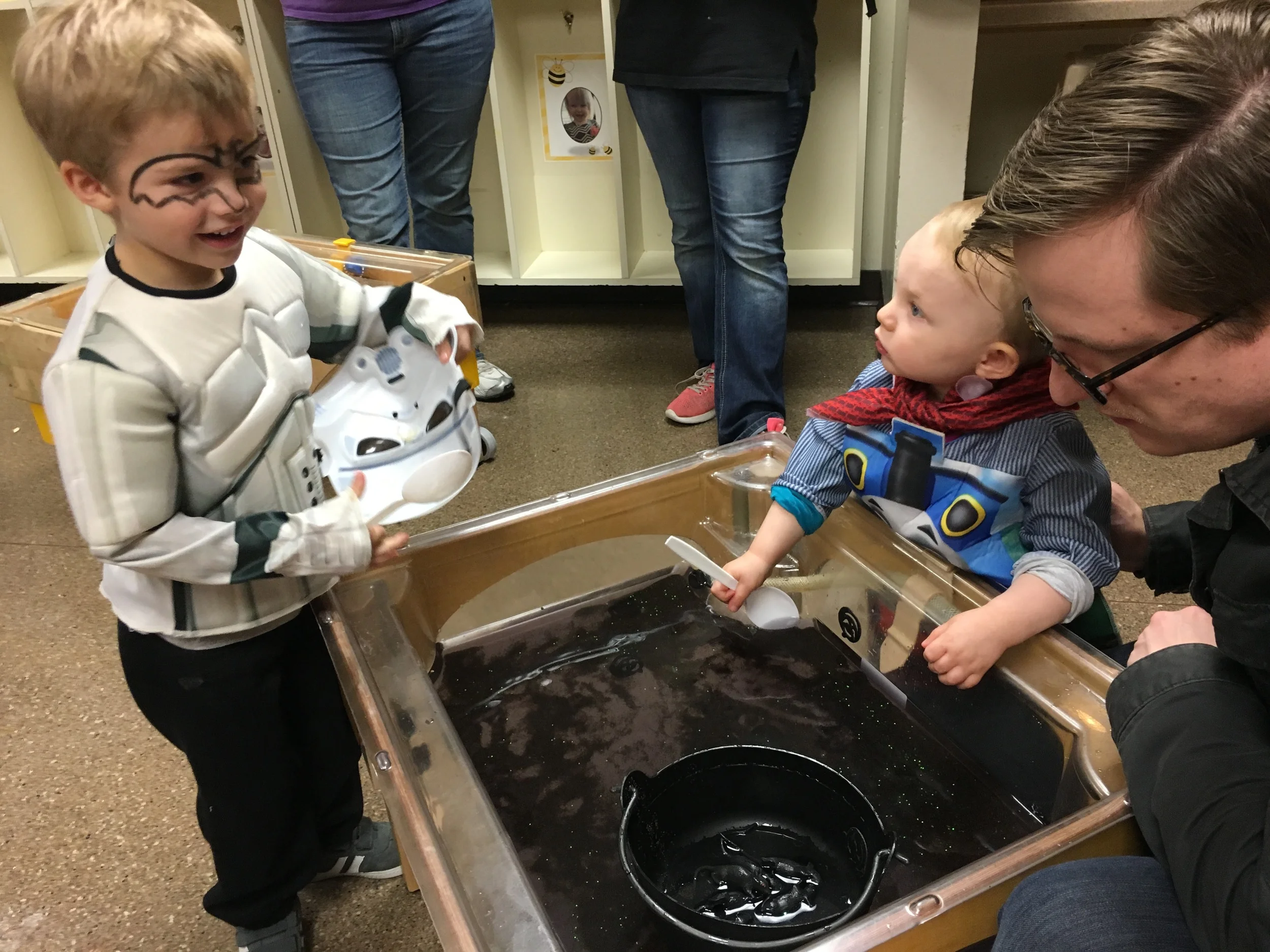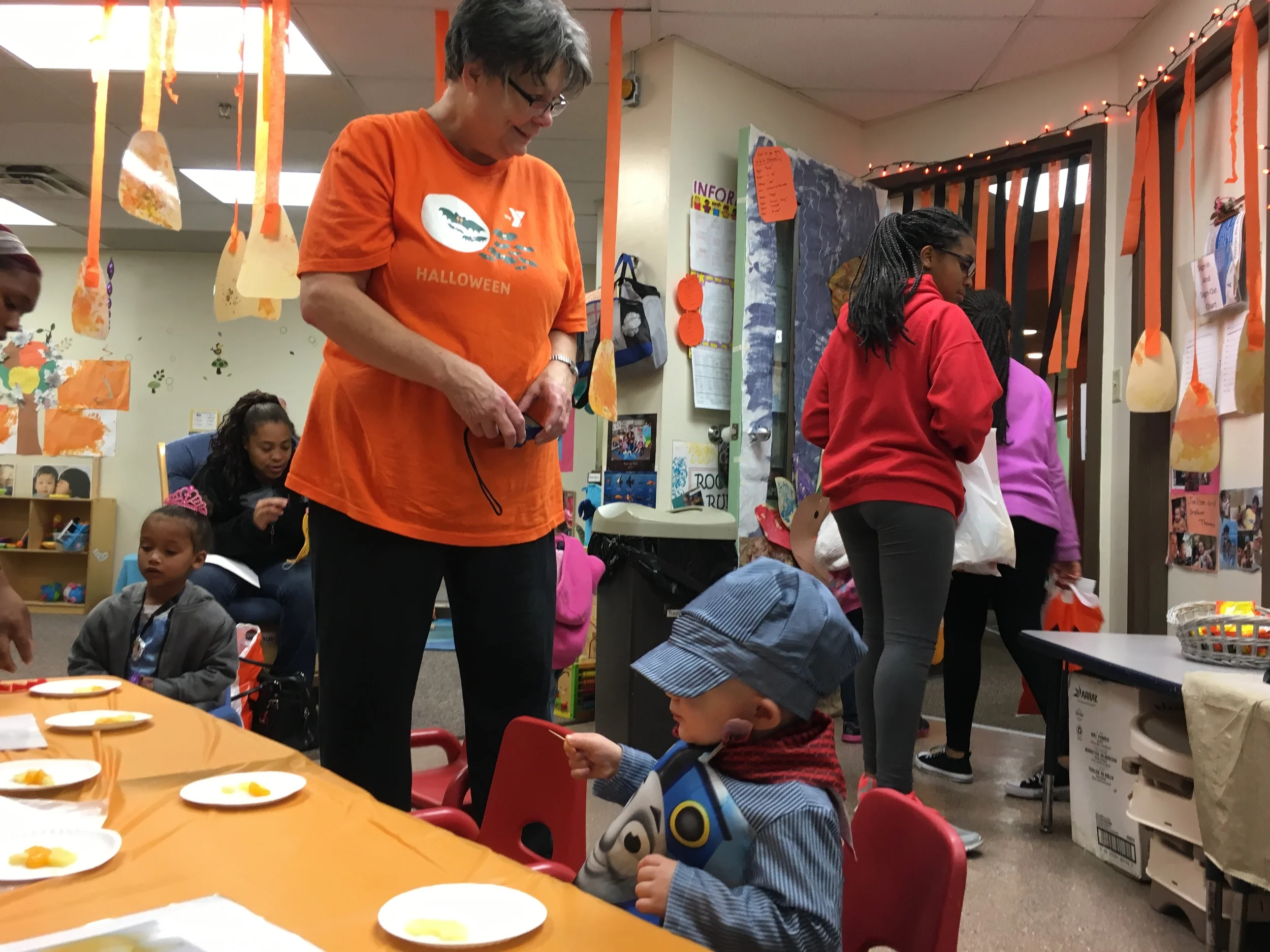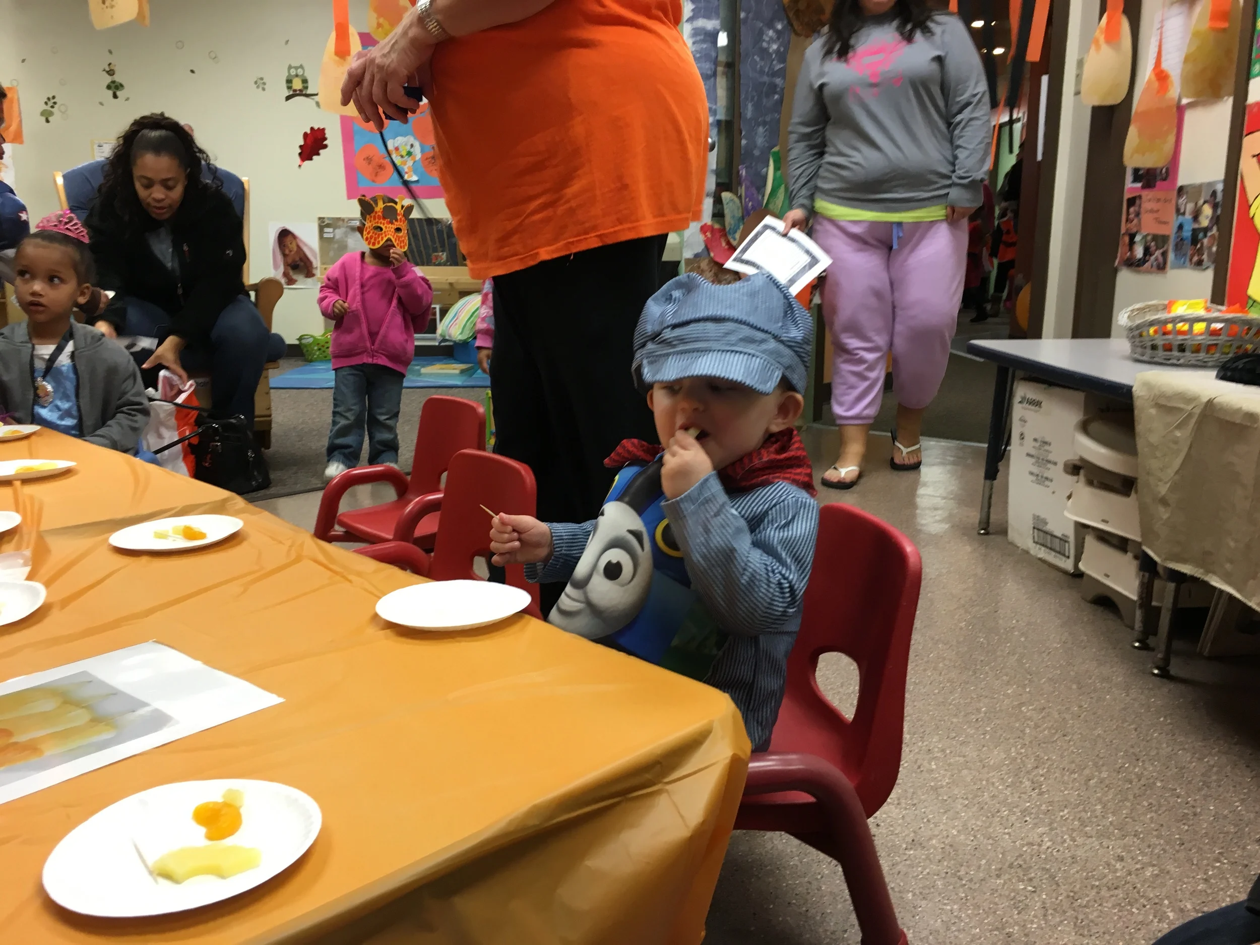 It's a good thing we had so many fun activities before Halloween. On Halloween Gabriel was still fighting off his amoxicillin rash and feeling really puny. Plus, it was a terribly blustery day so going outside was not the best option for our little man. So while kids came to the door we entertained them with pumpkin painting.