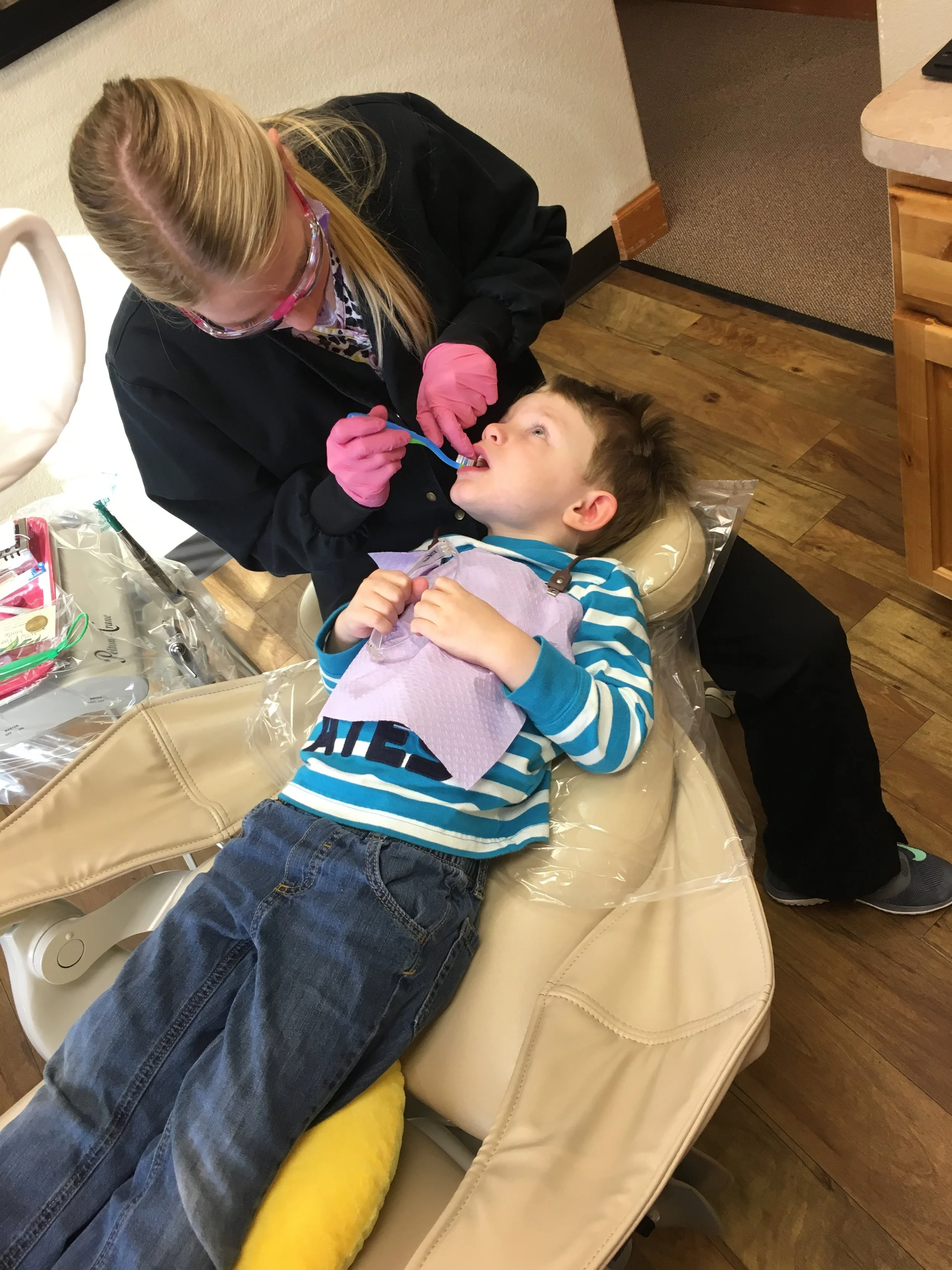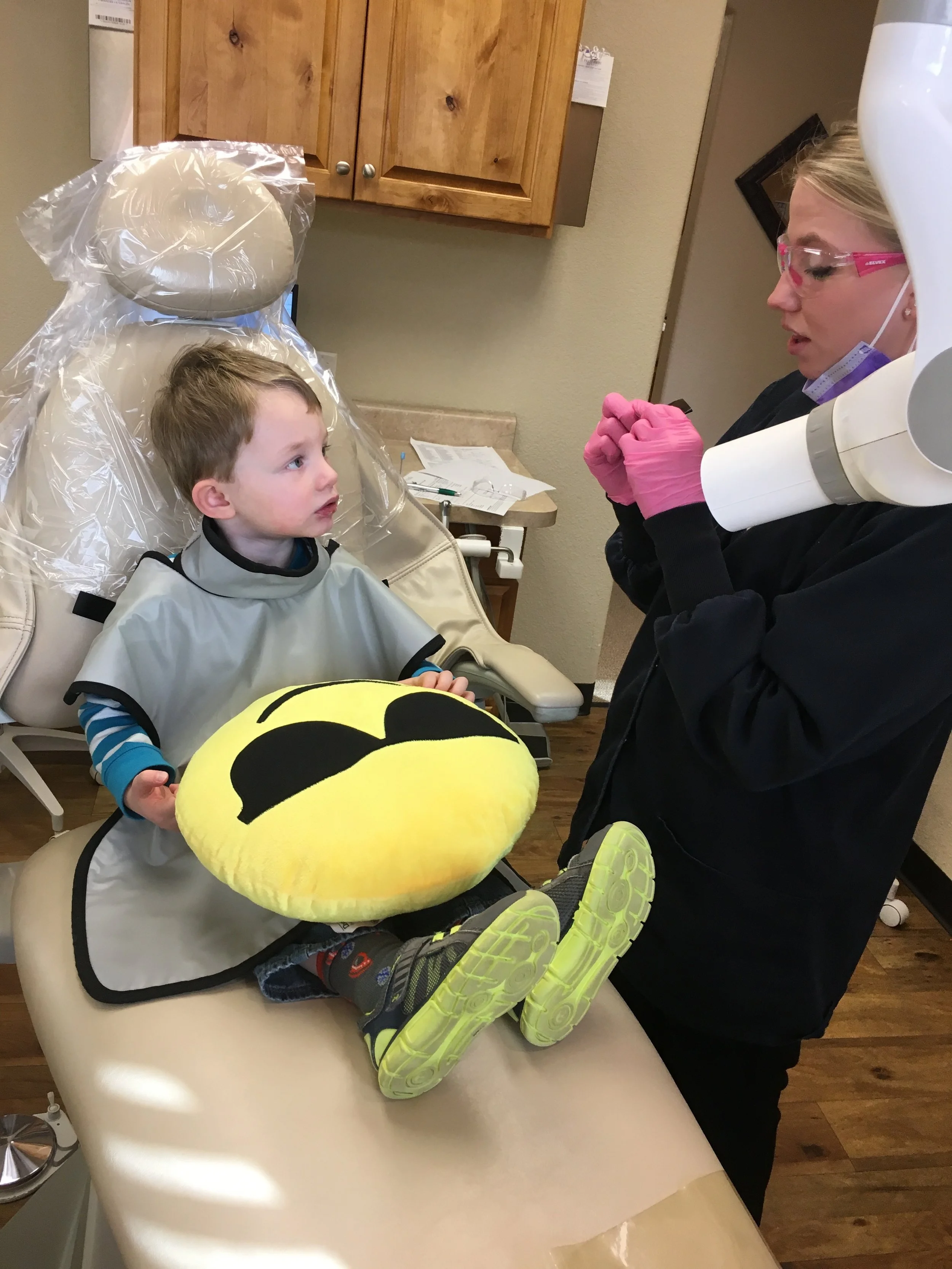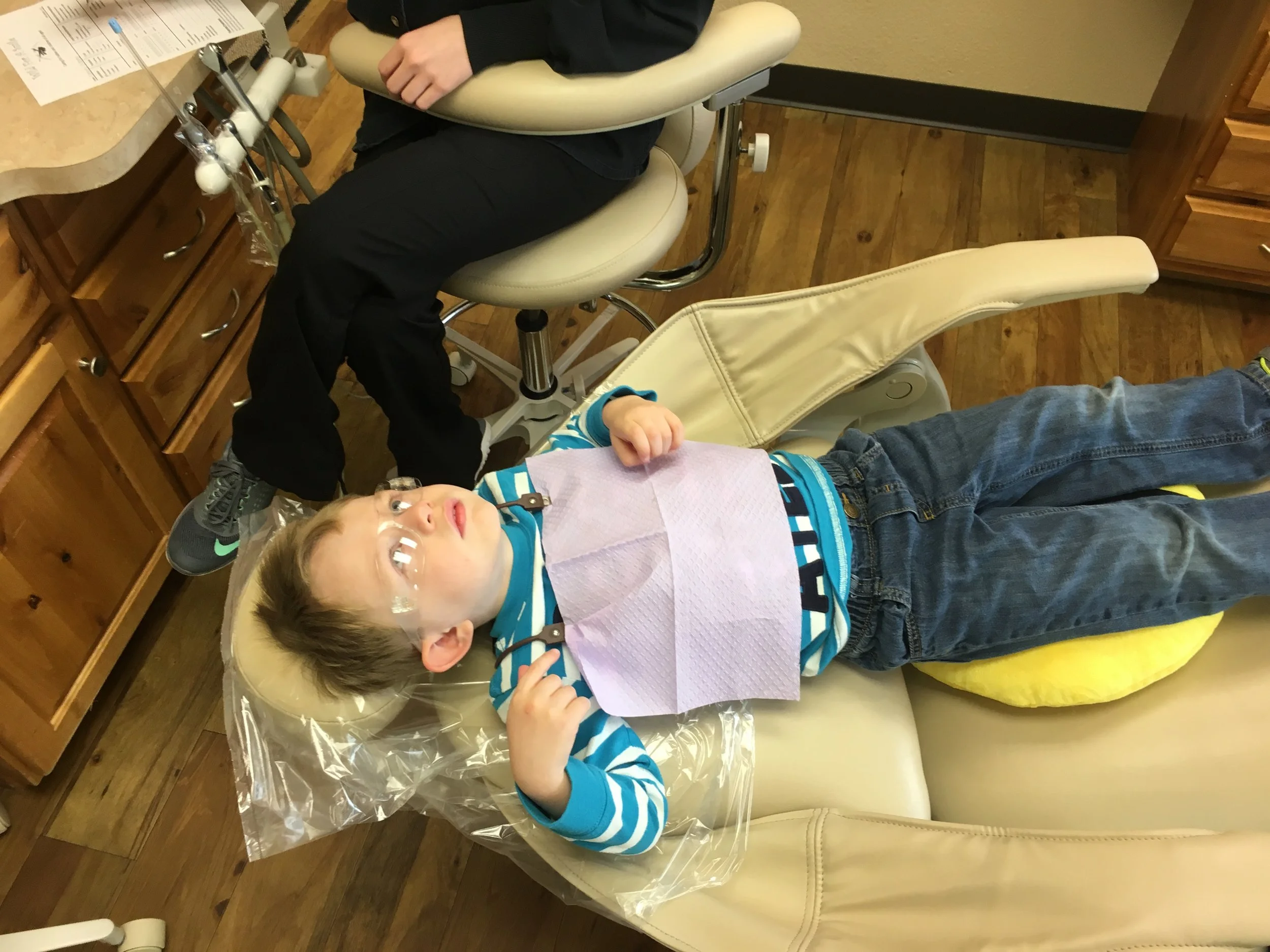 First dentist visit (2.5 years old)! He did an awesome job. It helps when there’s a TV with Netflix on the ceiling.