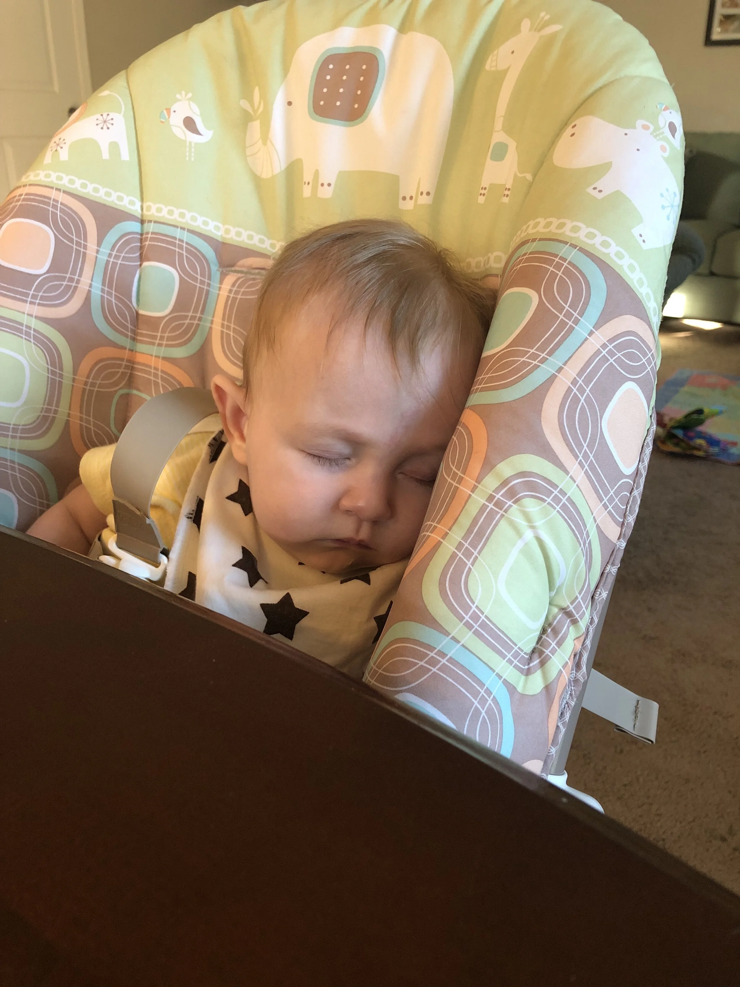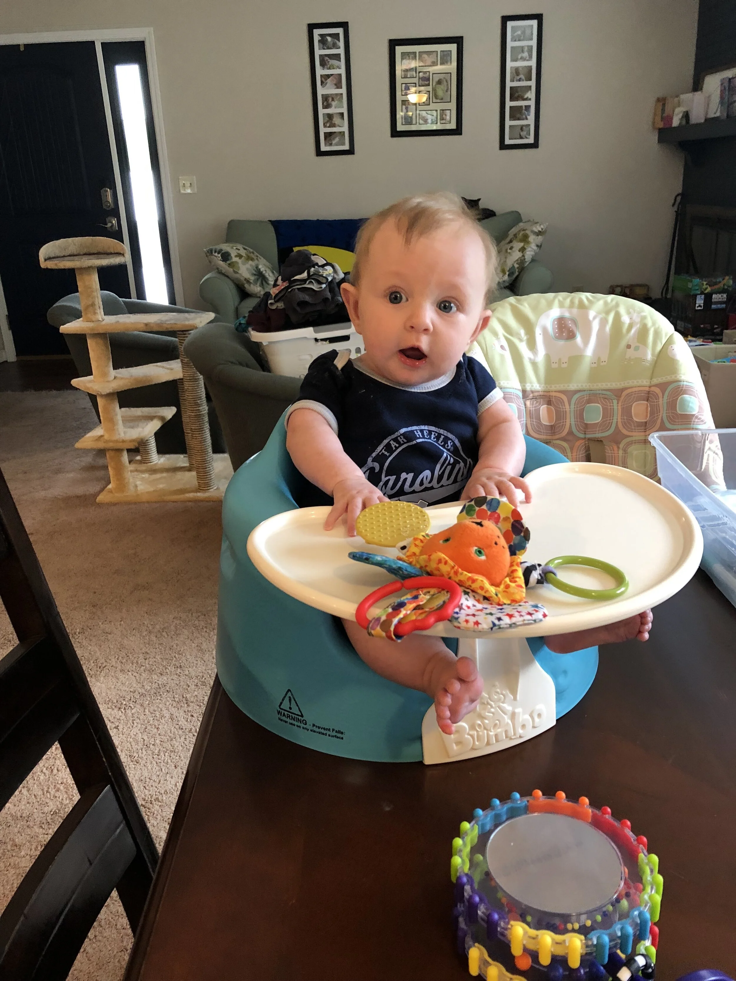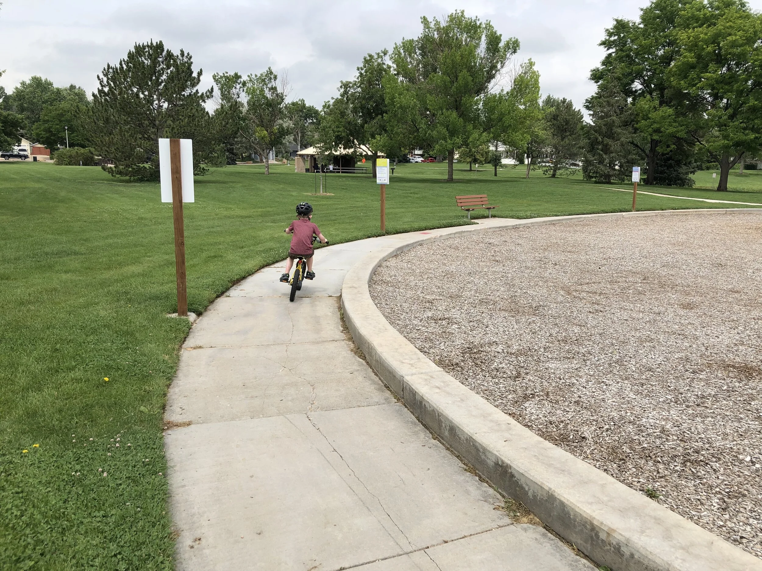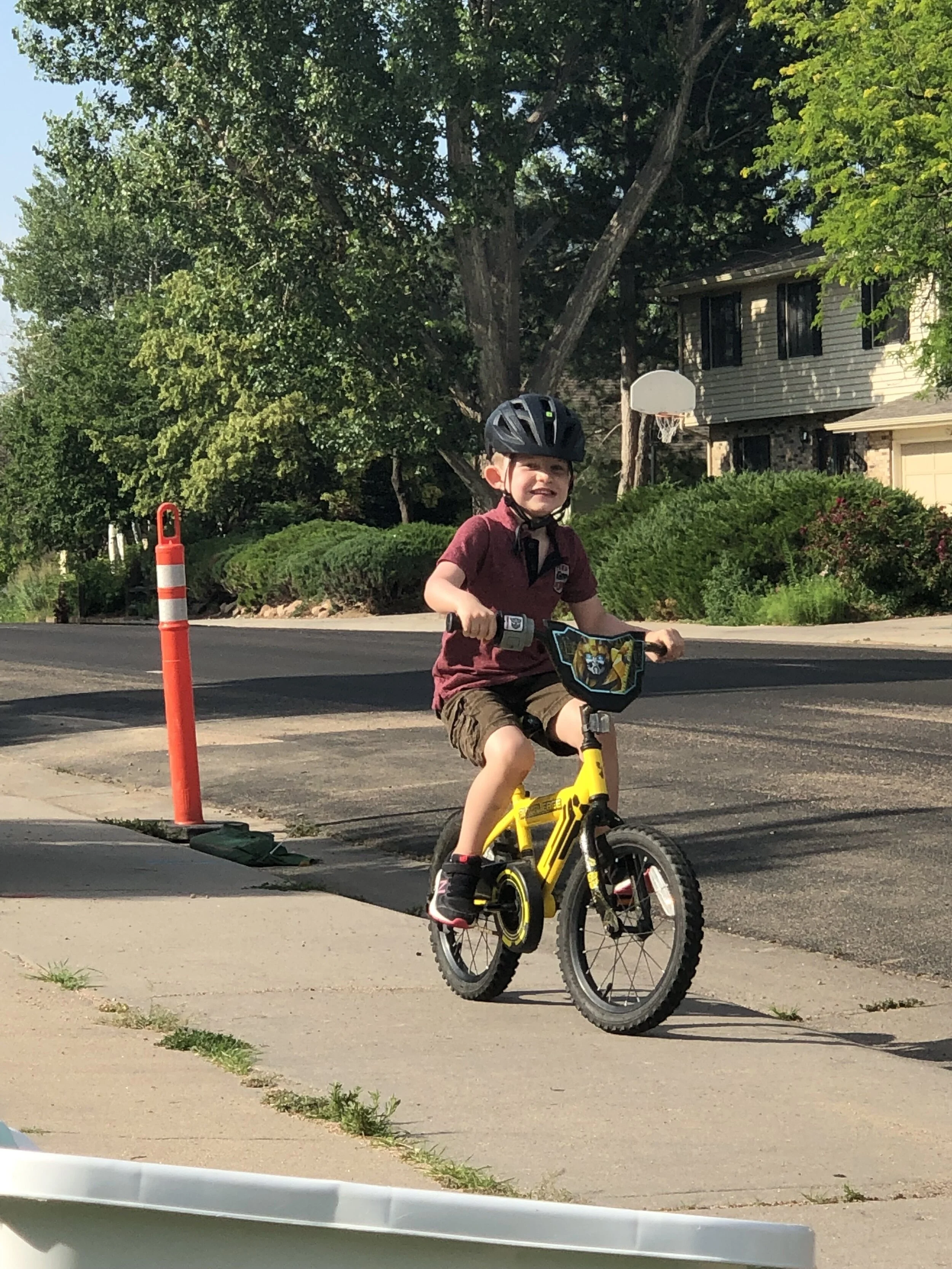 All that awesome bike riding took a little turn. Too fast down the hill in our park, not real confident using the pedal brakes yet, dragged his toes to slow himself down, & went right over the handlebars. Poor dad was on his own bike, 20 feet behind, watching it happen. Landed right on his chin, popped up immediately screaming & crying. First trip to the ER (pretty sure it won’t be the last). Total damage: 4 stitches in chin, chipped tooth, significant bites on both sides of tongue (this was actually the worst part because he couldn’t eat well for days), abrasion & bruise on knee/hip bone/elbow, and small bruise on forehead from helmet. The helmet definitely did it’s job - small scratches showing where it hit the ground and protected him. The very next day he wanted back on his bike (yay!!) but we had to say no because we needed to replace the helmet. Pretty good story and incredibly strong young man. We’re so proud of him. <3