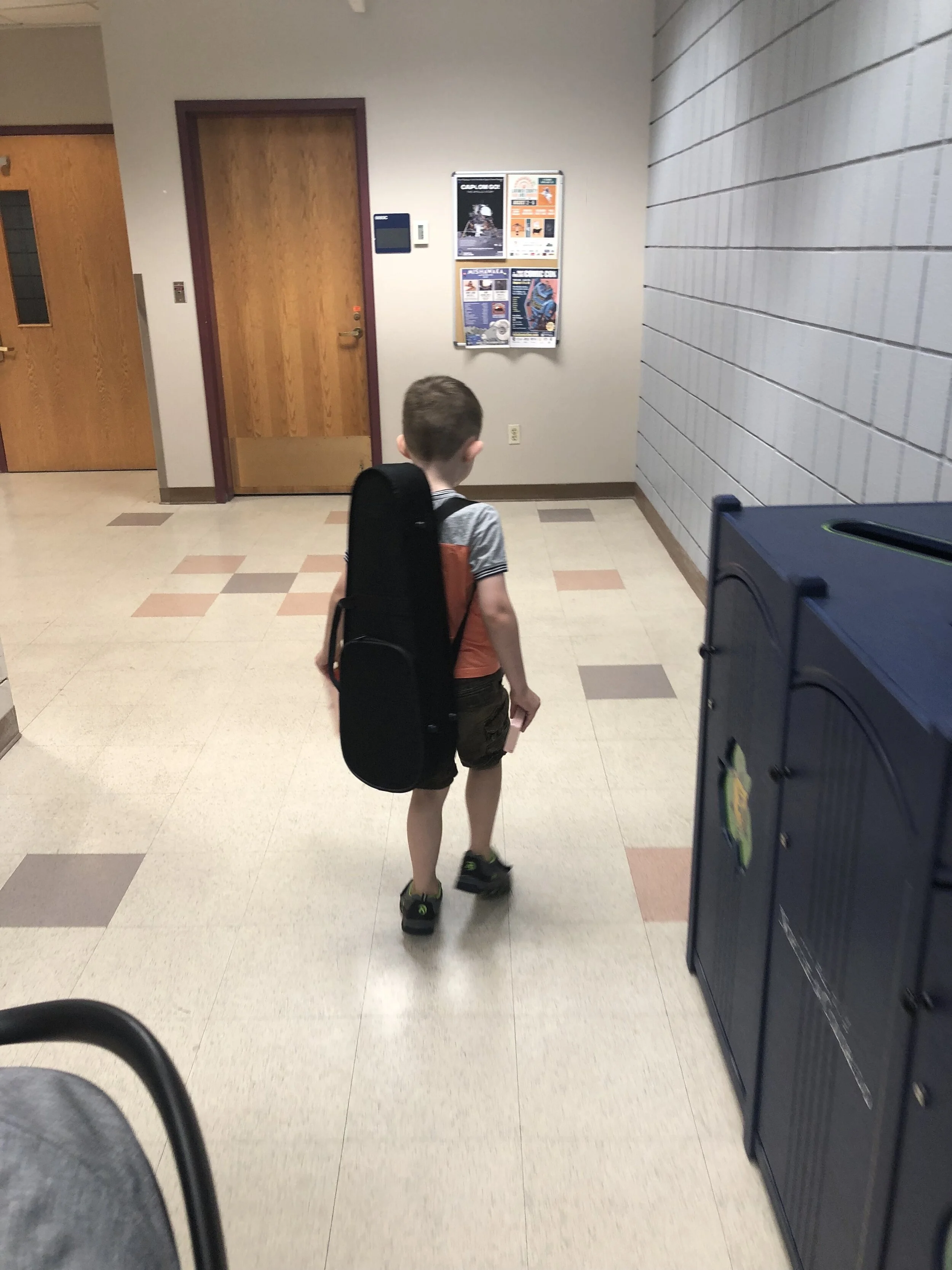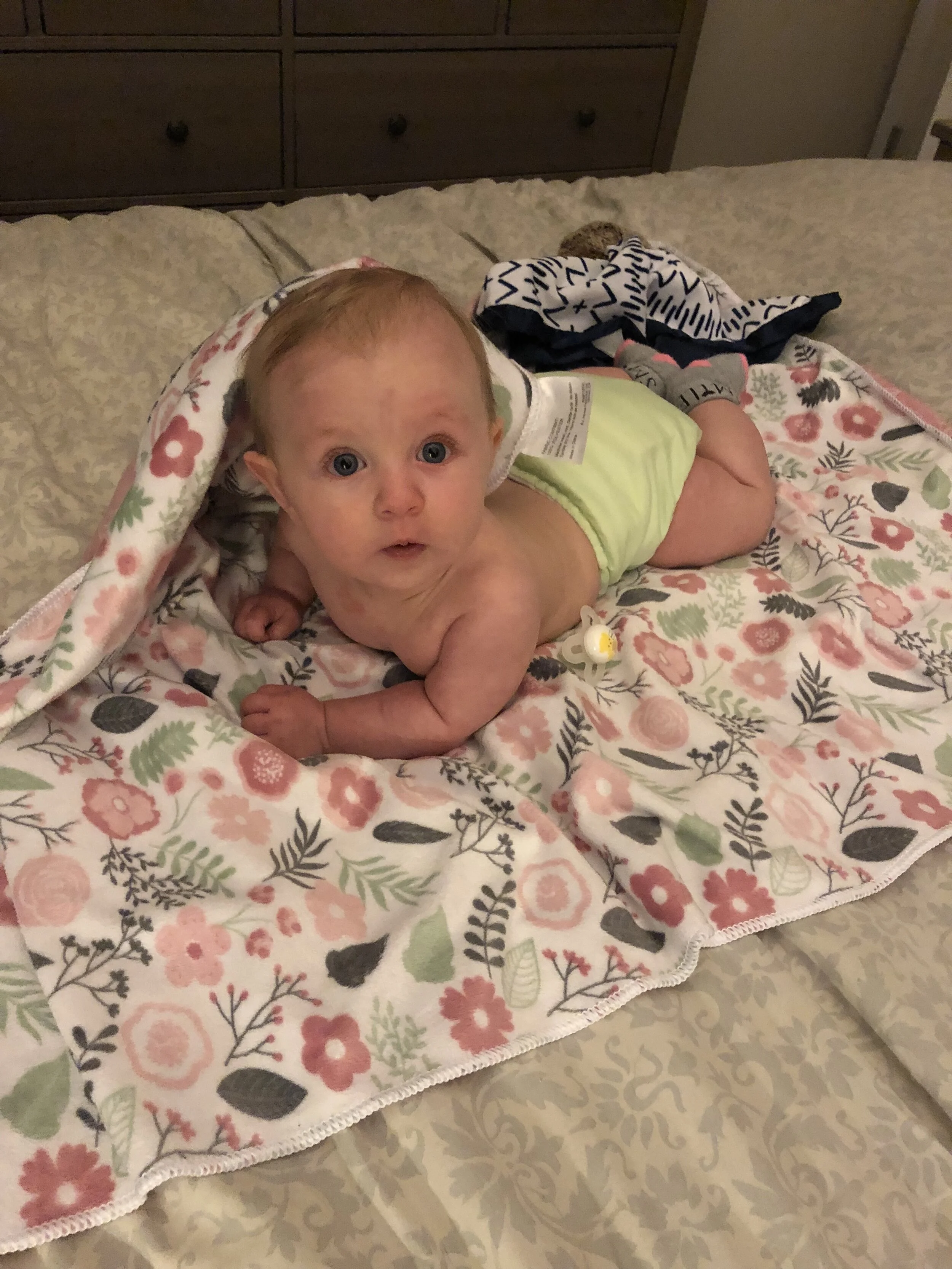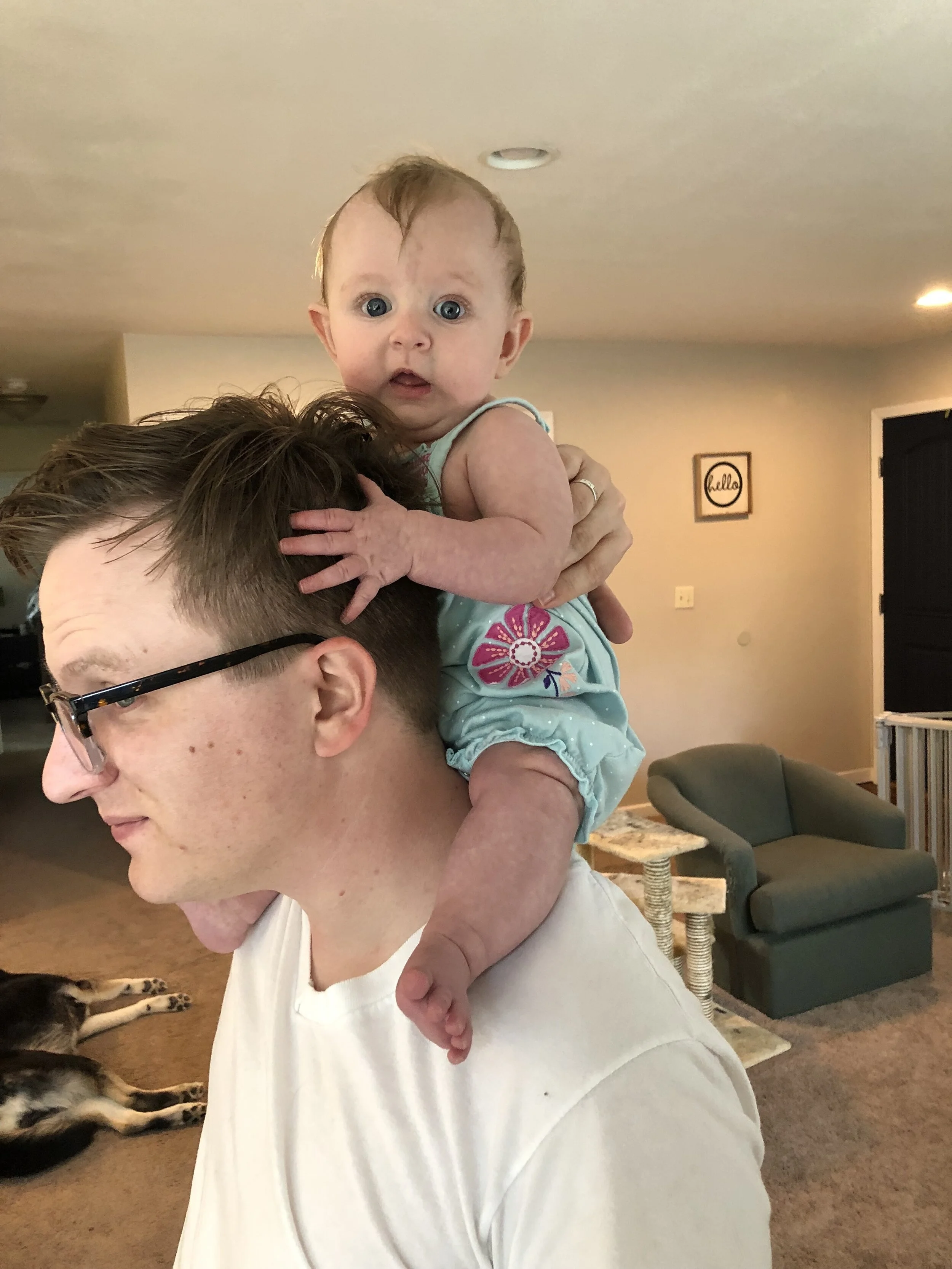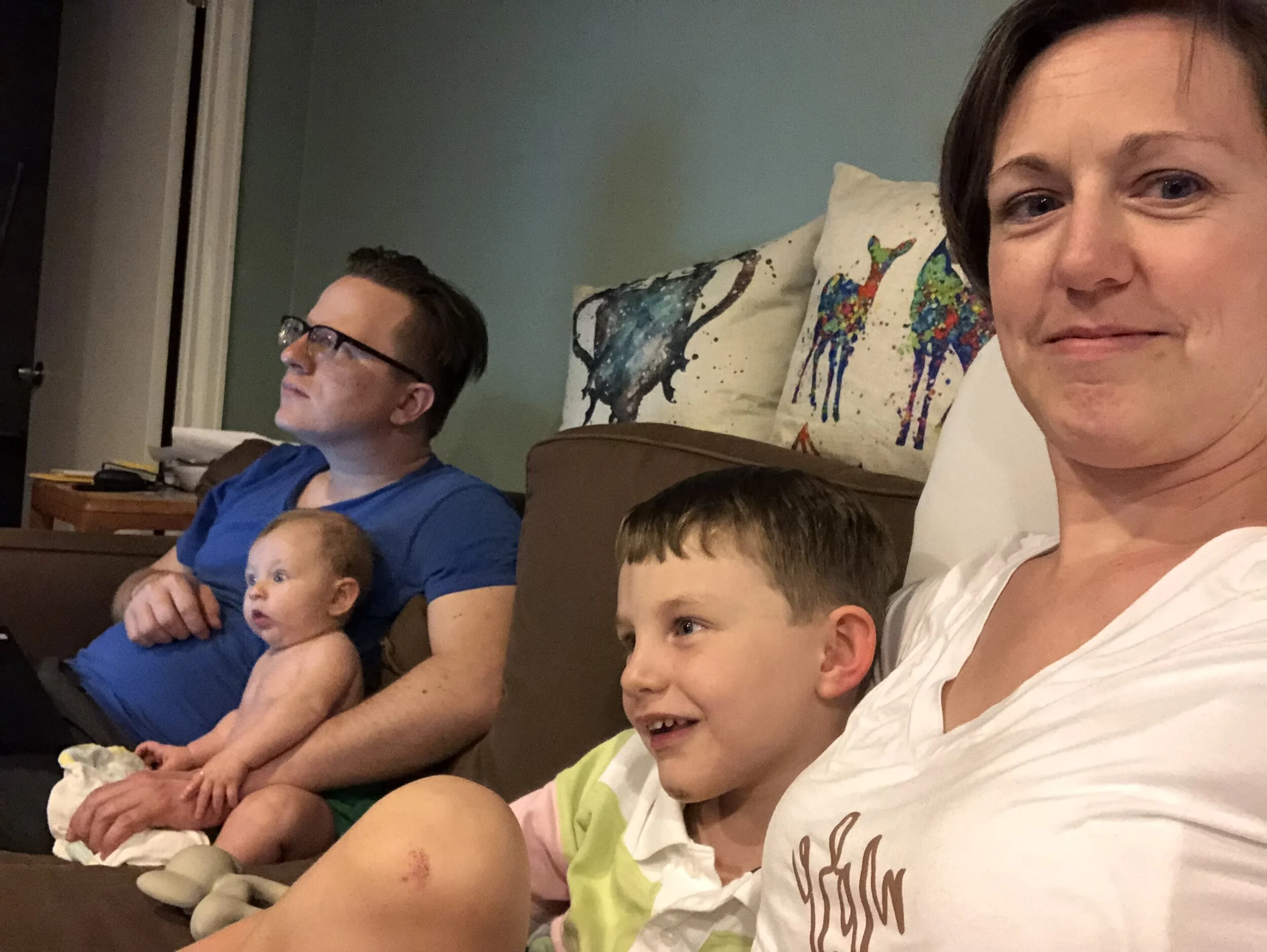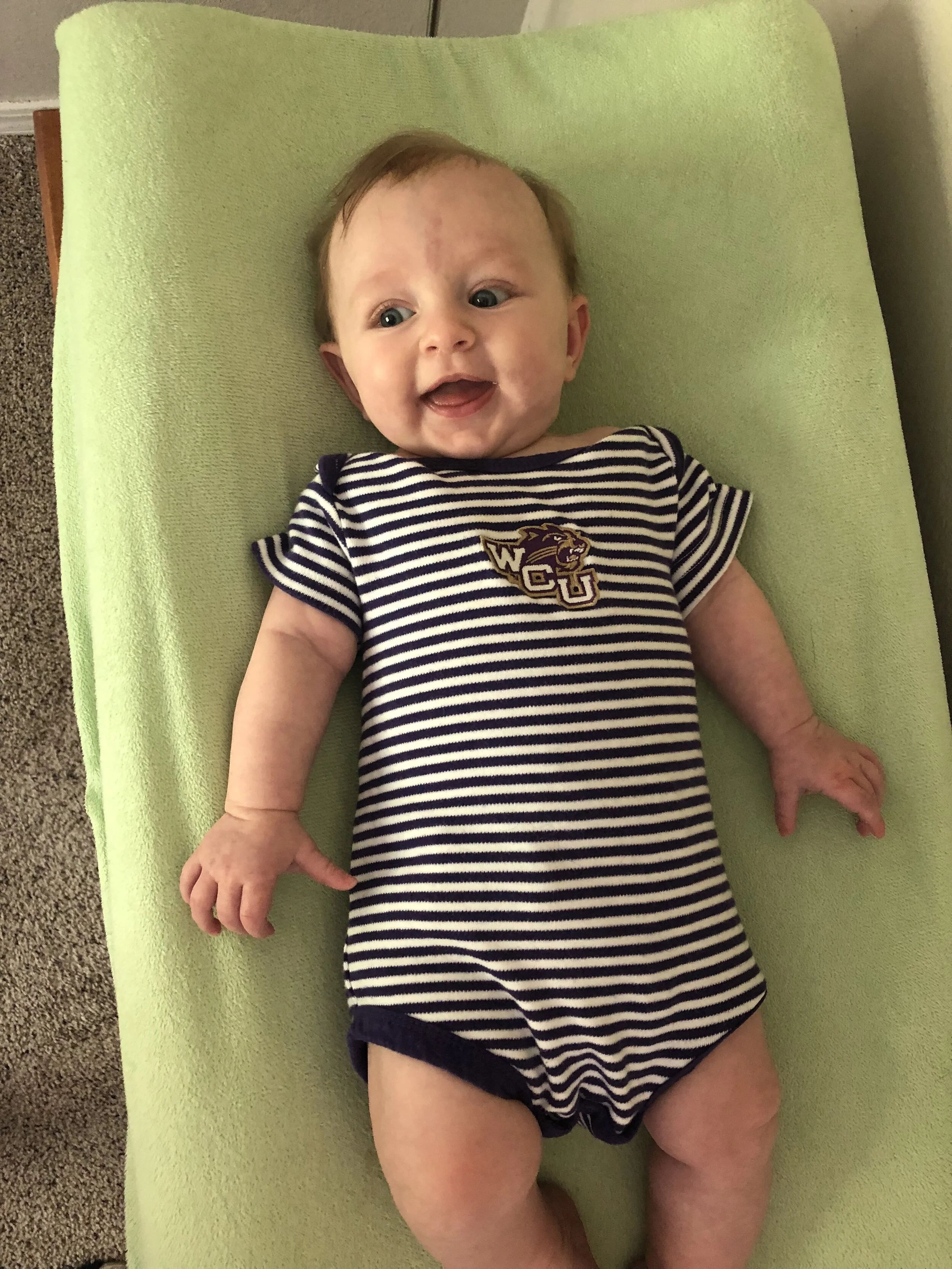All that awesome bike riding took a little turn. Too fast down the hill in our park, not real confident using the pedal brakes yet, dragged his toes to slow himself down, & went right over the handlebars. Poor dad was on his own bike, 20 feet behind, watching it happen. Landed right on his chin, popped up immediately screaming & crying. First trip to the ER (pretty sure it won’t be the last). Total damage: 4 stitches in chin, chipped tooth, significant bites on both sides of tongue (this was actually the worst part because he couldn’t eat well for days), abrasion & bruise on knee/hip bone/elbow, and small bruise on forehead from helmet. The helmet definitely did it’s job - small scratches showing where it hit the ground and protected him. The very next day he wanted back on his bike (yay!!) but we had to say no because we needed to replace the helmet. Pretty good story and incredibly strong young man. We’re so proud of him. <3