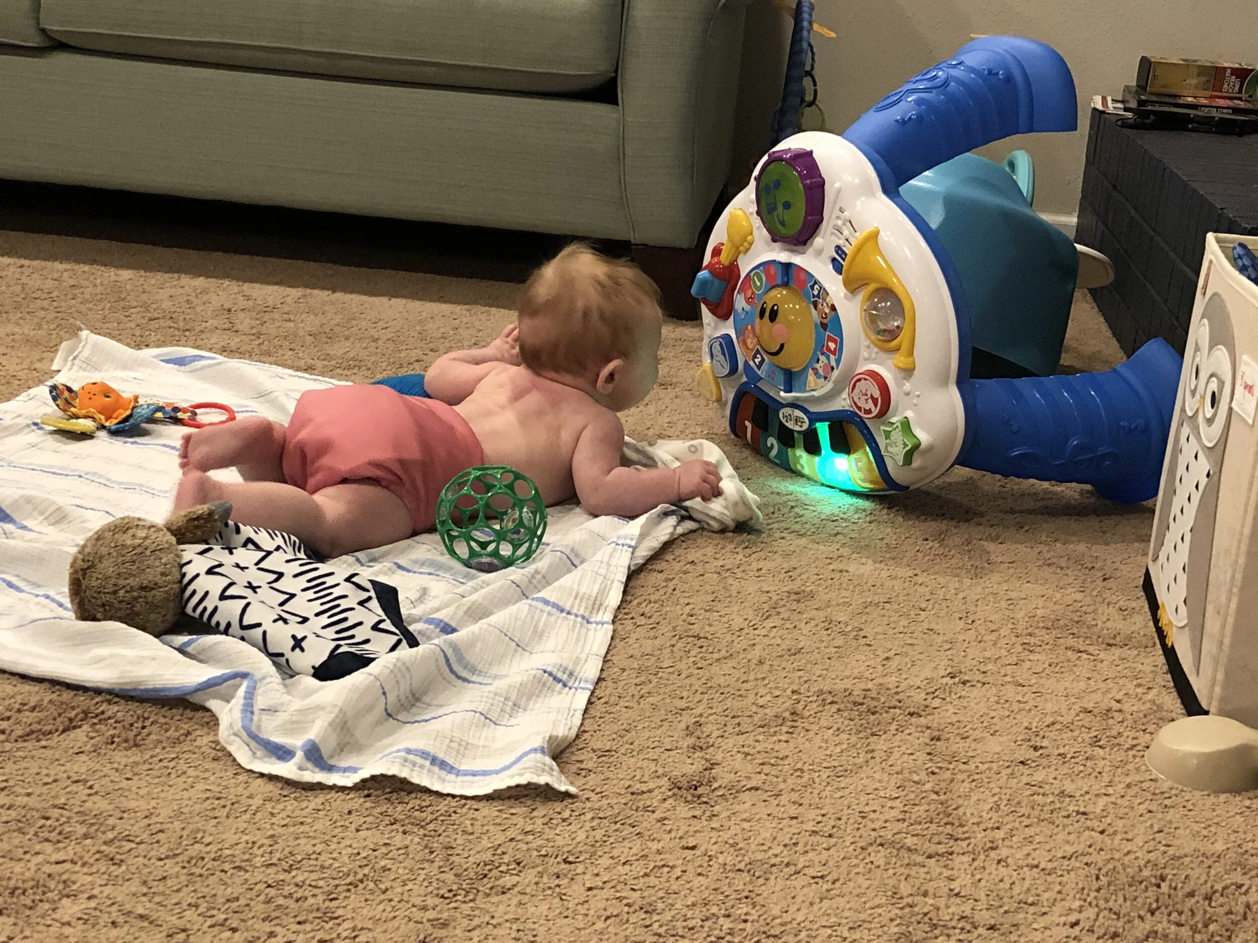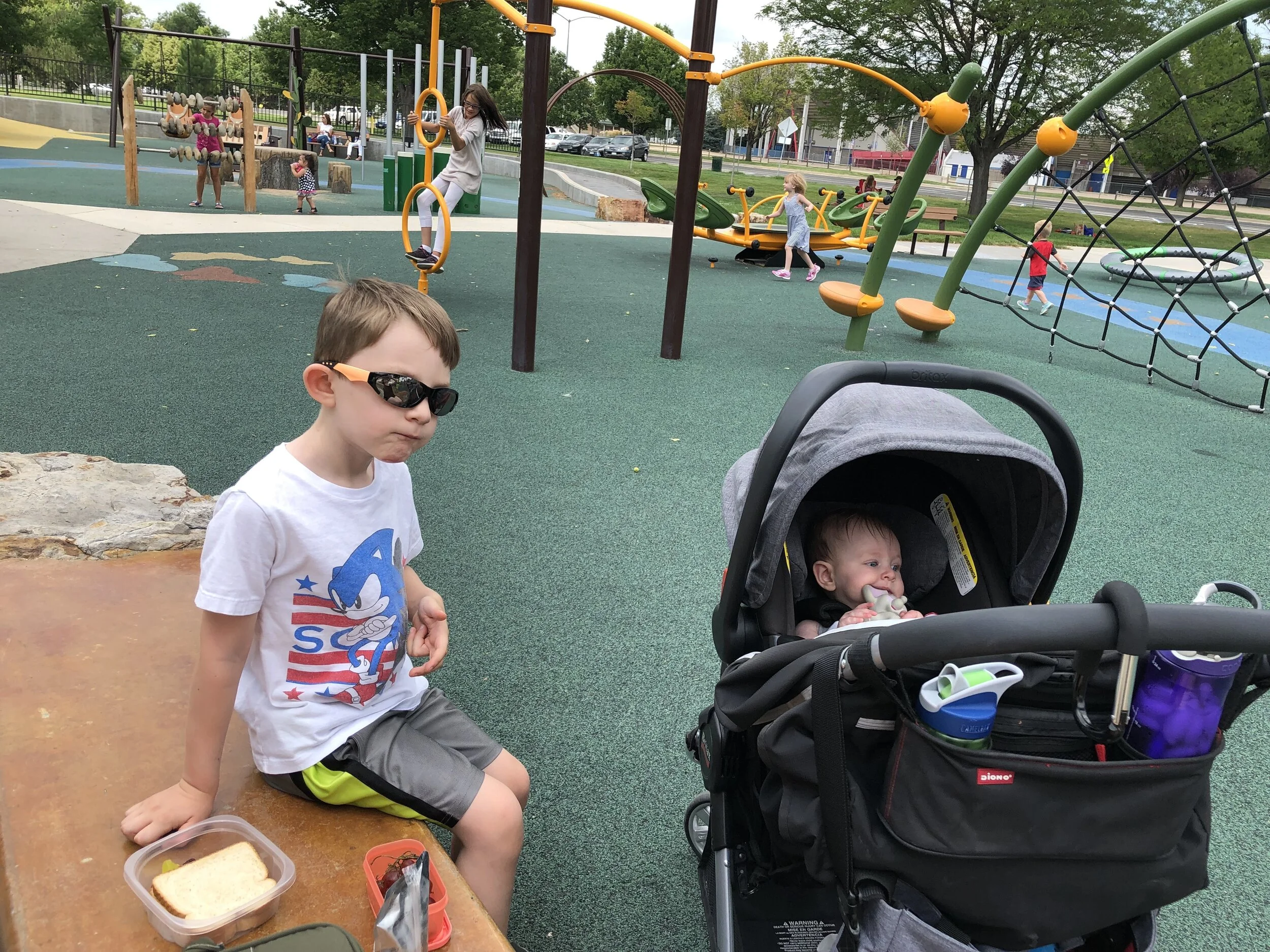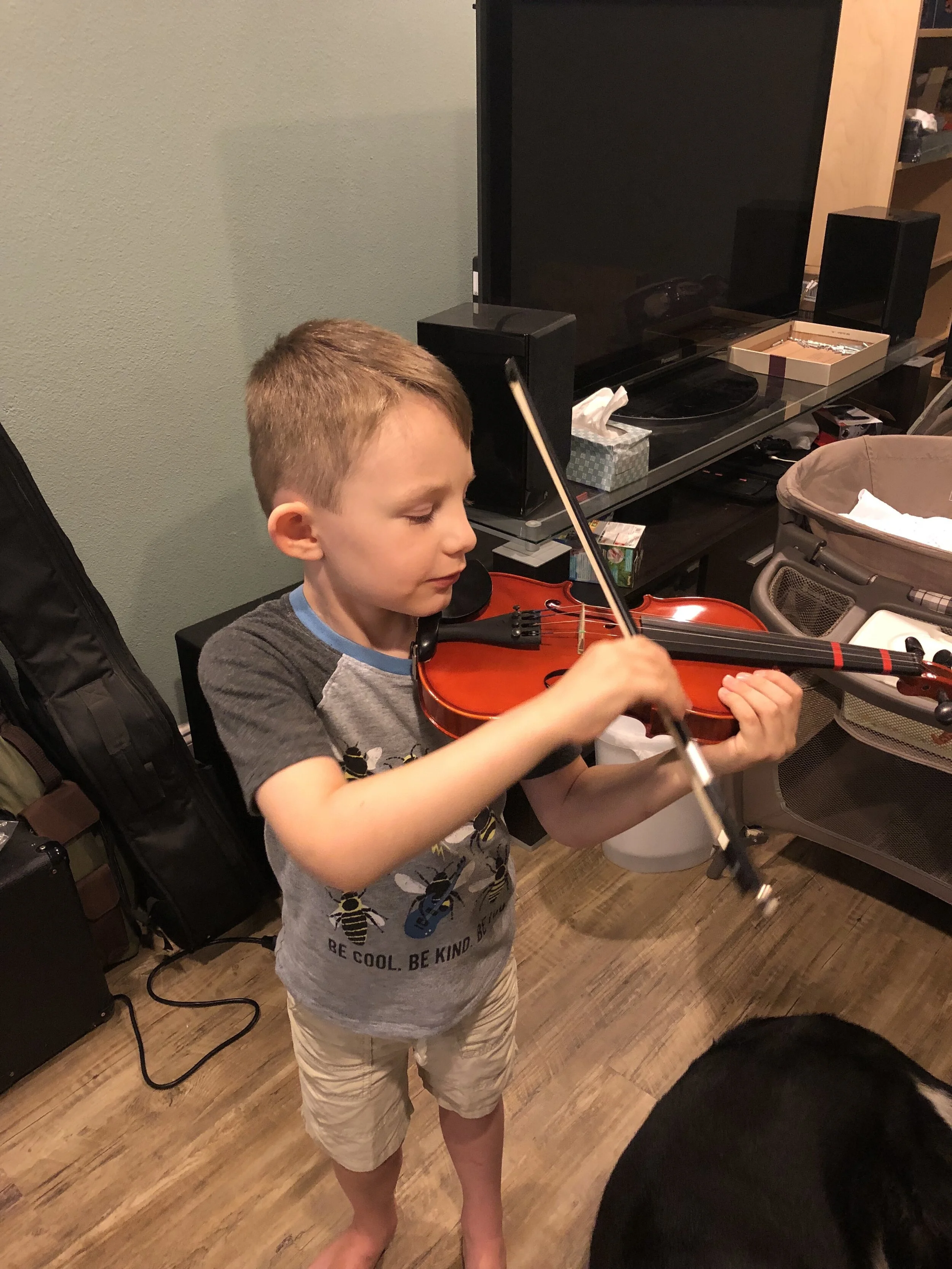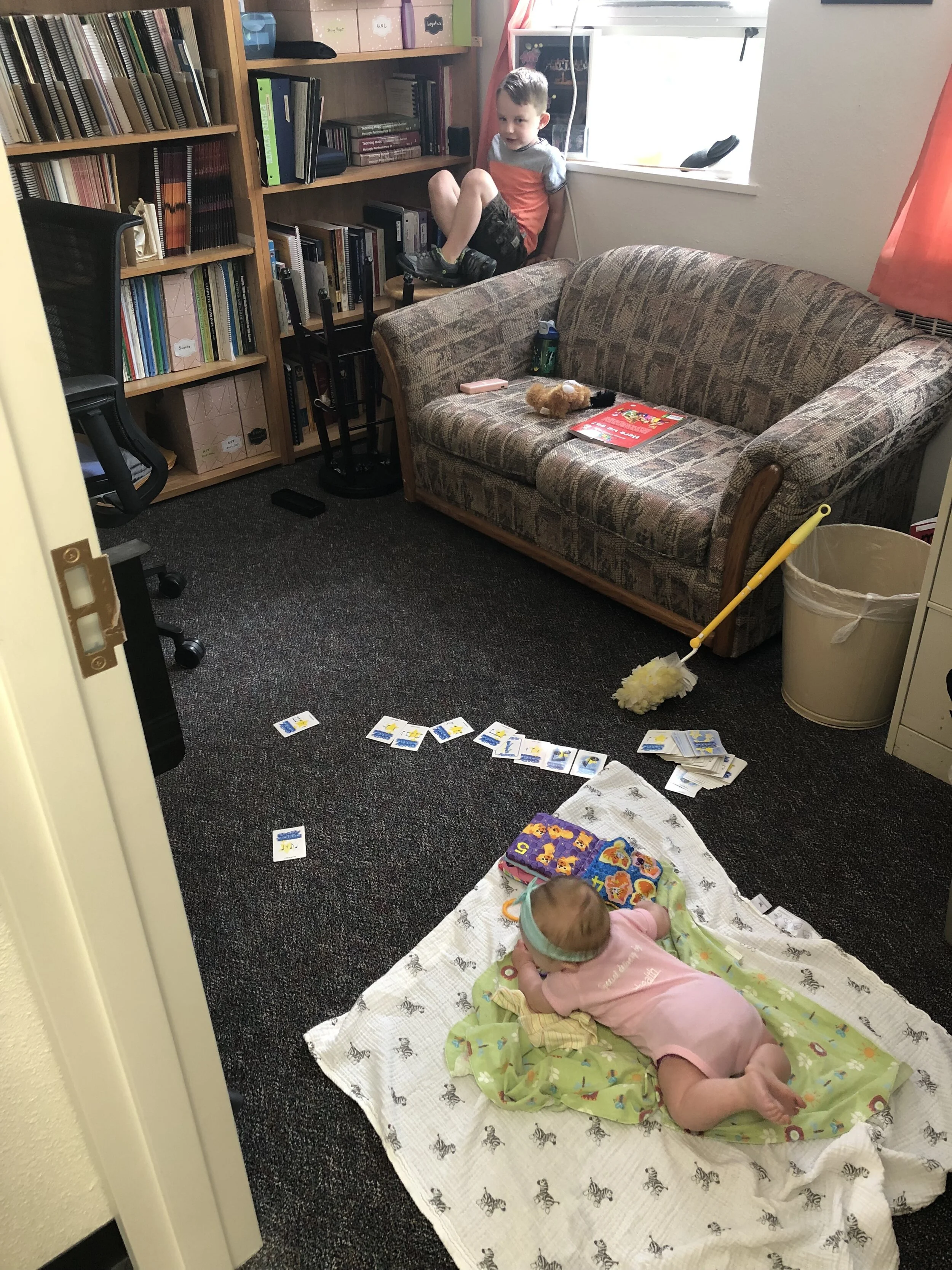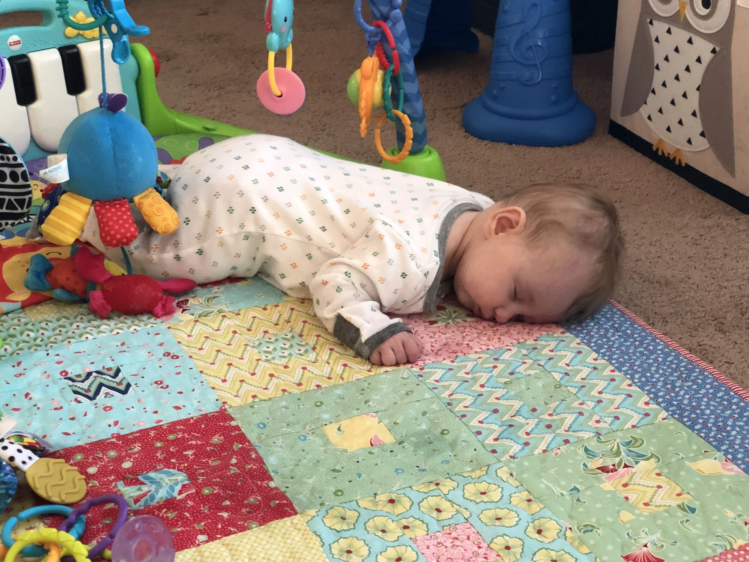 All that awesome bike riding took a little turn. Too fast down the hill in our park, not real confident using the pedal brakes yet, dragged his toes to slow himself down, & went right over the handlebars. Poor dad was on his own bike, 20 feet behind, watching it happen. Landed right on his chin, popped up immediately screaming & crying. First trip to the ER (pretty sure it won’t be the last). Total damage: 4 stitches in chin, chipped tooth, significant bites on both sides of tongue (this was actually the worst part because he couldn’t eat well for days), abrasion & bruise on knee/hip bone/elbow, and small bruise on forehead from helmet. The helmet definitely did it’s job - small scratches showing where it hit the ground and protected him. The very next day he wanted back on his bike (yay!!) but we had to say no because we needed to replace the helmet. Pretty good story and incredibly strong young man. We’re so proud of him. <3