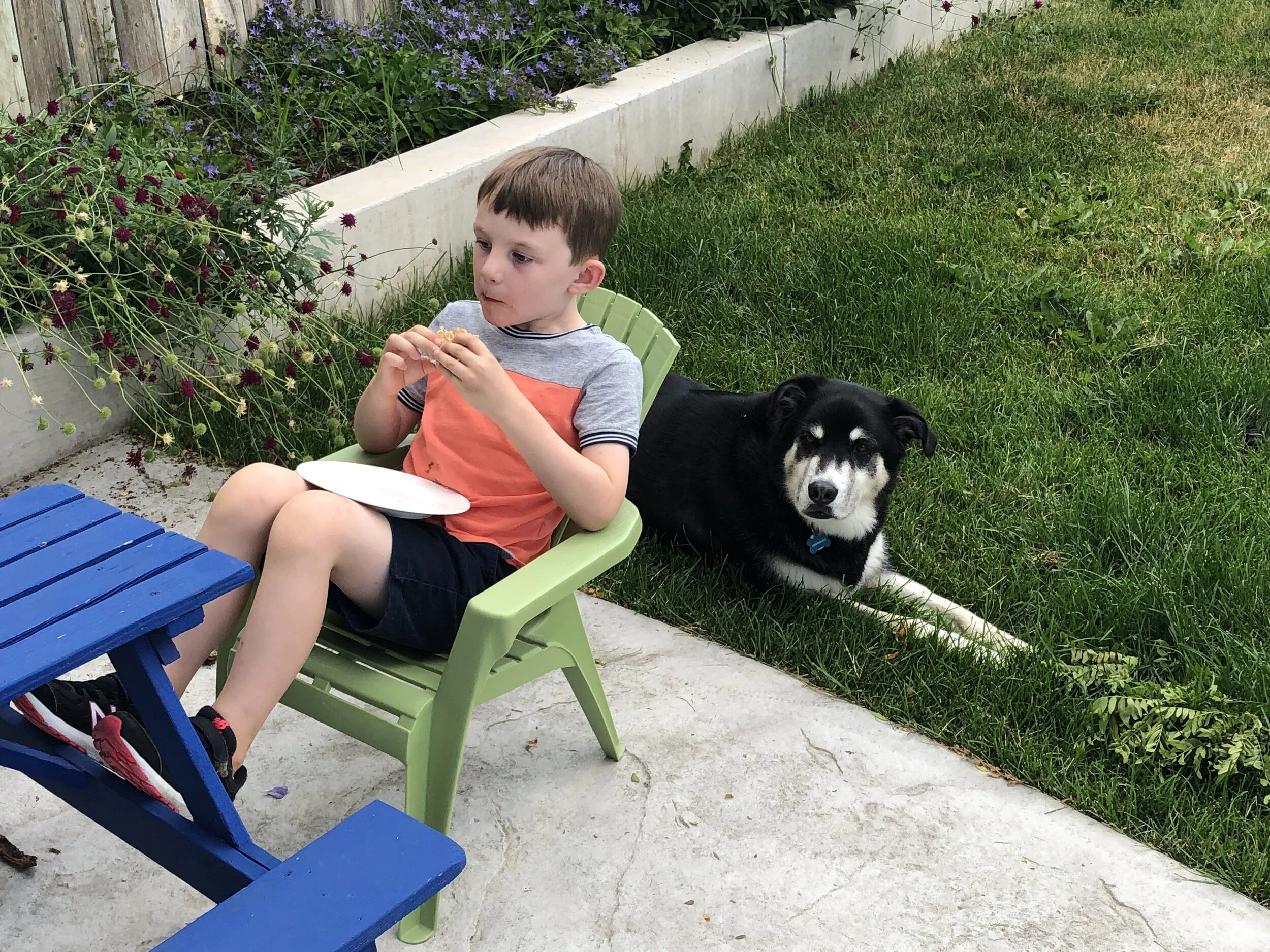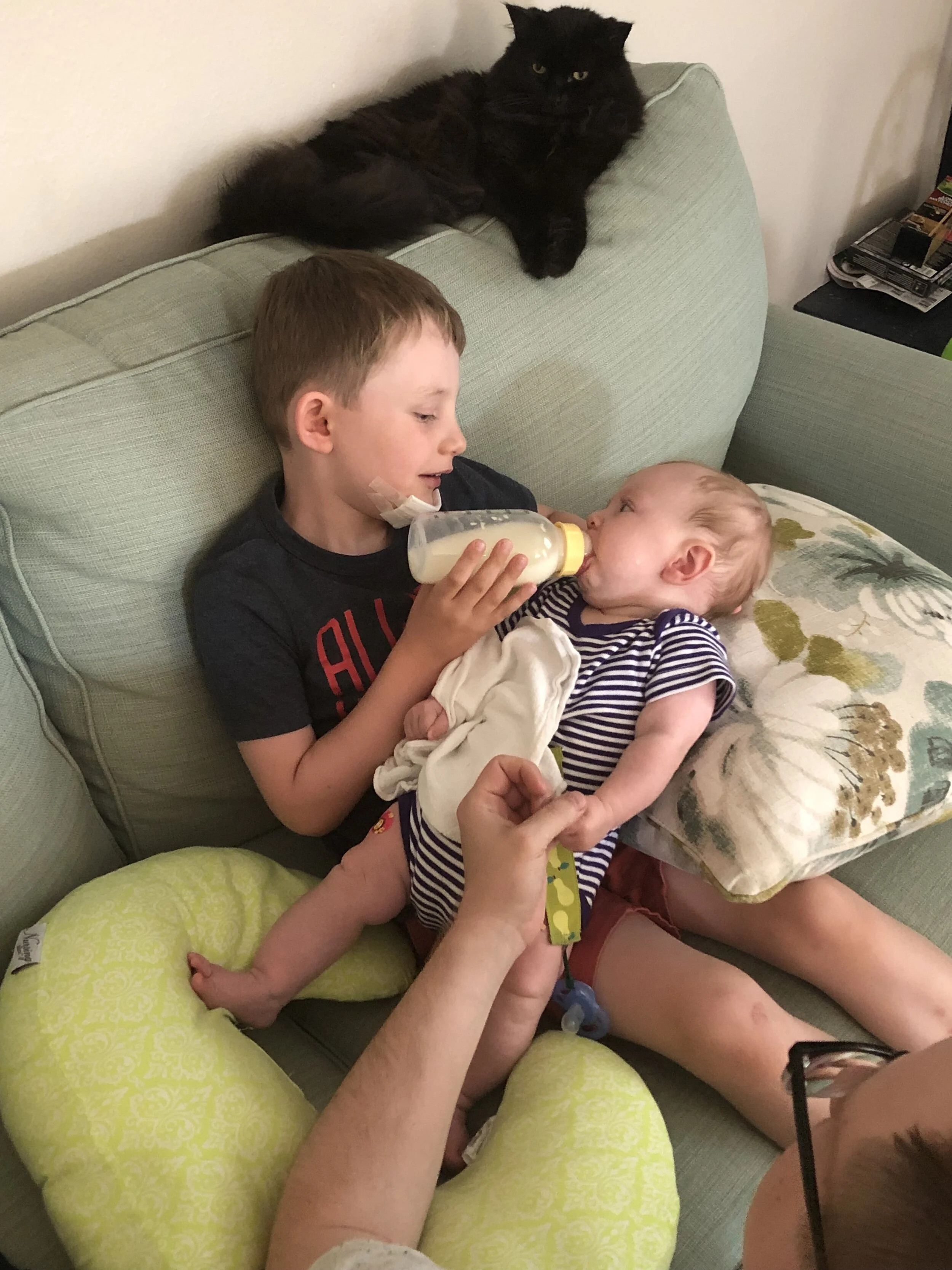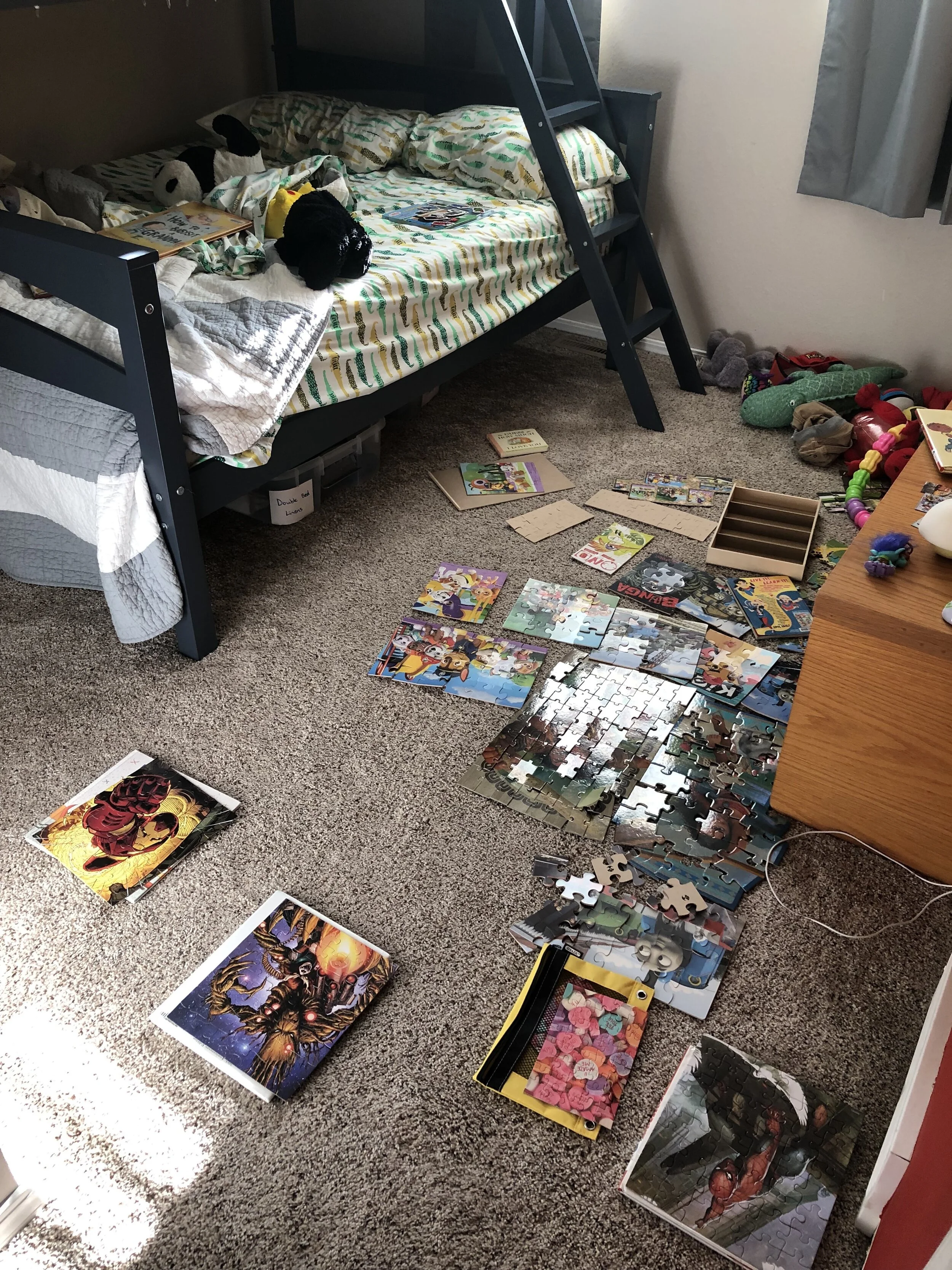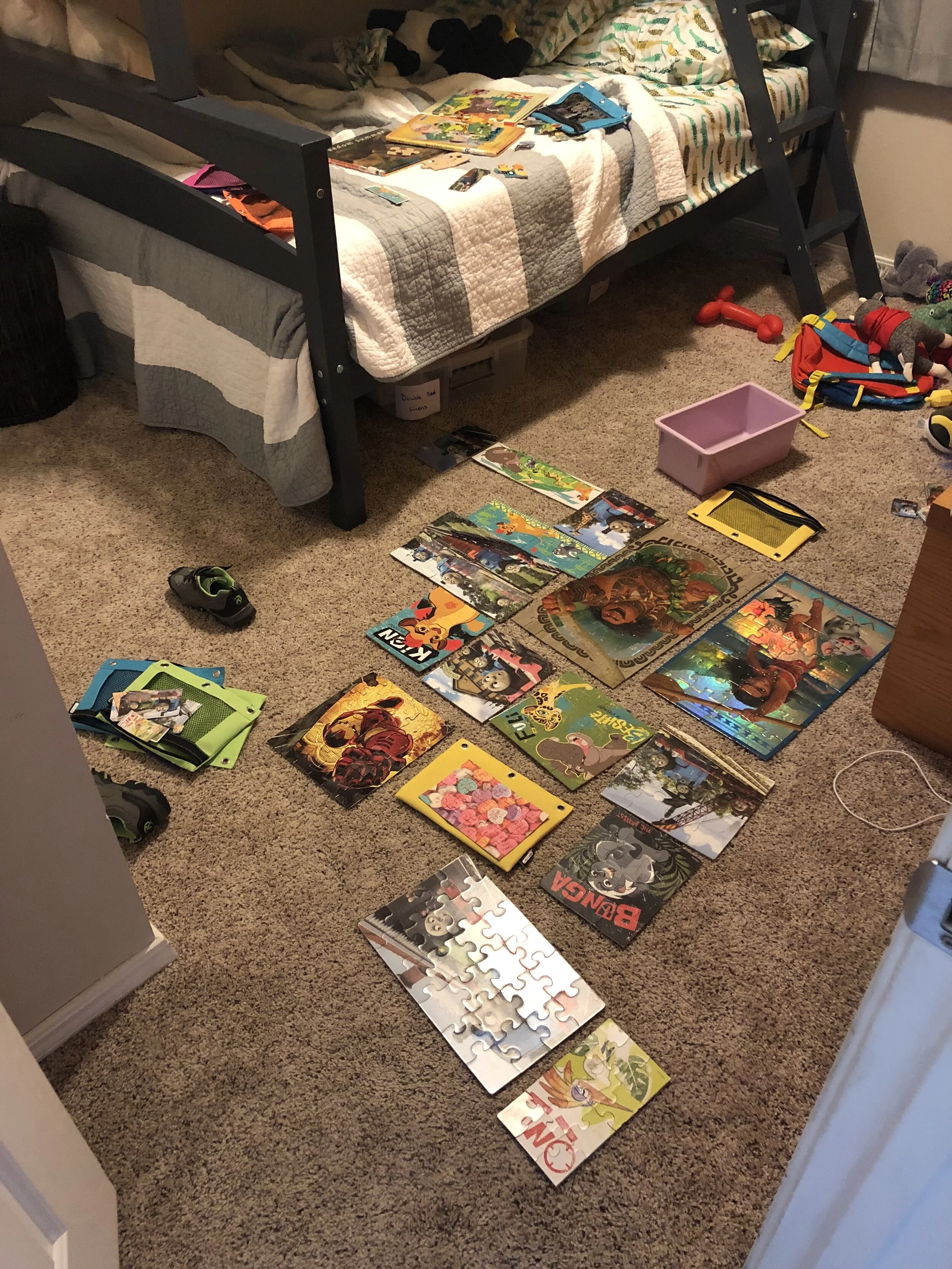 All that awesome bike riding took a little turn. Too fast down the hill in our park, not real confident using the pedal brakes yet, dragged his toes to slow himself down, & went right over the handlebars. Poor dad was on his own bike, 20 feet behind, watching it happen. Landed right on his chin, popped up immediately screaming & crying. First trip to the ER (pretty sure it won’t be the last). Total damage: 4 stitches in chin, chipped tooth, significant bites on both sides of tongue (this was actually the worst part because he couldn’t eat well for days), abrasion & bruise on knee/hip bone/elbow, and small bruise on forehead from helmet. The helmet definitely did it’s job - small scratches showing where it hit the ground and protected him. The very next day he wanted back on his bike (yay!!) but we had to say no because we needed to replace the helmet. Pretty good story and incredibly strong young man. We’re so proud of him. <3