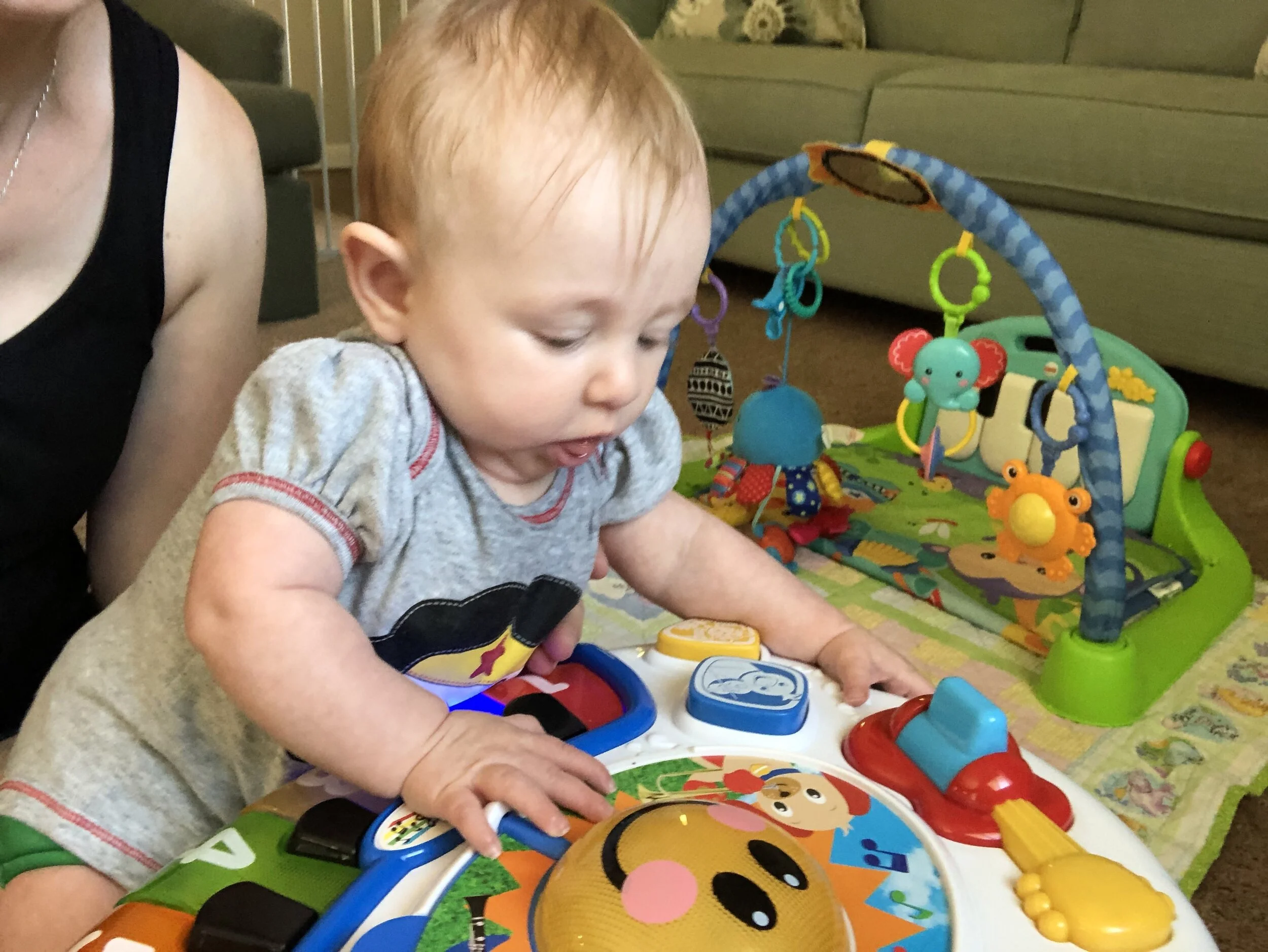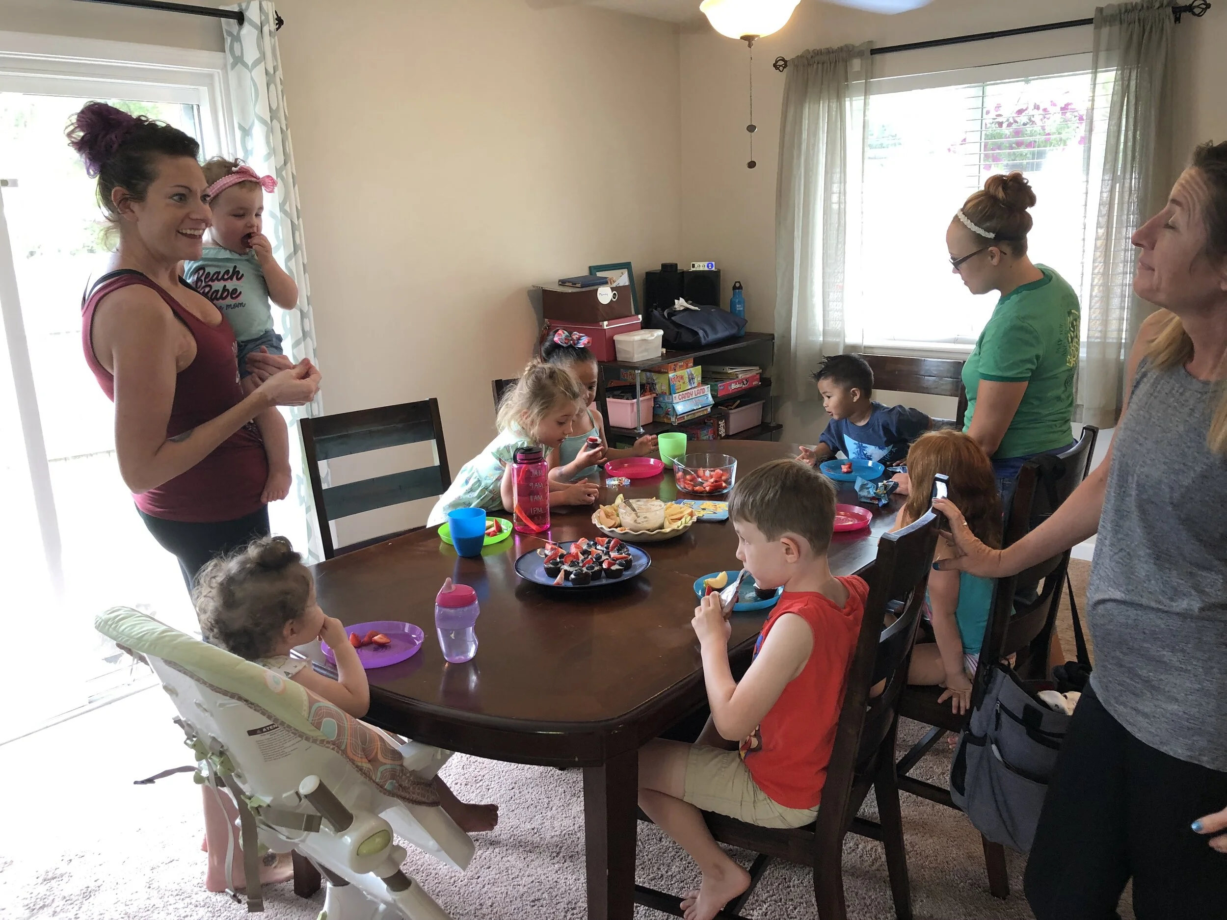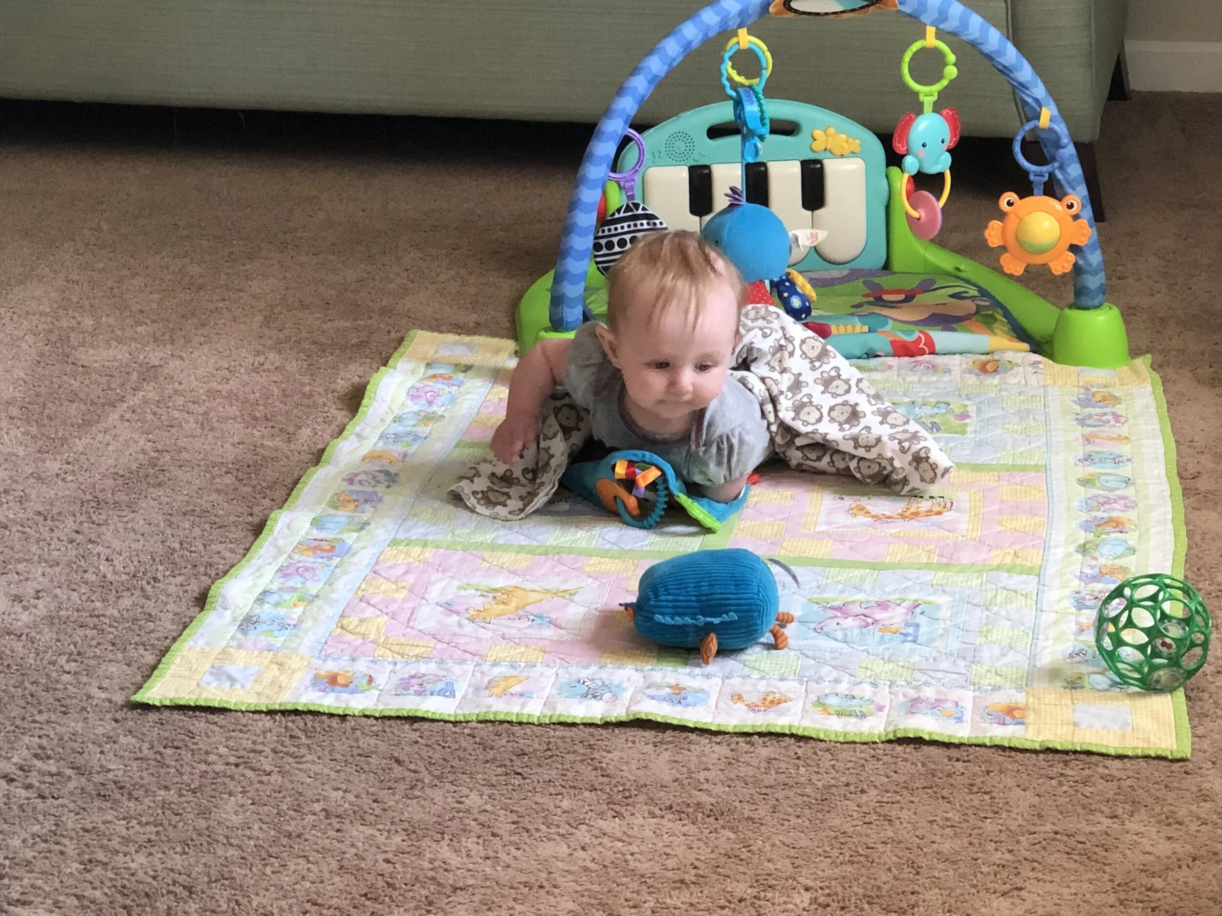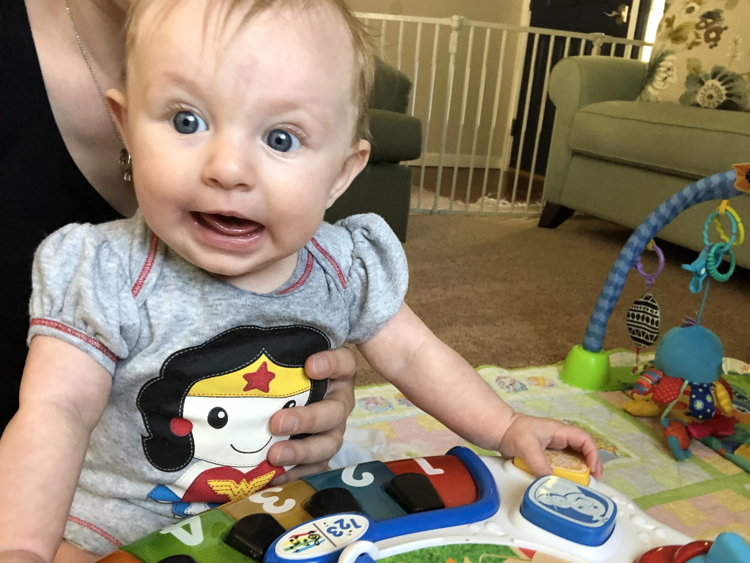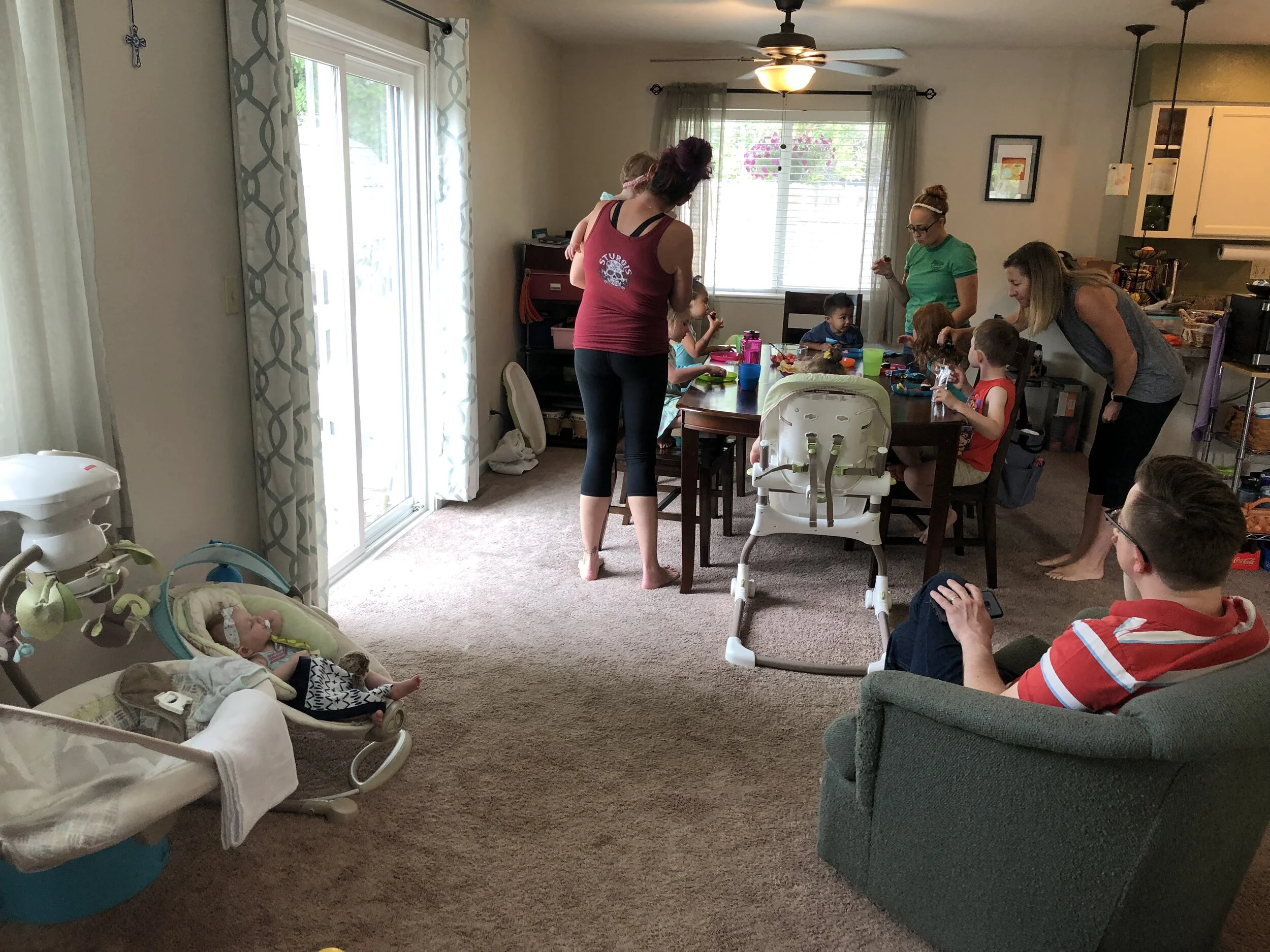 All that awesome bike riding took a little turn. Too fast down the hill in our park, not real confident using the pedal brakes yet, dragged his toes to slow himself down, & went right over the handlebars. Poor dad was on his own bike, 20 feet behind, watching it happen. Landed right on his chin, popped up immediately screaming & crying. First trip to the ER (pretty sure it won’t be the last). Total damage: 4 stitches in chin, chipped tooth, significant bites on both sides of tongue (this was actually the worst part because he couldn’t eat well for days), abrasion & bruise on knee/hip bone/elbow, and small bruise on forehead from helmet. The helmet definitely did it’s job - small scratches showing where it hit the ground and protected him. The very next day he wanted back on his bike (yay!!) but we had to say no because we needed to replace the helmet. Pretty good story and incredibly strong young man. We’re so proud of him. <3