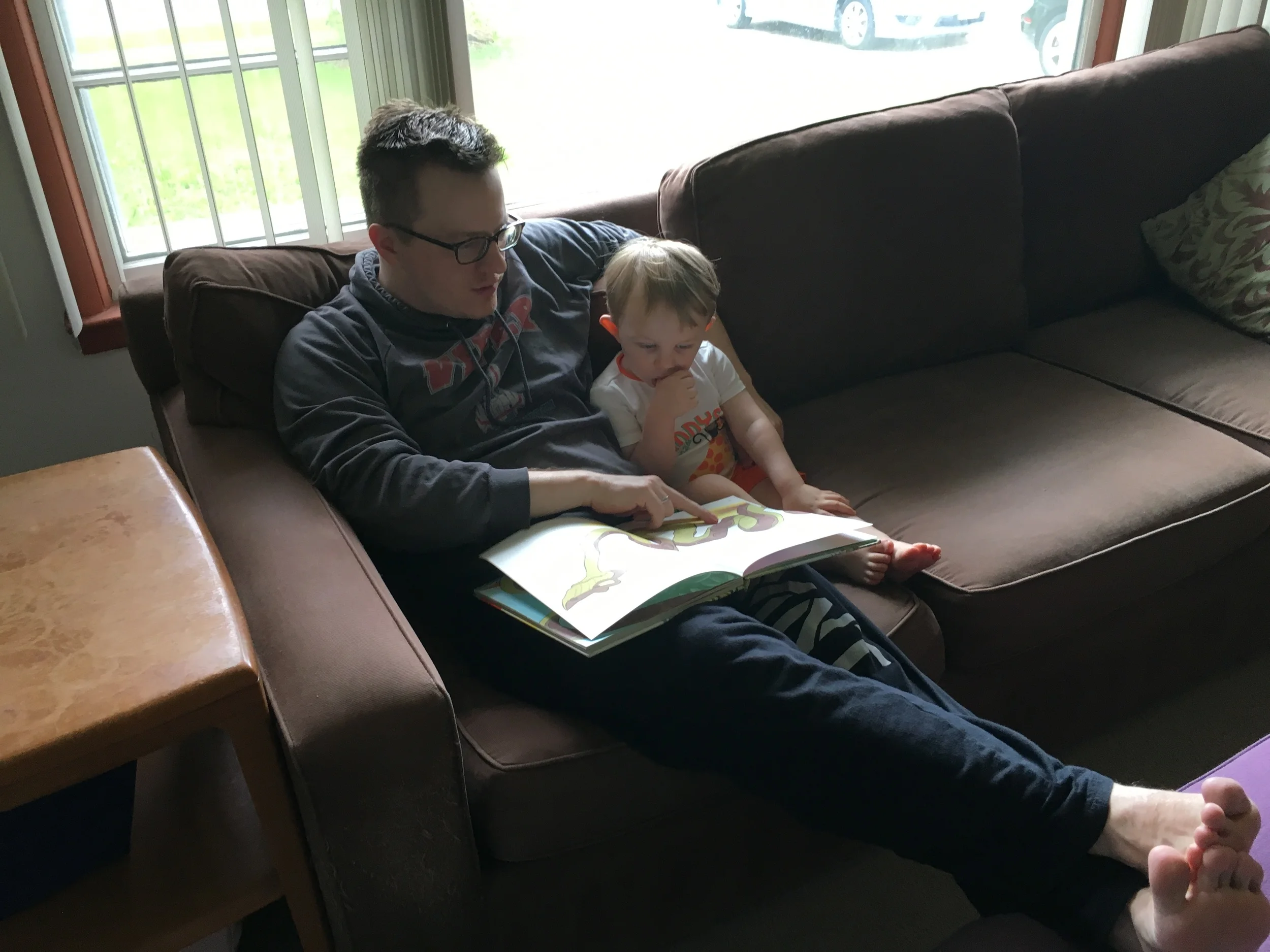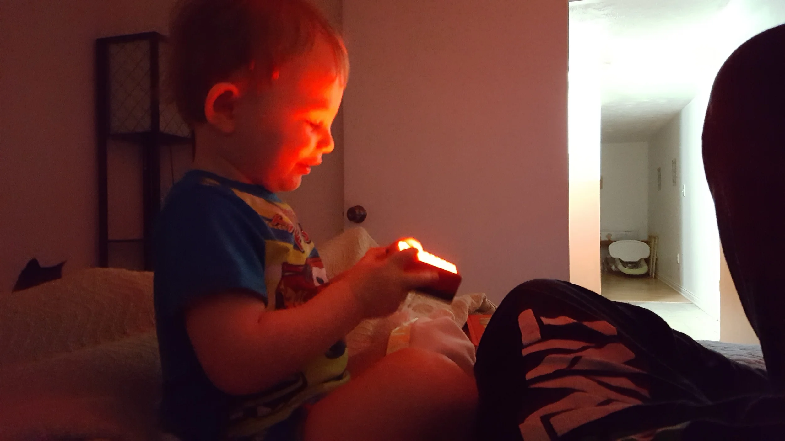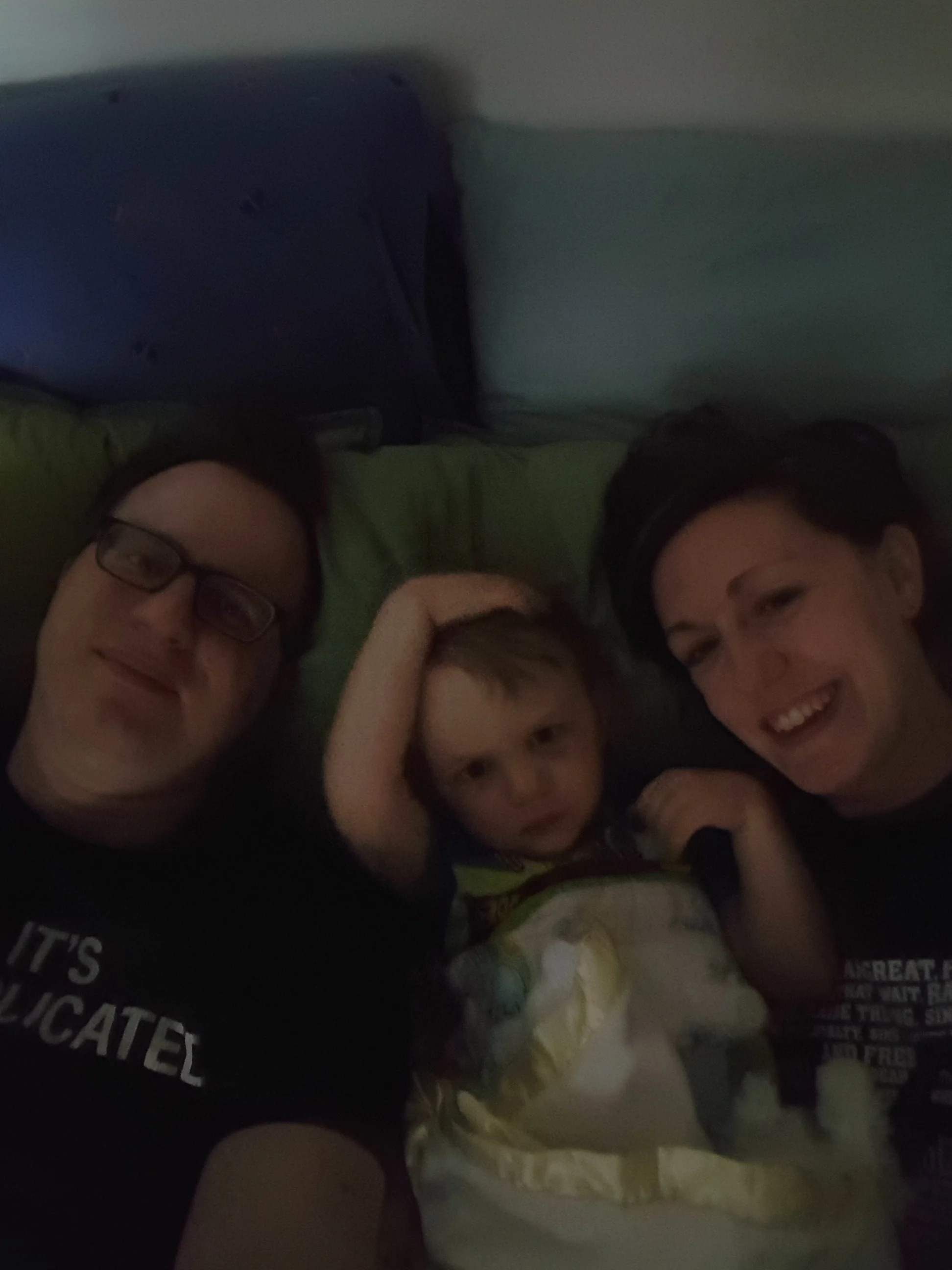 Not a family selfie we had planned on taking. The tornado siren in Muncie went off at about 10:45pm. Cue gathering animals, flashlights, chargers, blankets, and, lastly, waking up a toddler for a pajama party. Thankfully we were all fine. No tornado actually hit, just a storm.