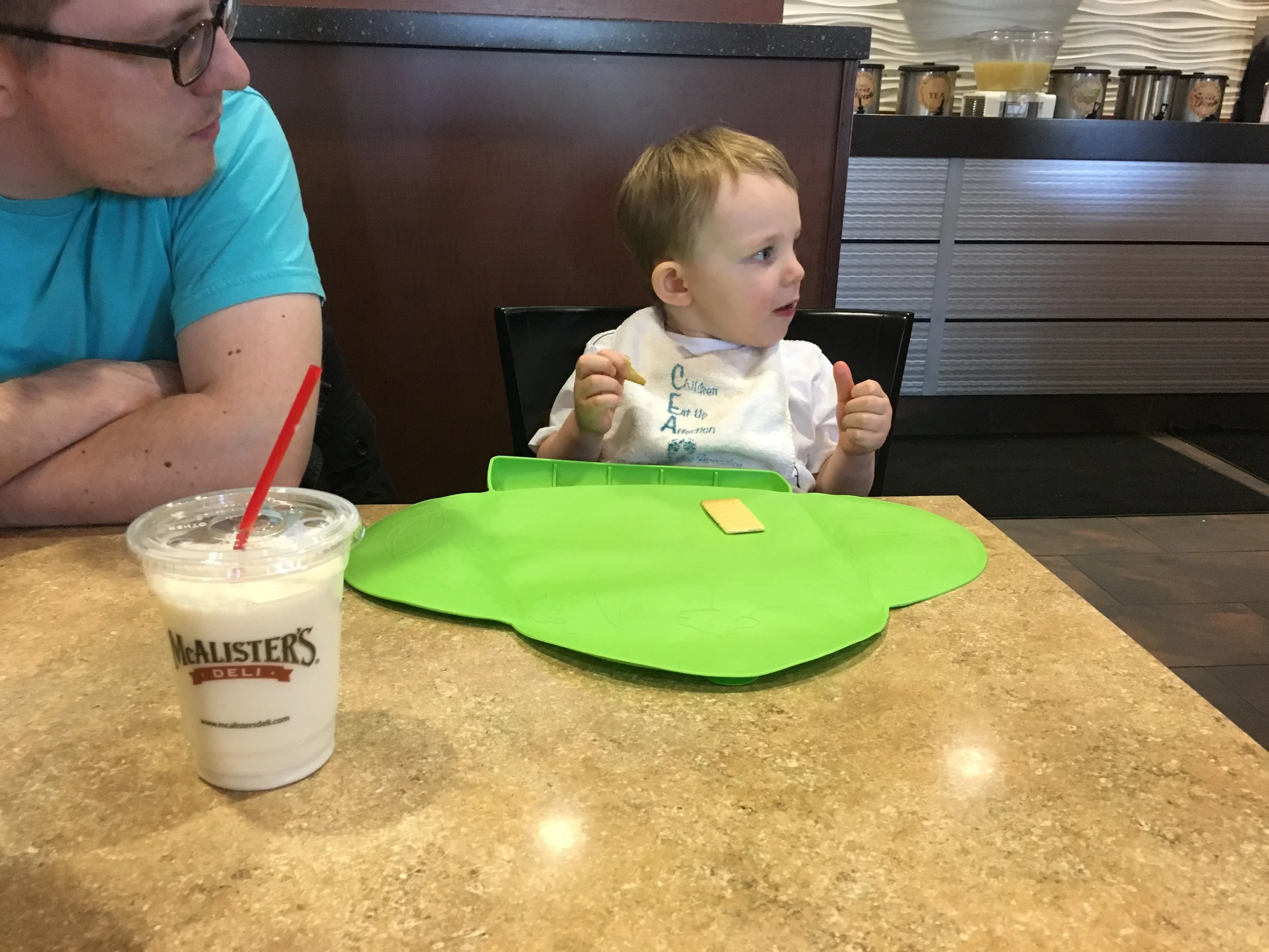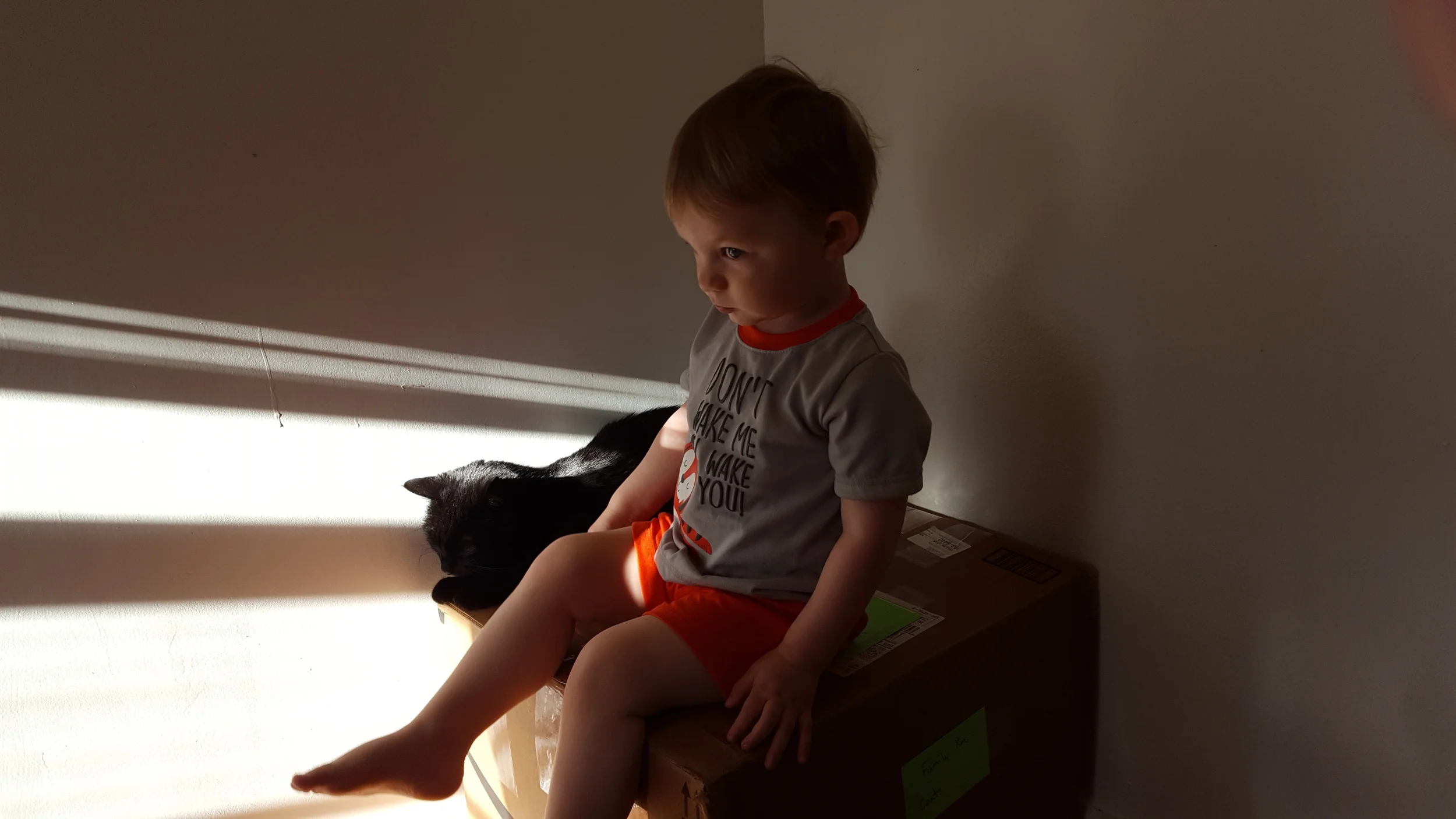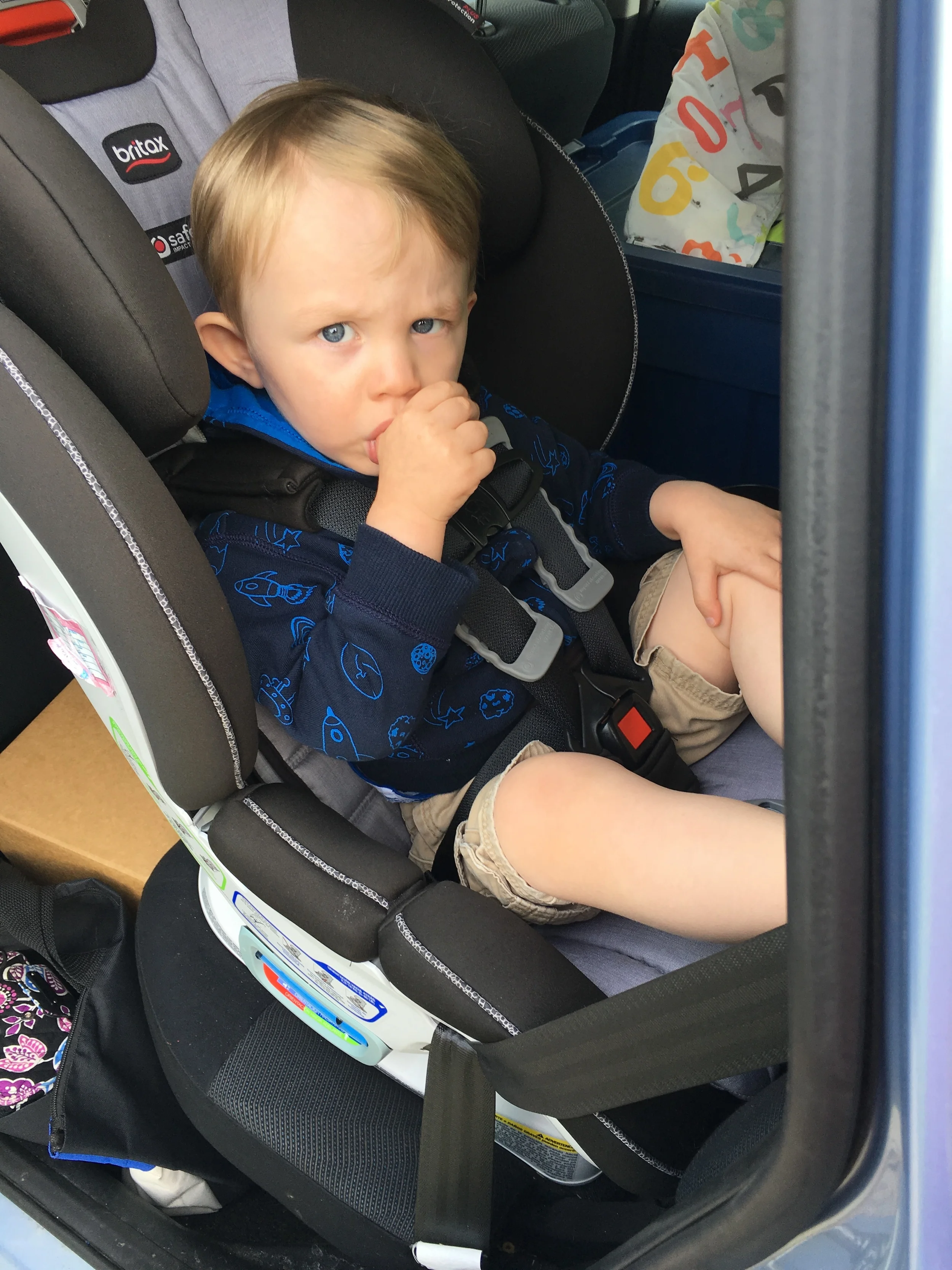Not a family selfie we had planned on taking. The tornado siren in Muncie went off at about 10:45pm. Cue gathering animals, flashlights, chargers, blankets, and, lastly, waking up a toddler for a pajama party. Thankfully we were all fine. No tornado actually hit, just a storm.