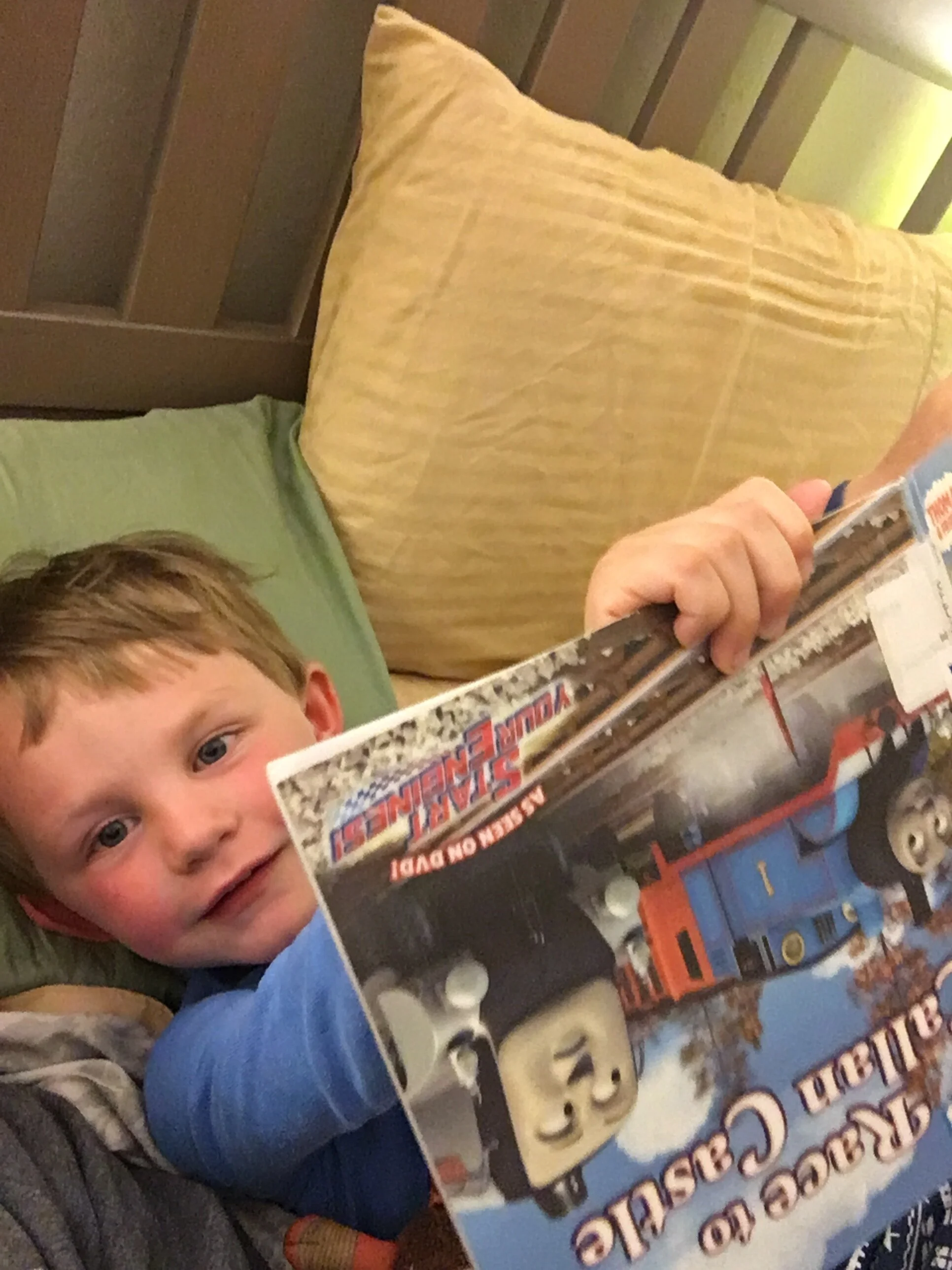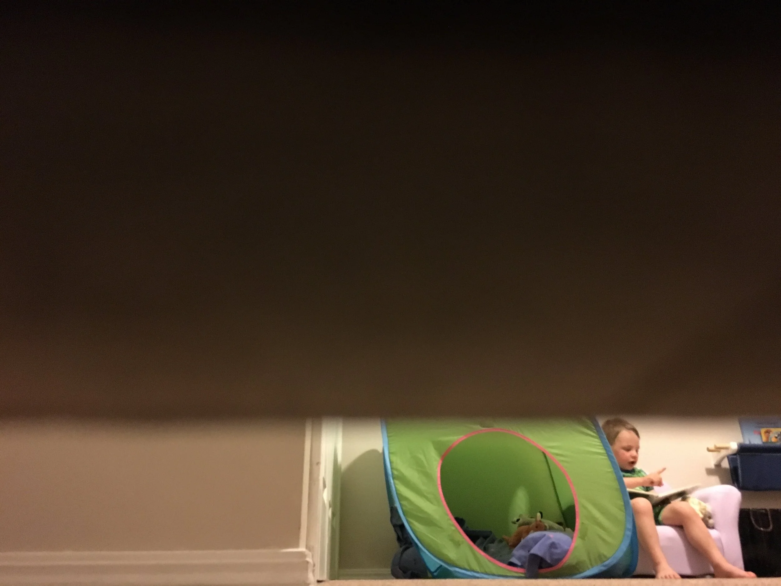 Somewhat strange shot, taken from under his door as I spied on him. It’s supposed to be nap time, but the way he sits up and reads (constantly!) is too sweet to be upset about.