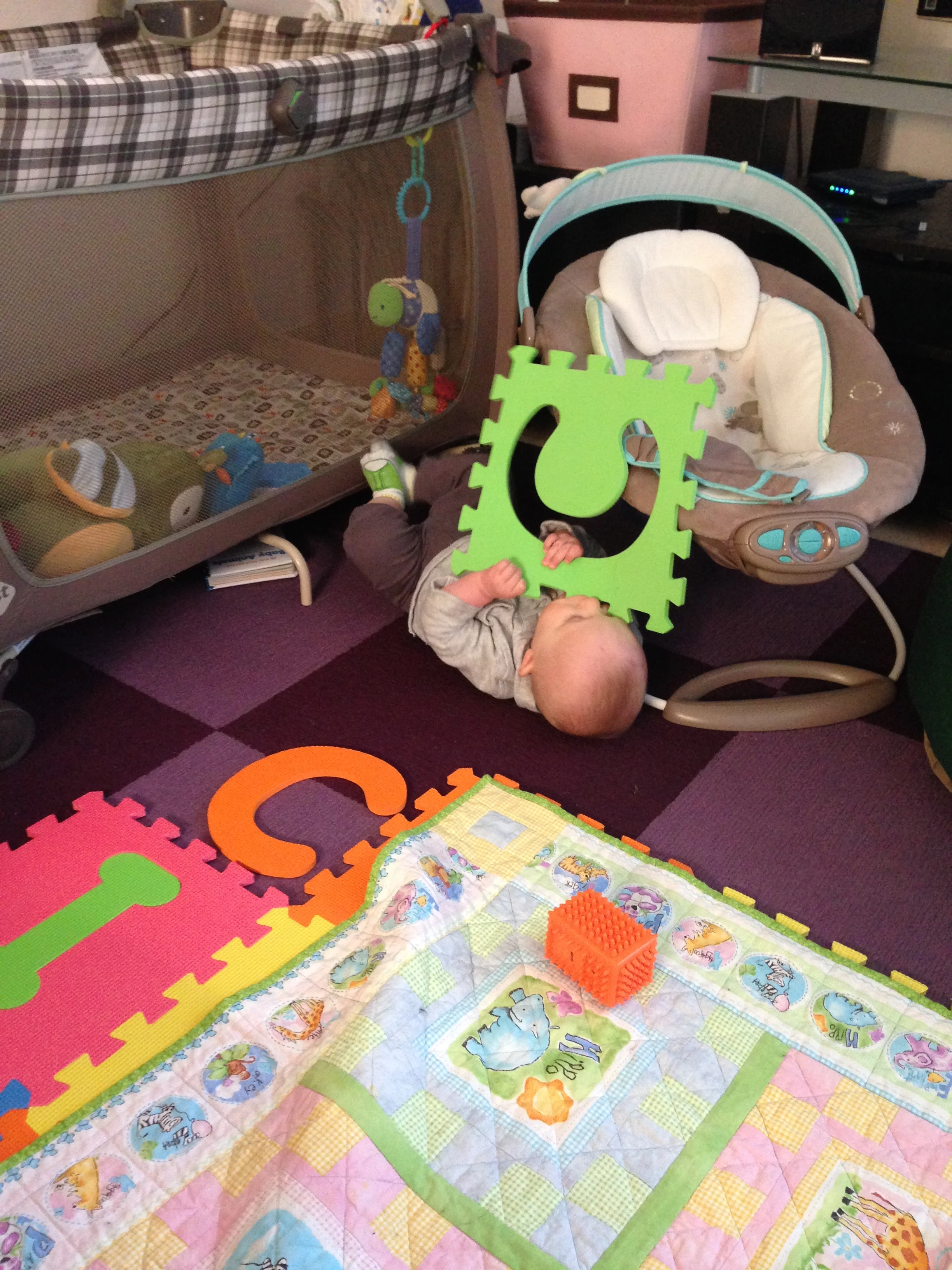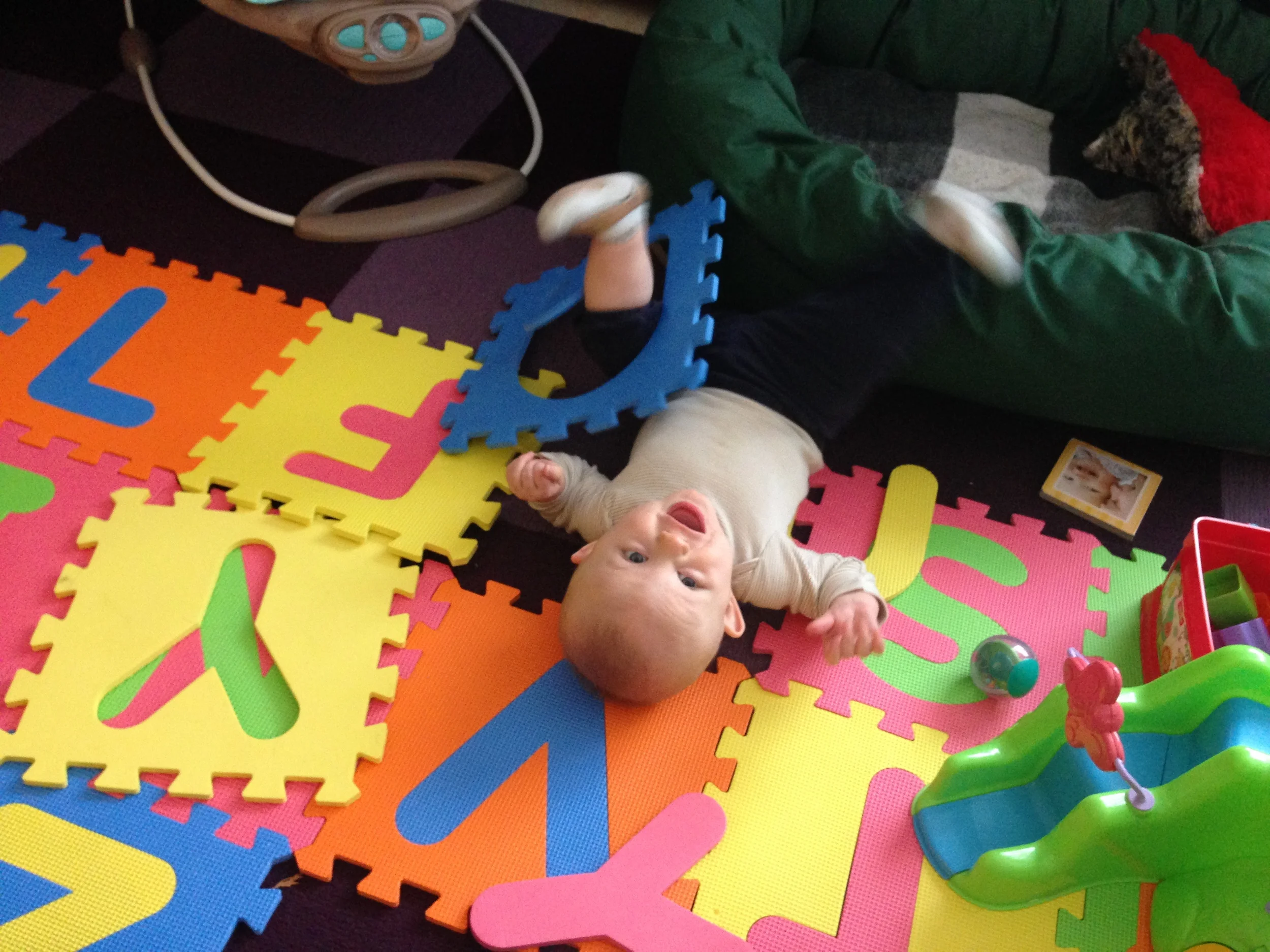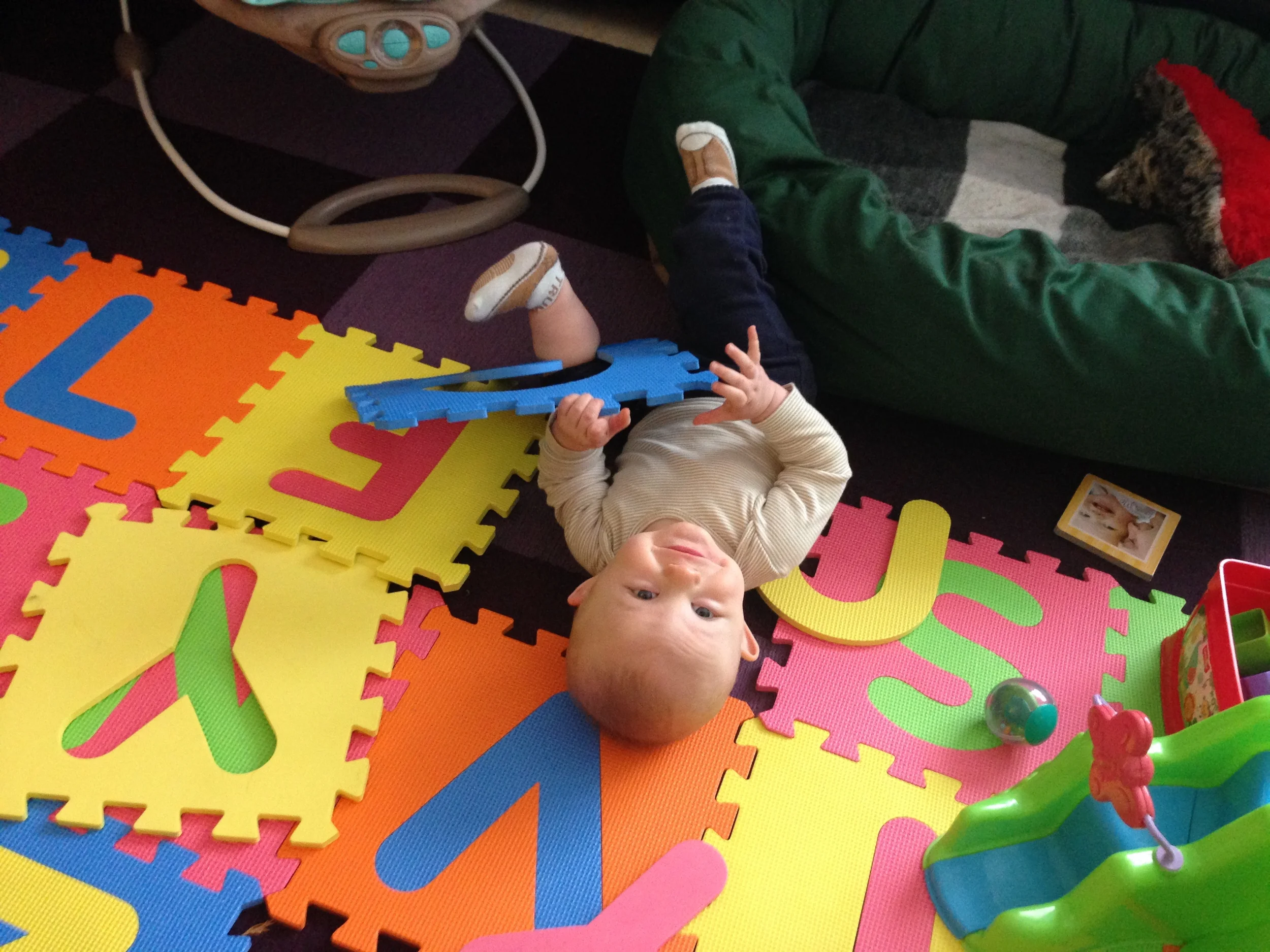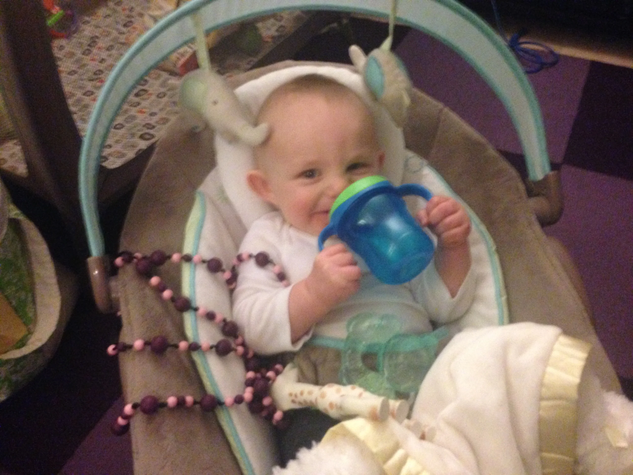 And if you didn't think he was too big before - check this out! The first time I gave him the sippy cup with water he knew exactly what to do with it. Brought it right to his mouth. Of course, everything goes right to his mouth... but still, he's a smarty!