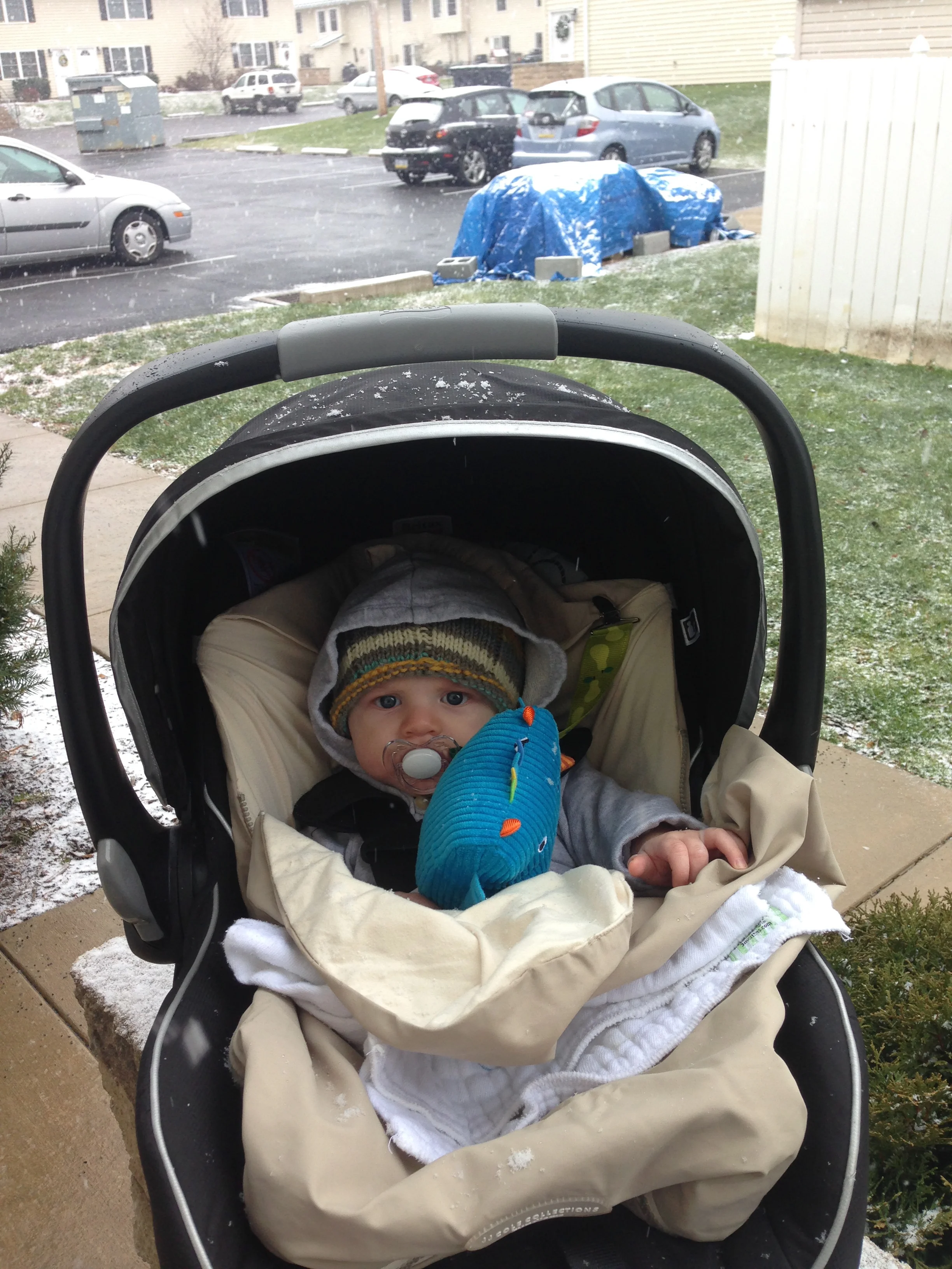 First day of real snow. "Mom what is this cold, wet, white stuff falling on me?" (12/2/15)