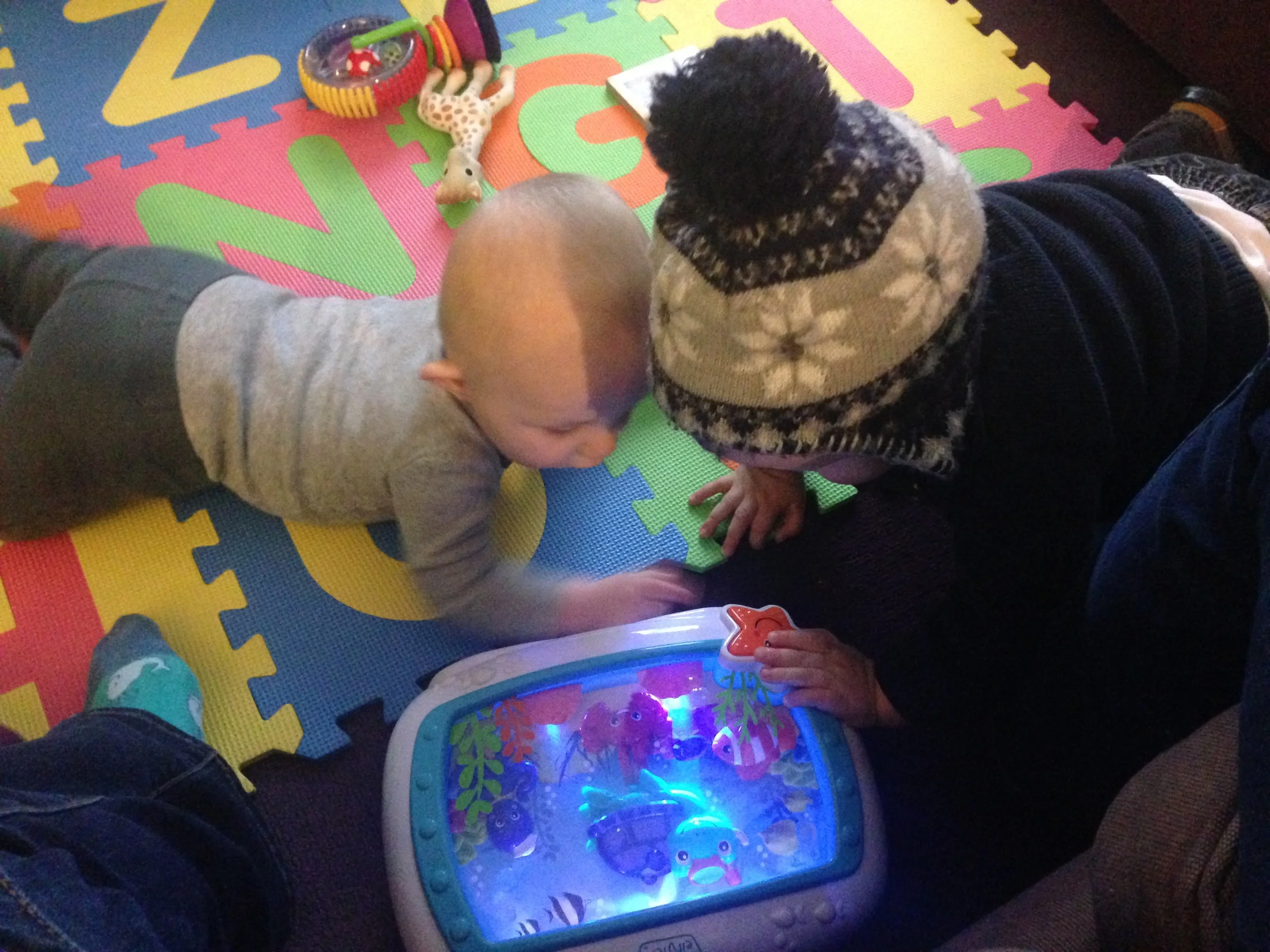 Gabriel & Nathanael are becoming such good buddies. It seemed like they were working together to figure out how to turn this toy off.