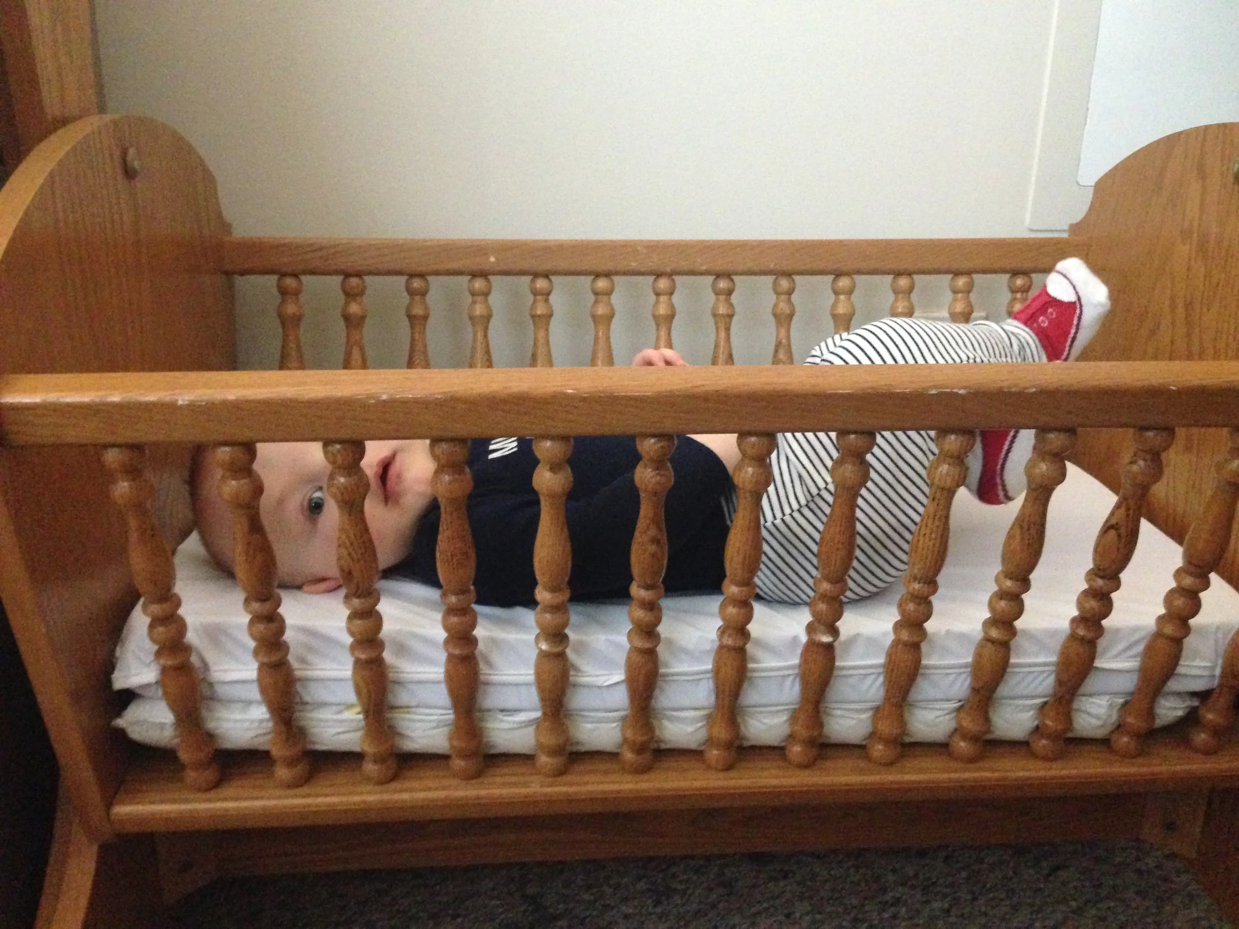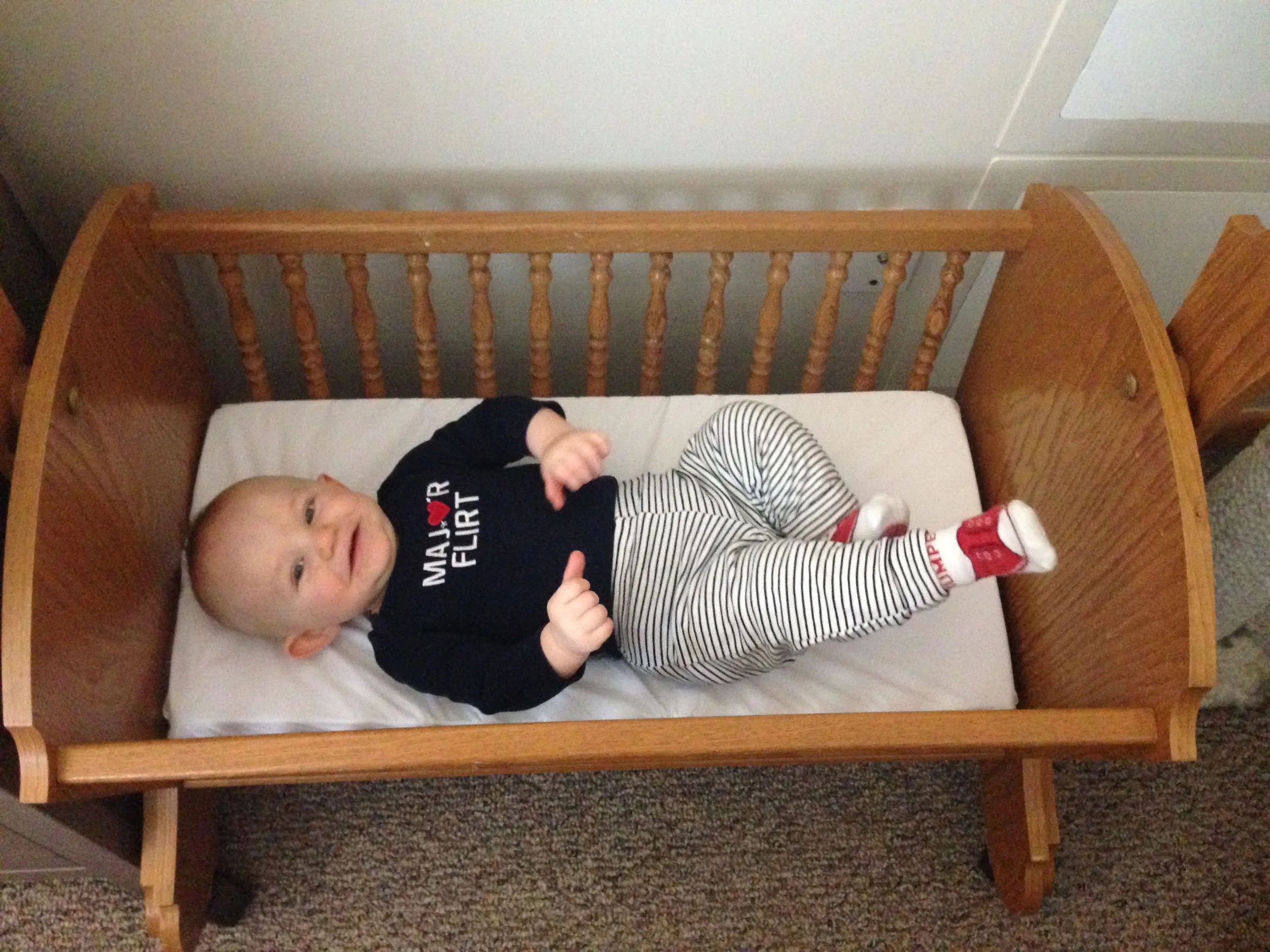 So we decided to really depress ourselves and lay him in his cradle. He used to be so tiny!
