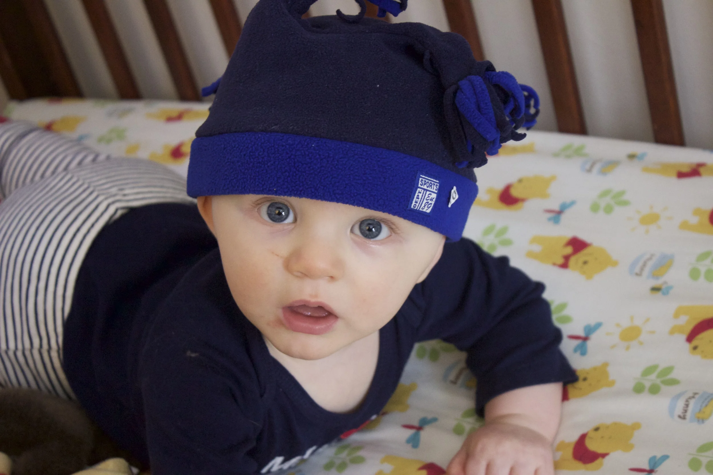 I just found this hat in a bin of "next size up" clothes. It fits perfectly! Thanks cousin Landon & Aunt Hope.