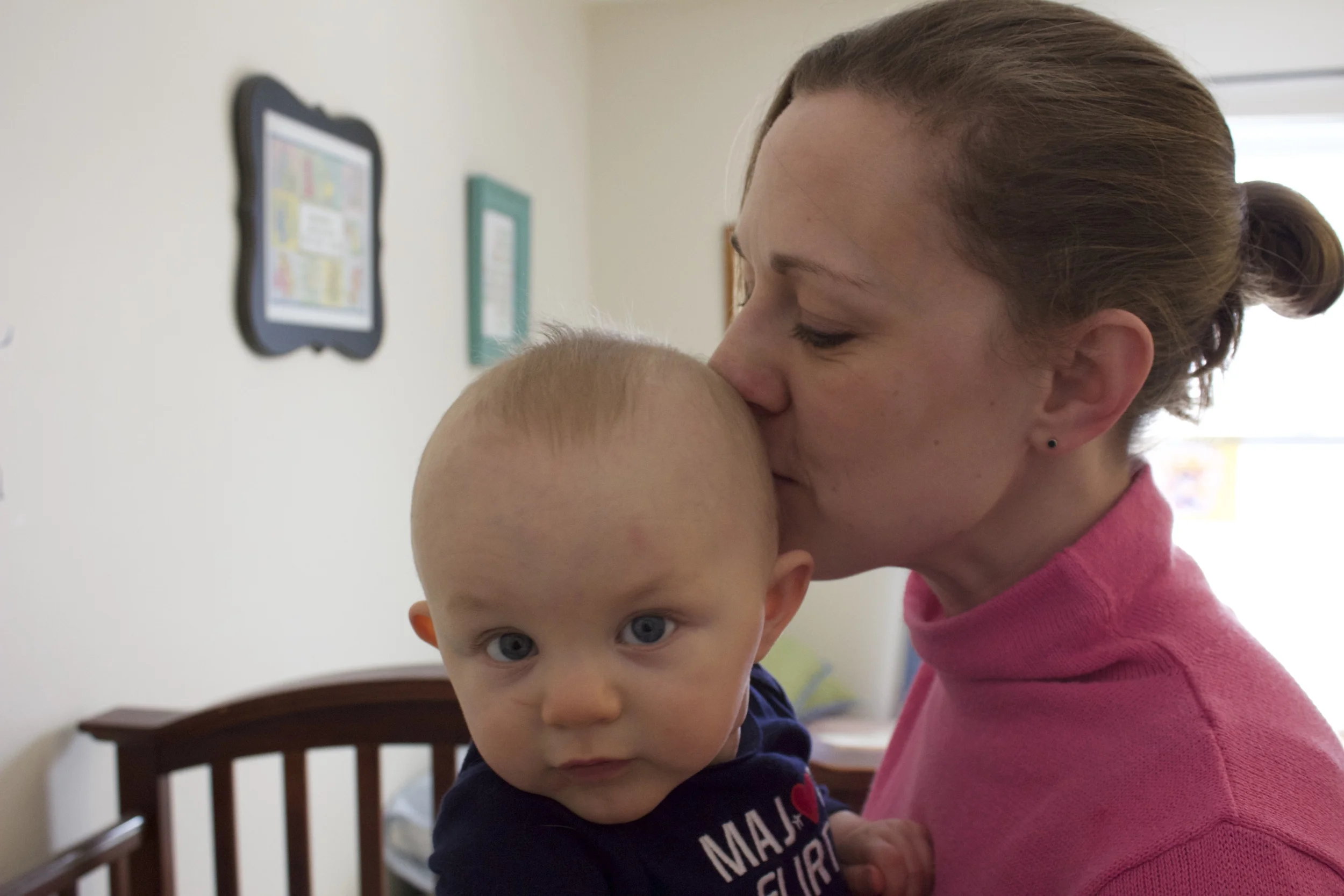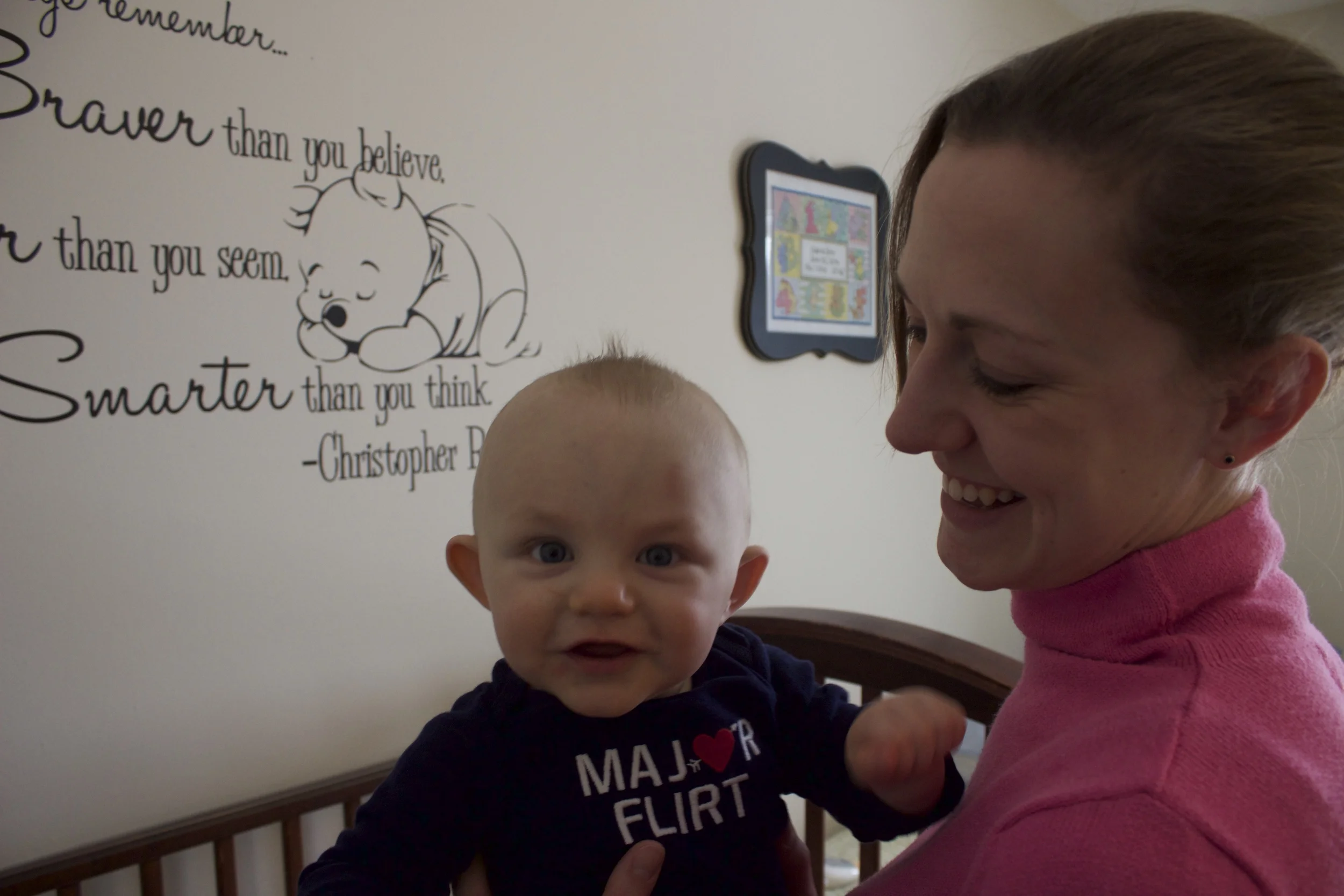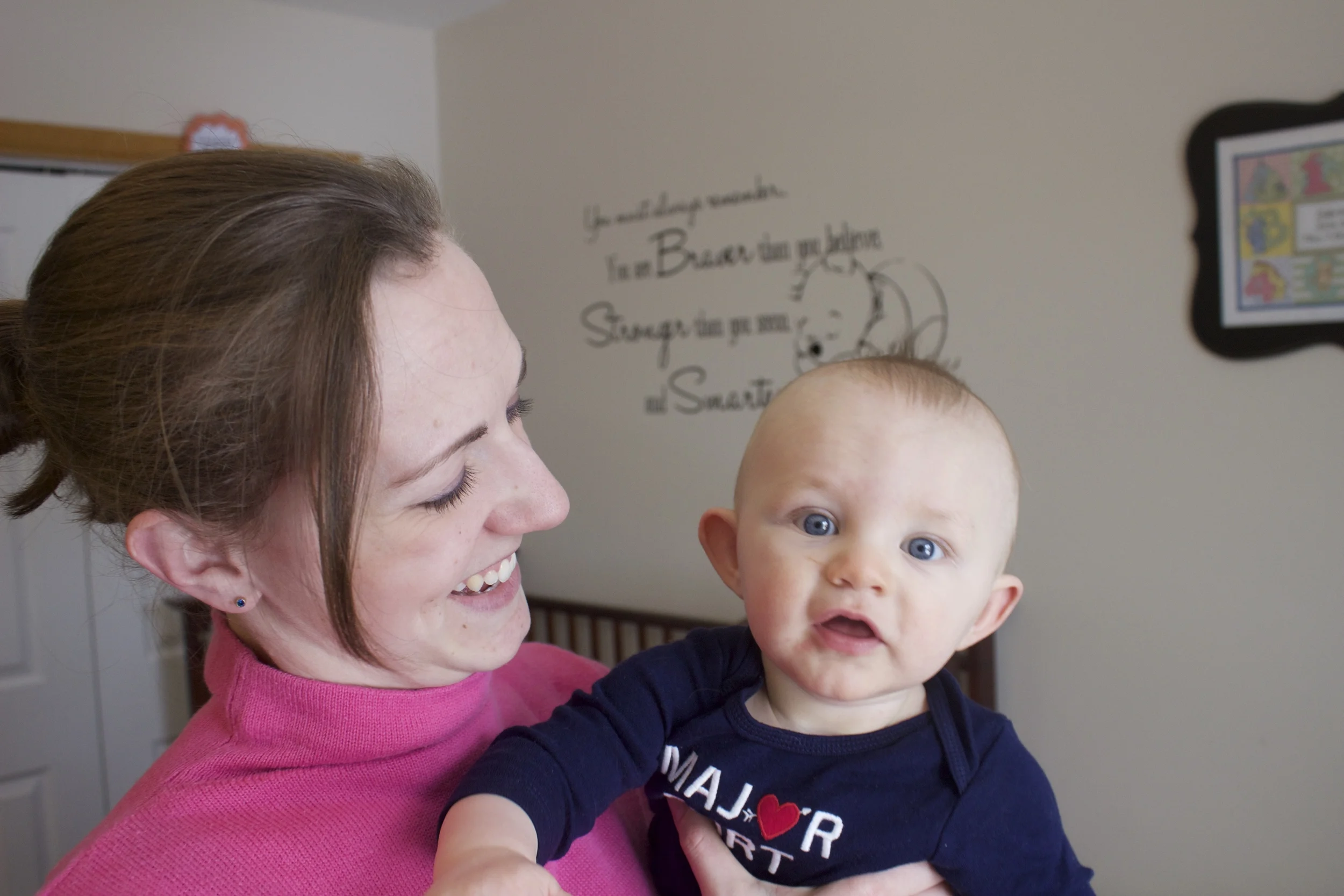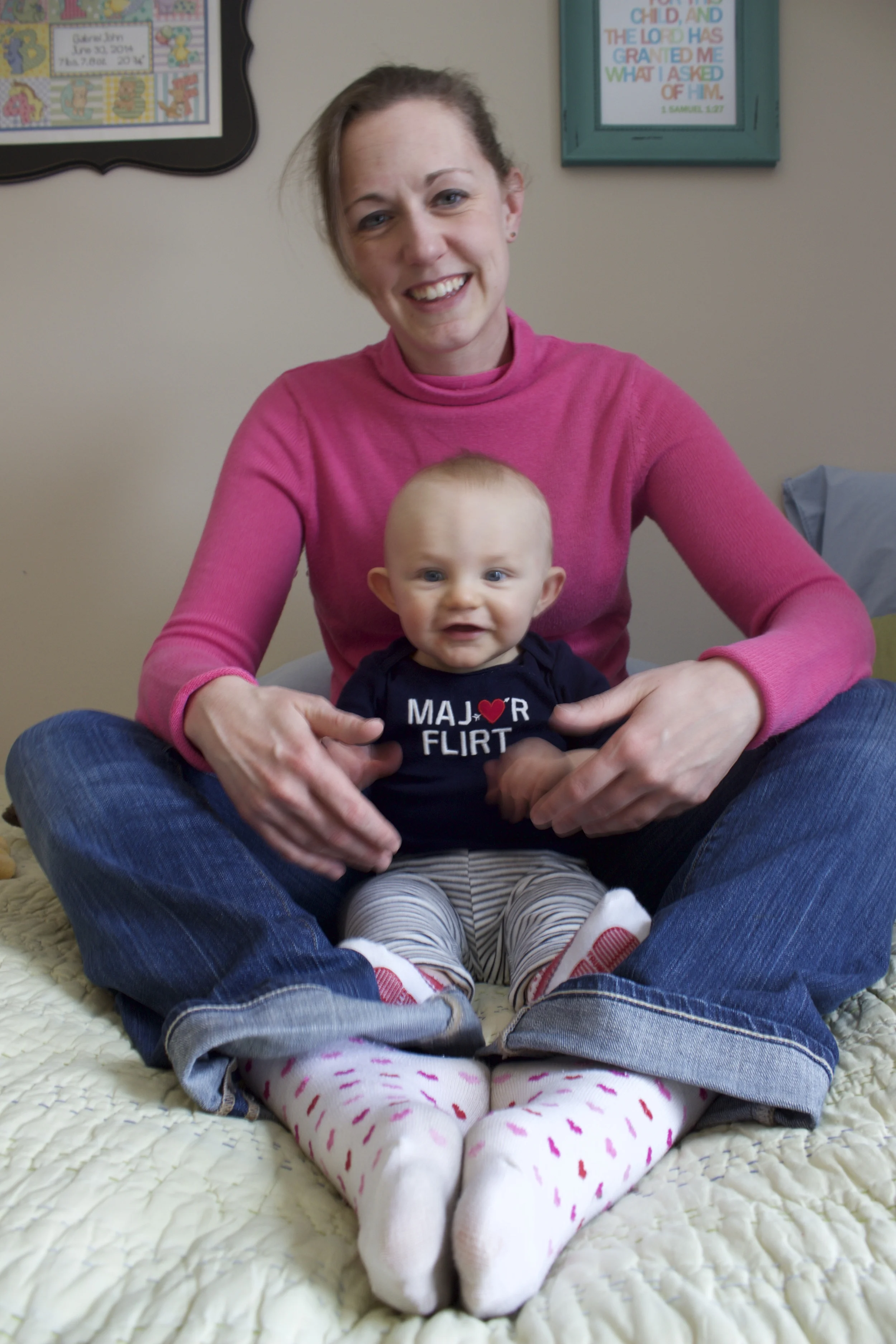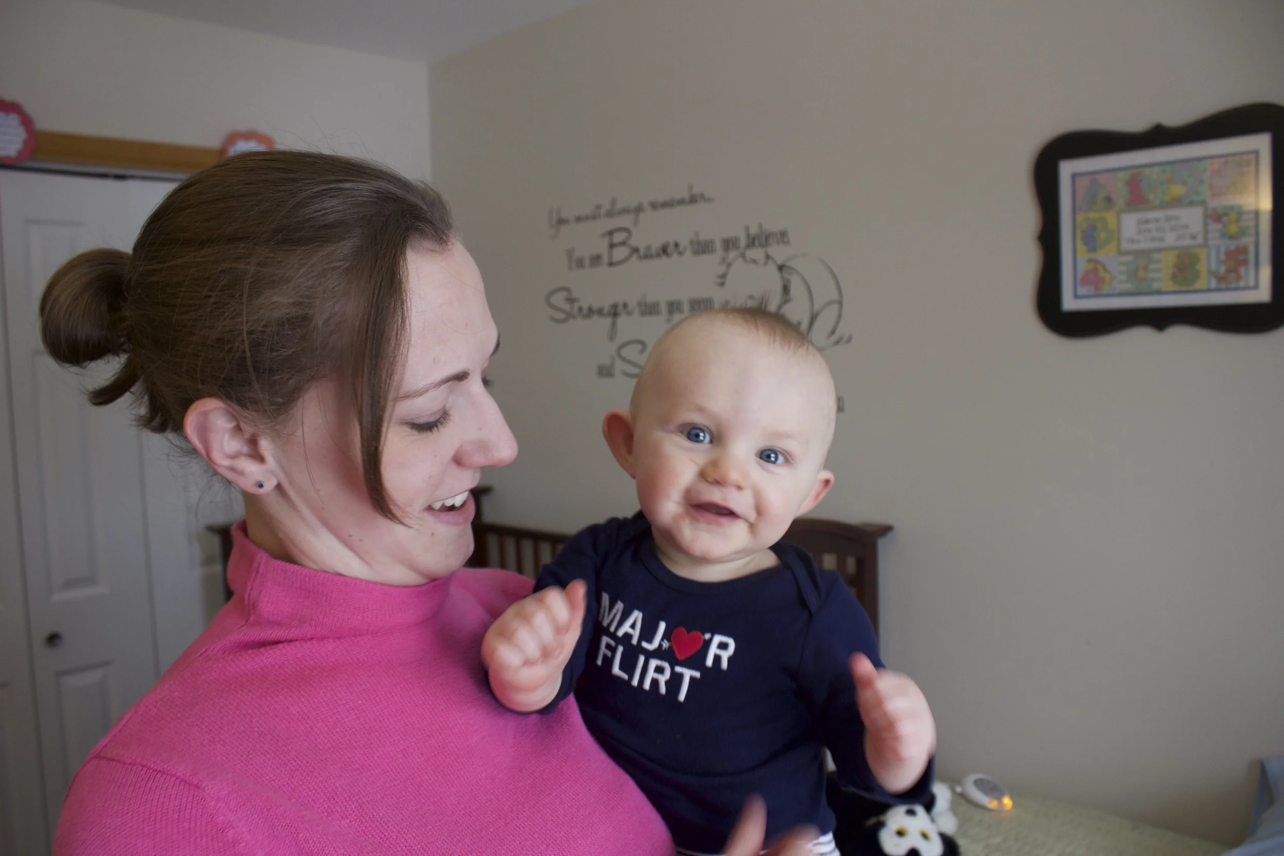 Dad bought him this adorable onesie and wanted to take some Valentine's Day pictures of mom & son. There's definitely a star in this show.