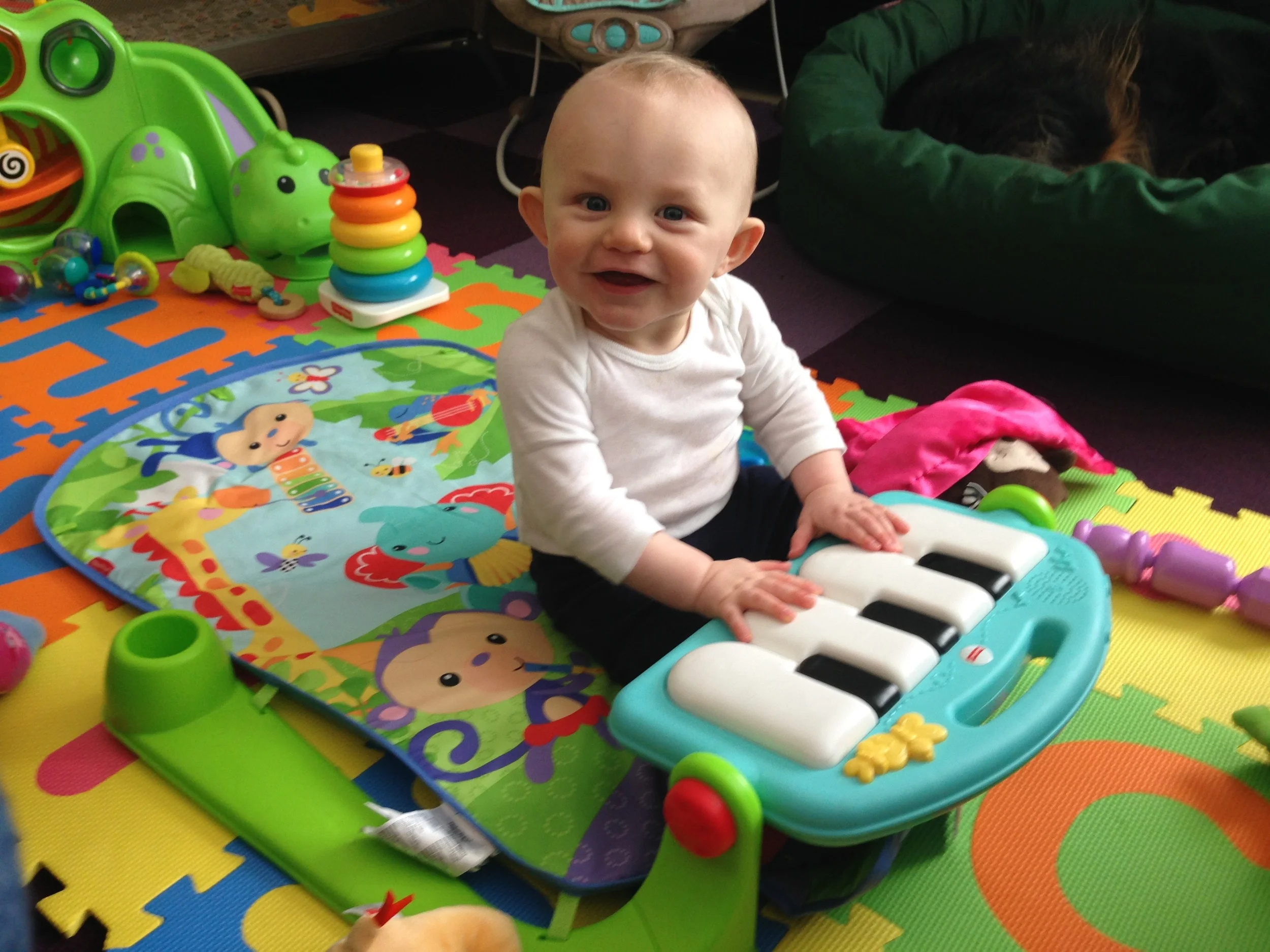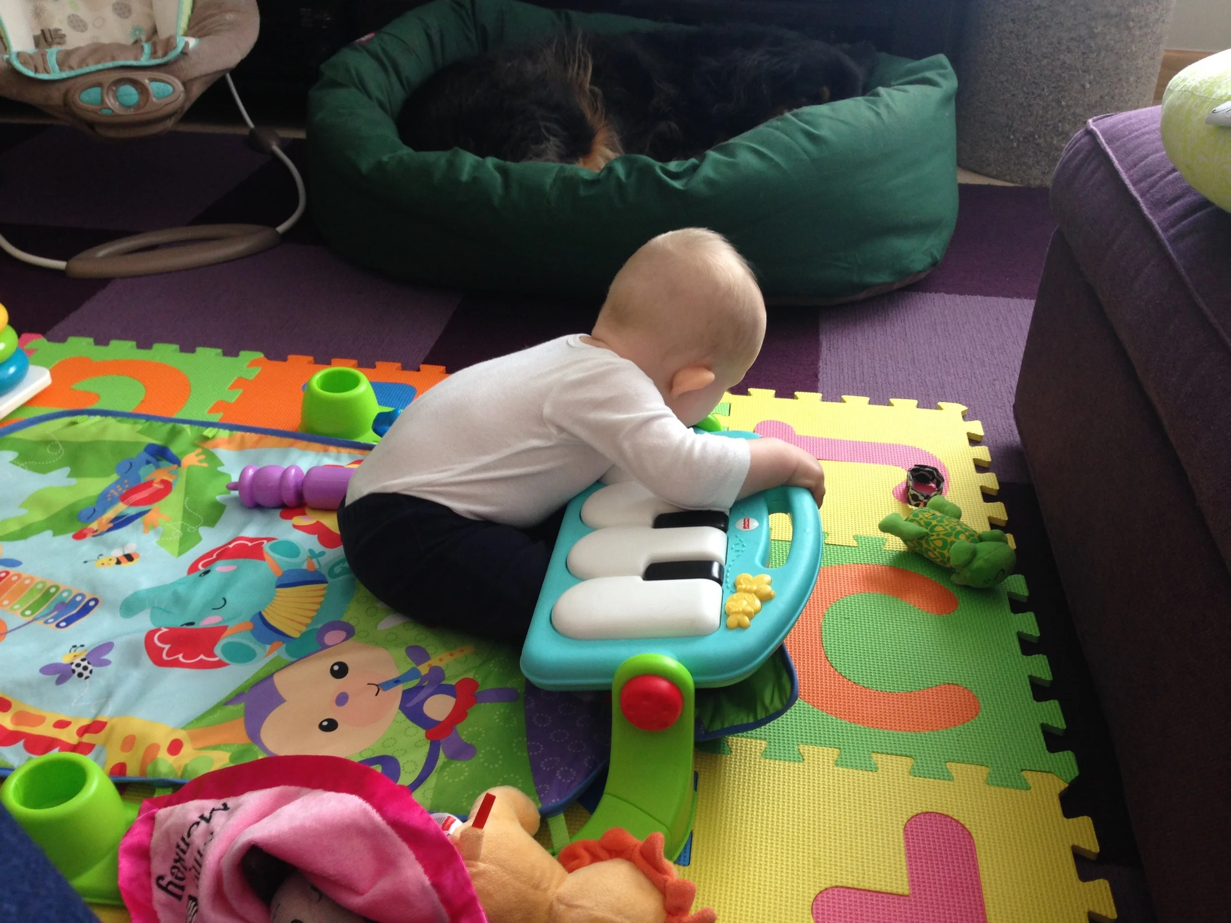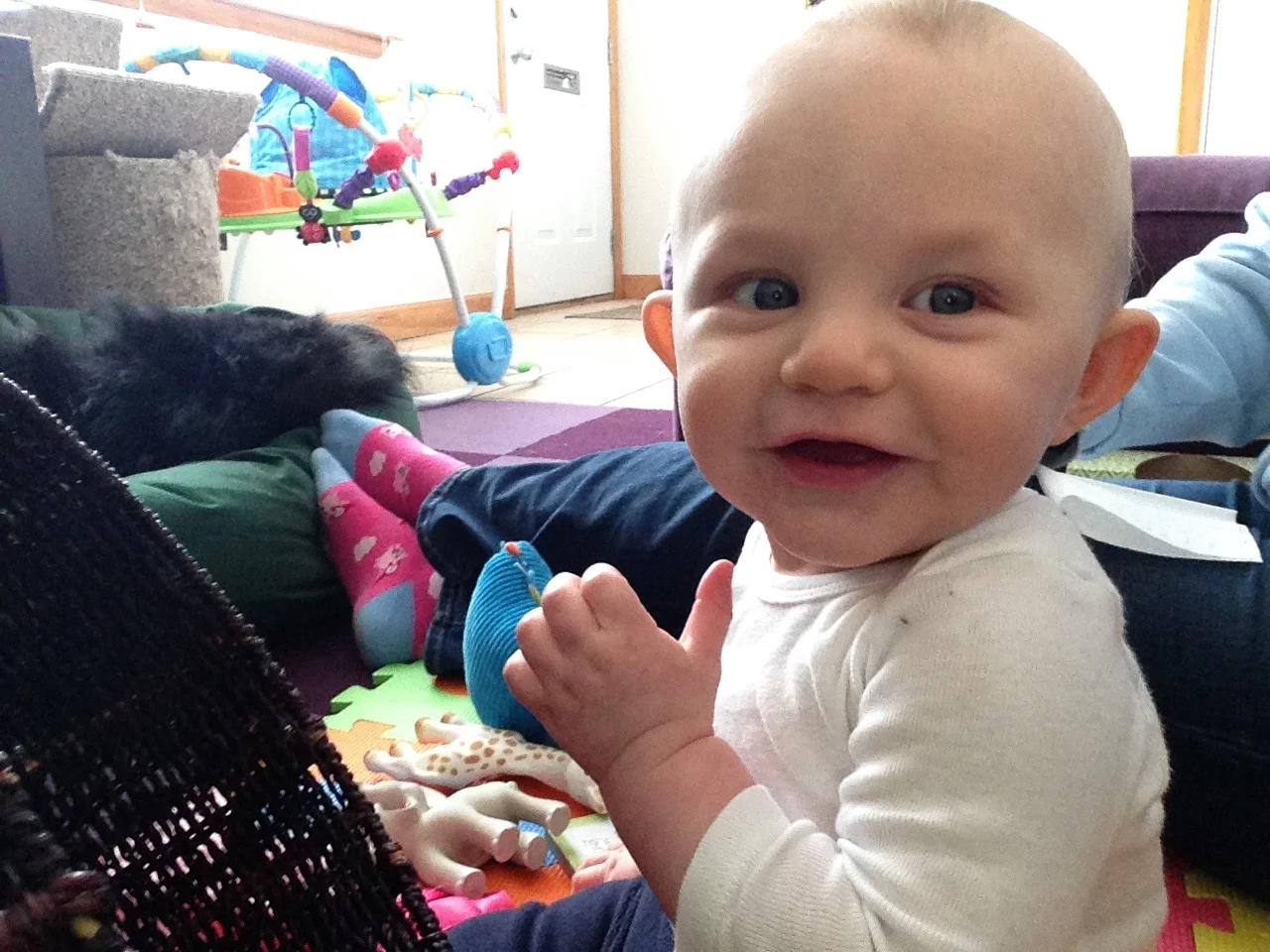 We're so grateful that Gabriel generally keeps himself entertained. A little piano (to play or eat), a basket of toys to pick through, and he's set for a while. Just look at that smile! Which as of this week has a 2nd tooth in it (bottom middle right)!
