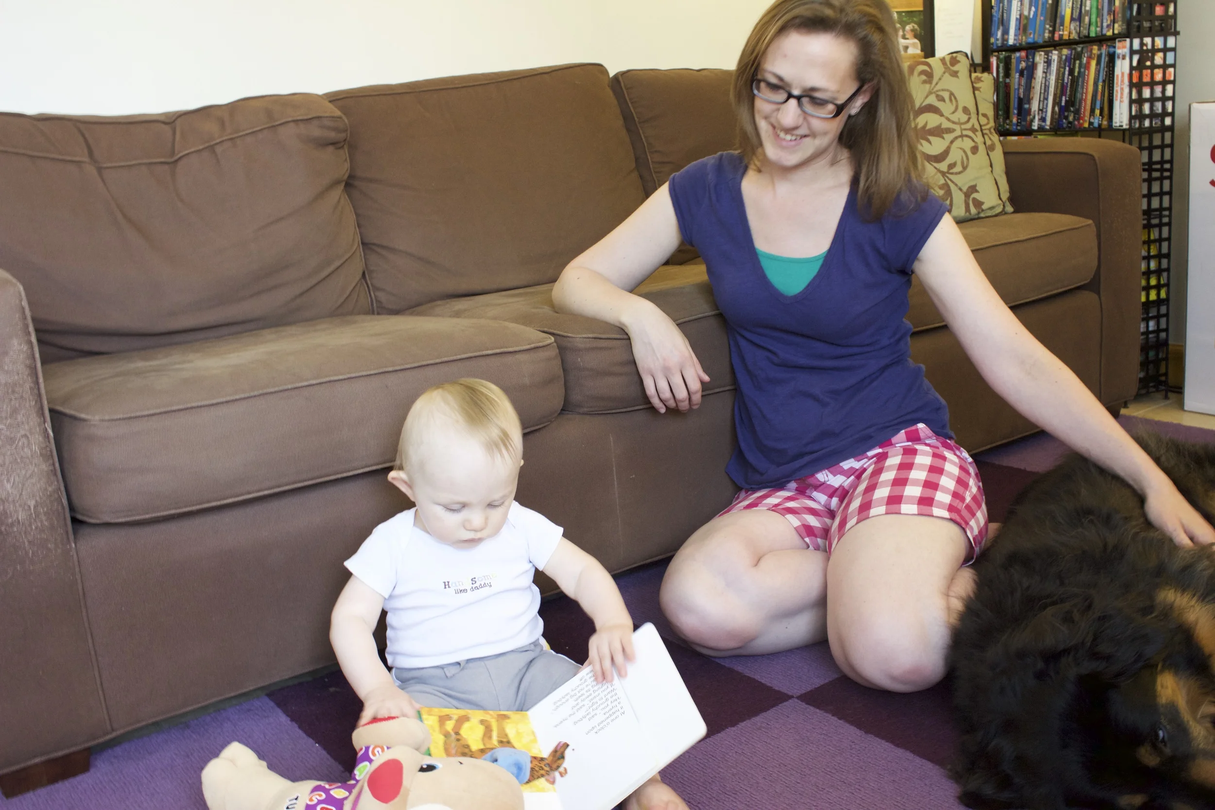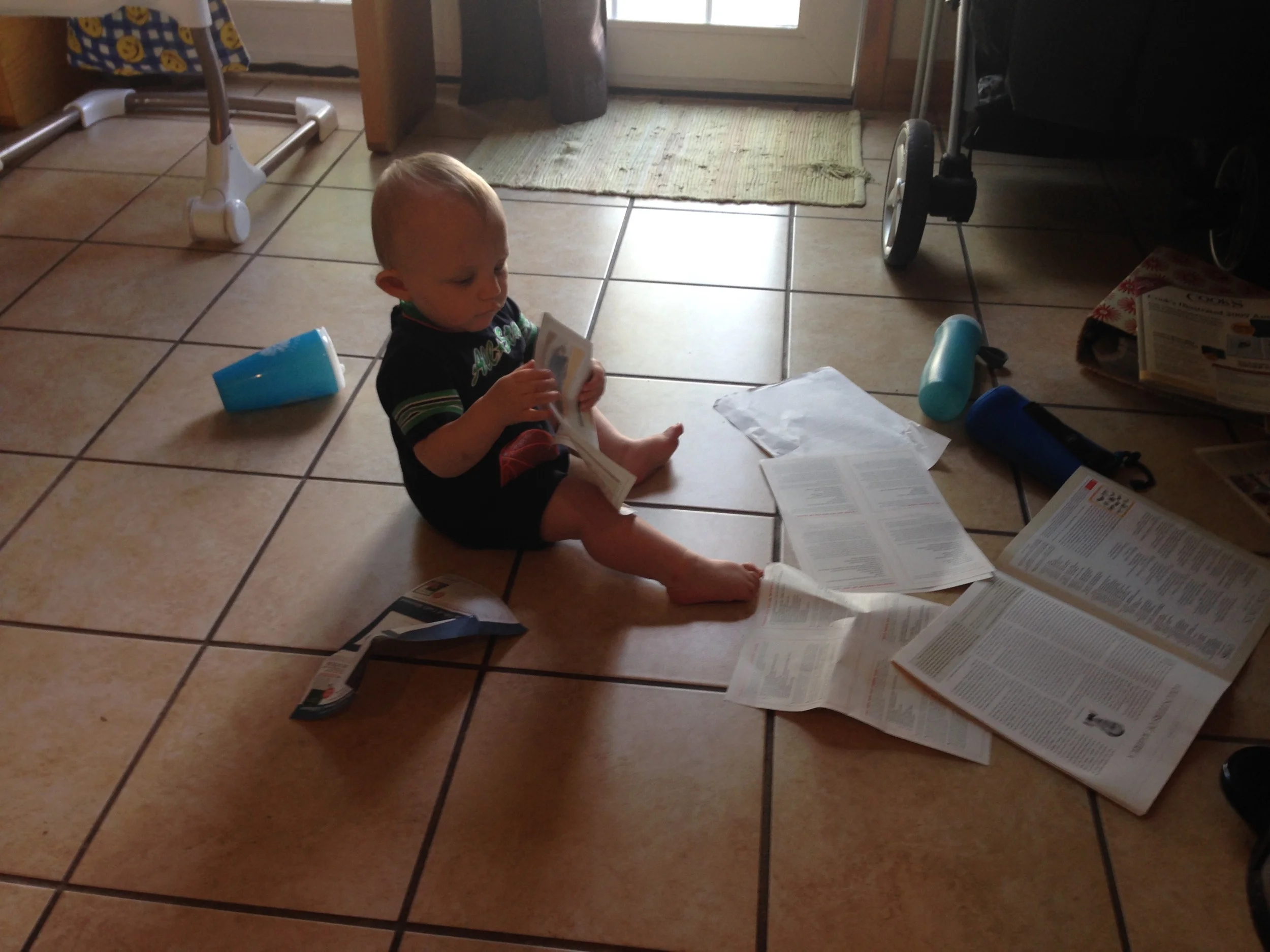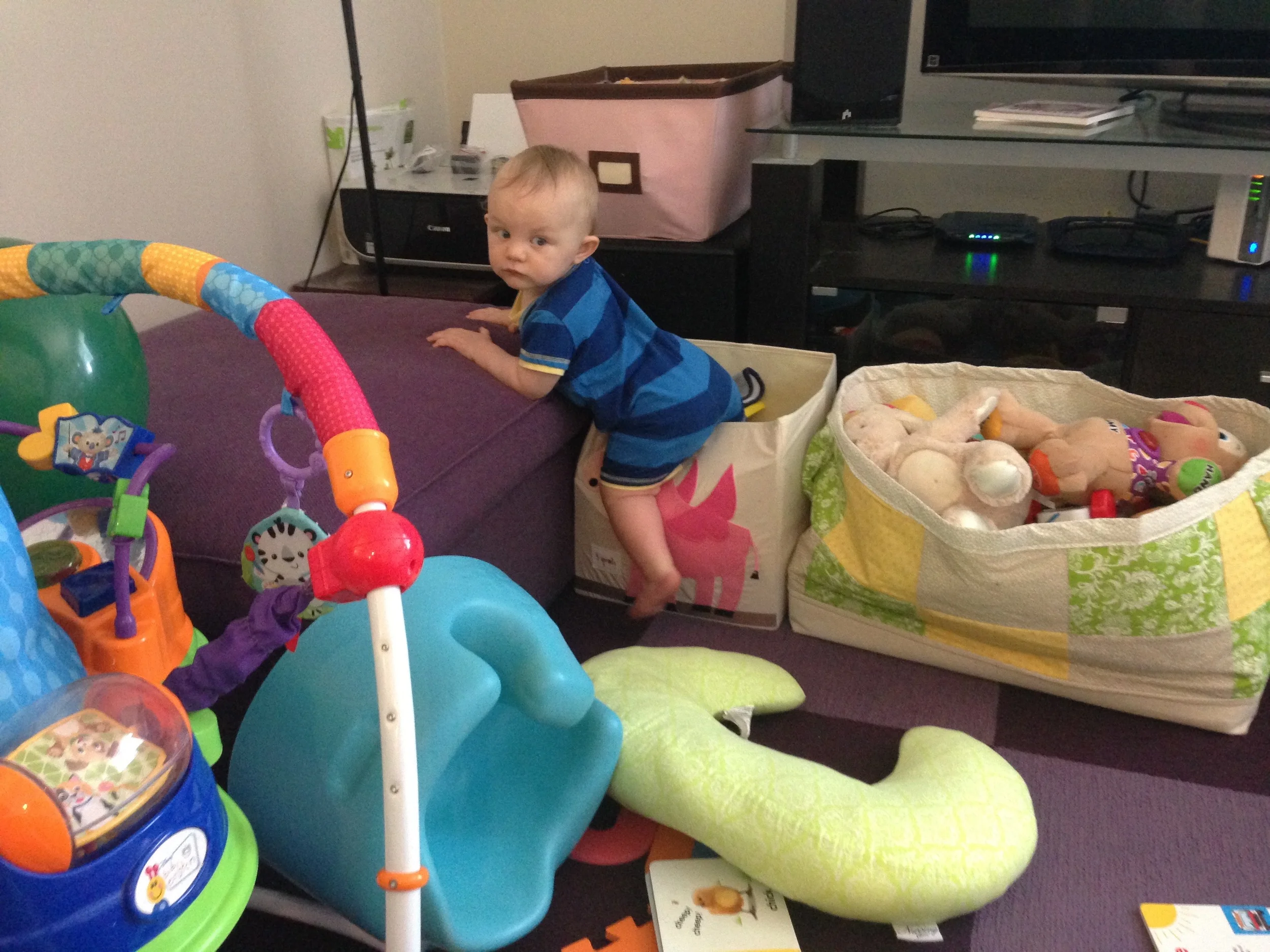 Such a mean mom... he pulls up to stand at the couch and I make him walk back and forth to get his book. But he's *walking* holding onto the couch. How crazy?!?