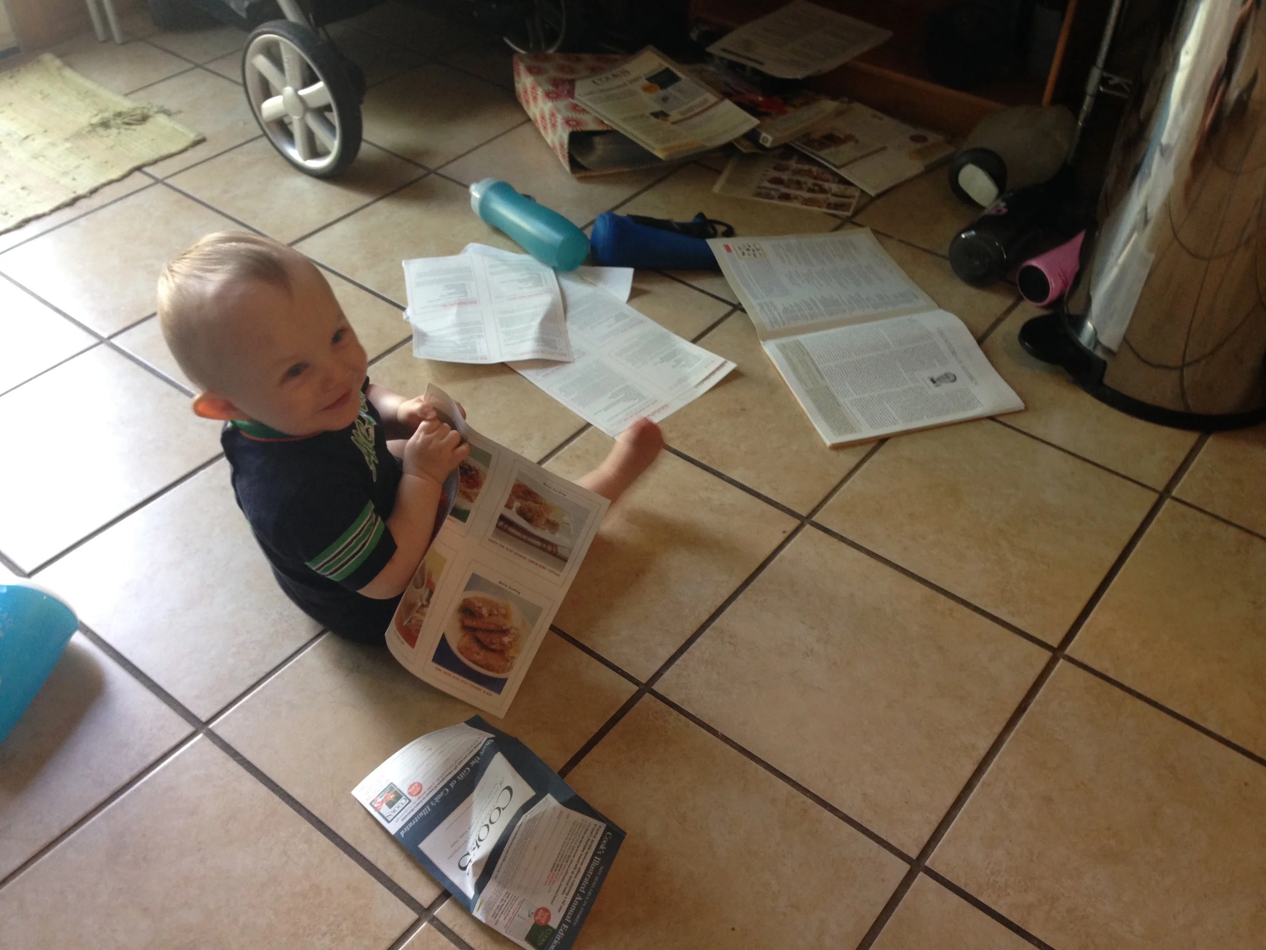 Play time in the kitchen! He has so much fun tearing apart anything that I'll let him.