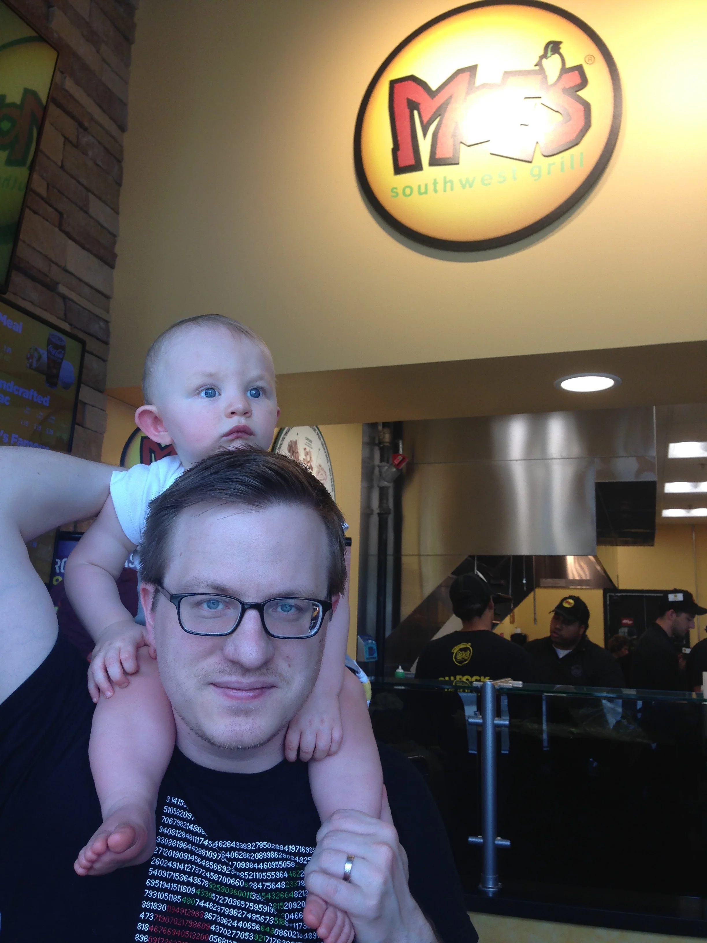 Mom & dad are SUPER excited that Moe's is finally open! :-) So naturally Gabriel is forced to be excited too. This was the first time he had food from a restaurant - yummy cheese quesadilla.