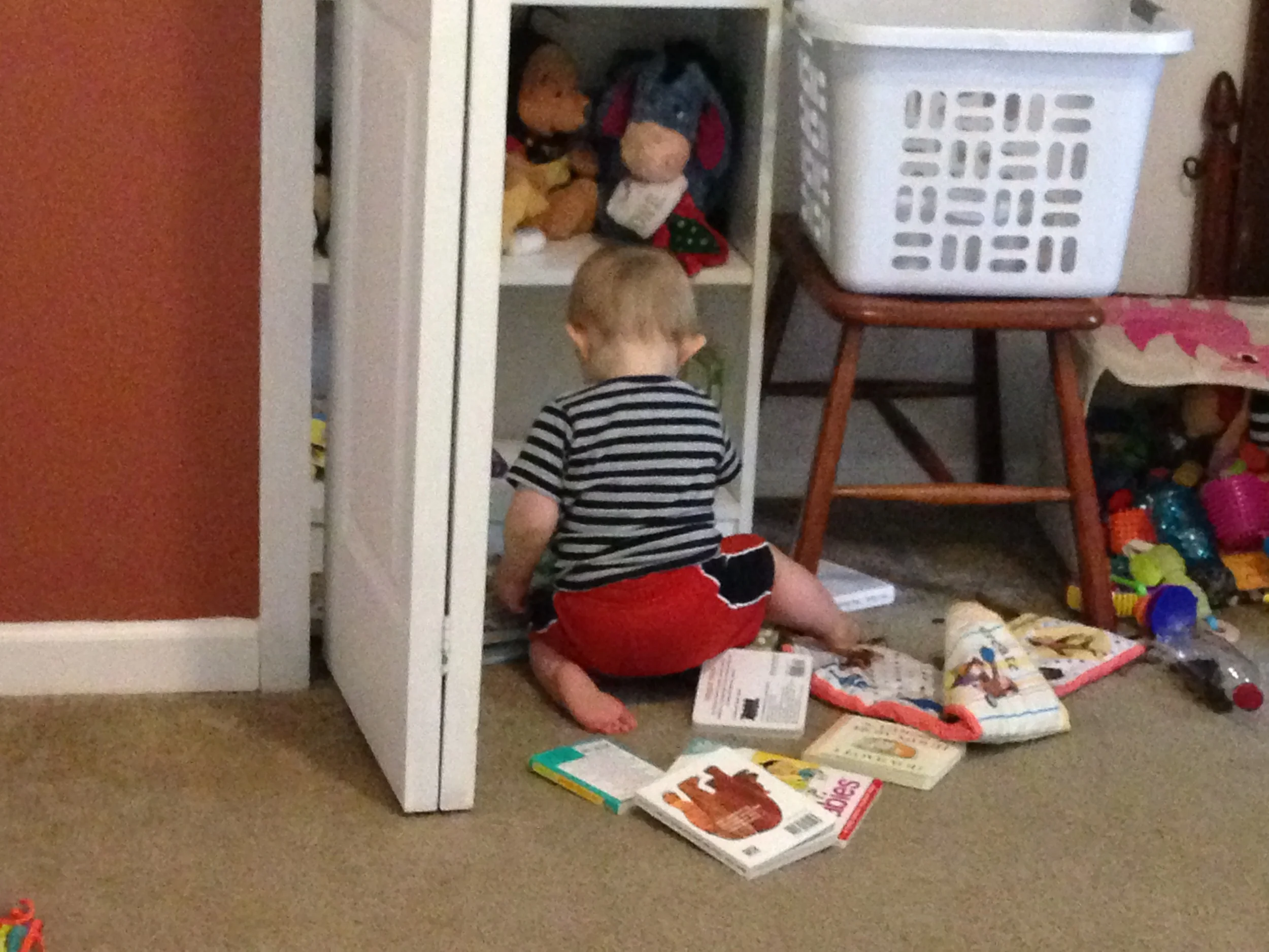 It's so nice that our boy has space all his own. He loves, loves, loves to go in his room and pull out a stack of books and sit and read.