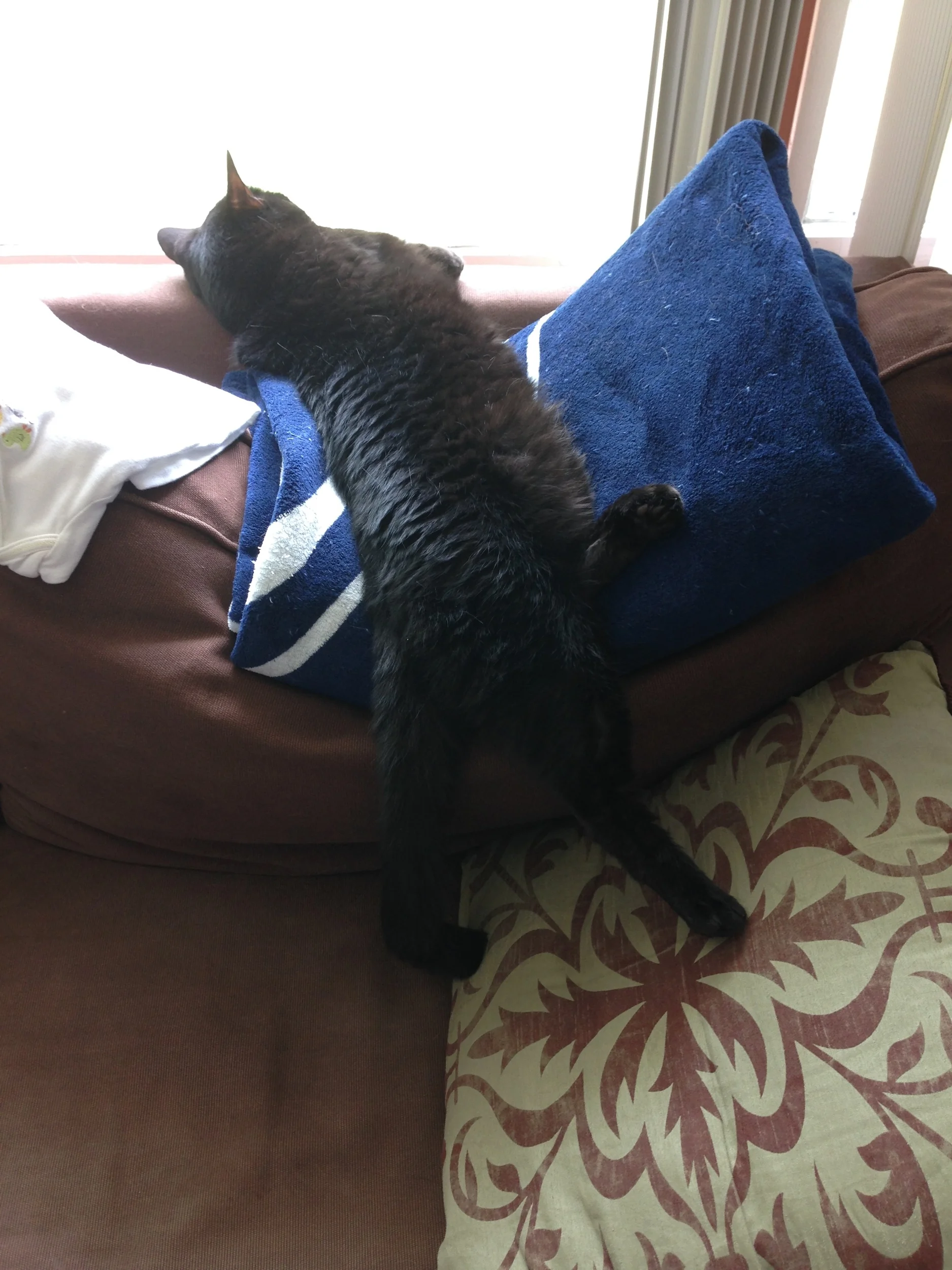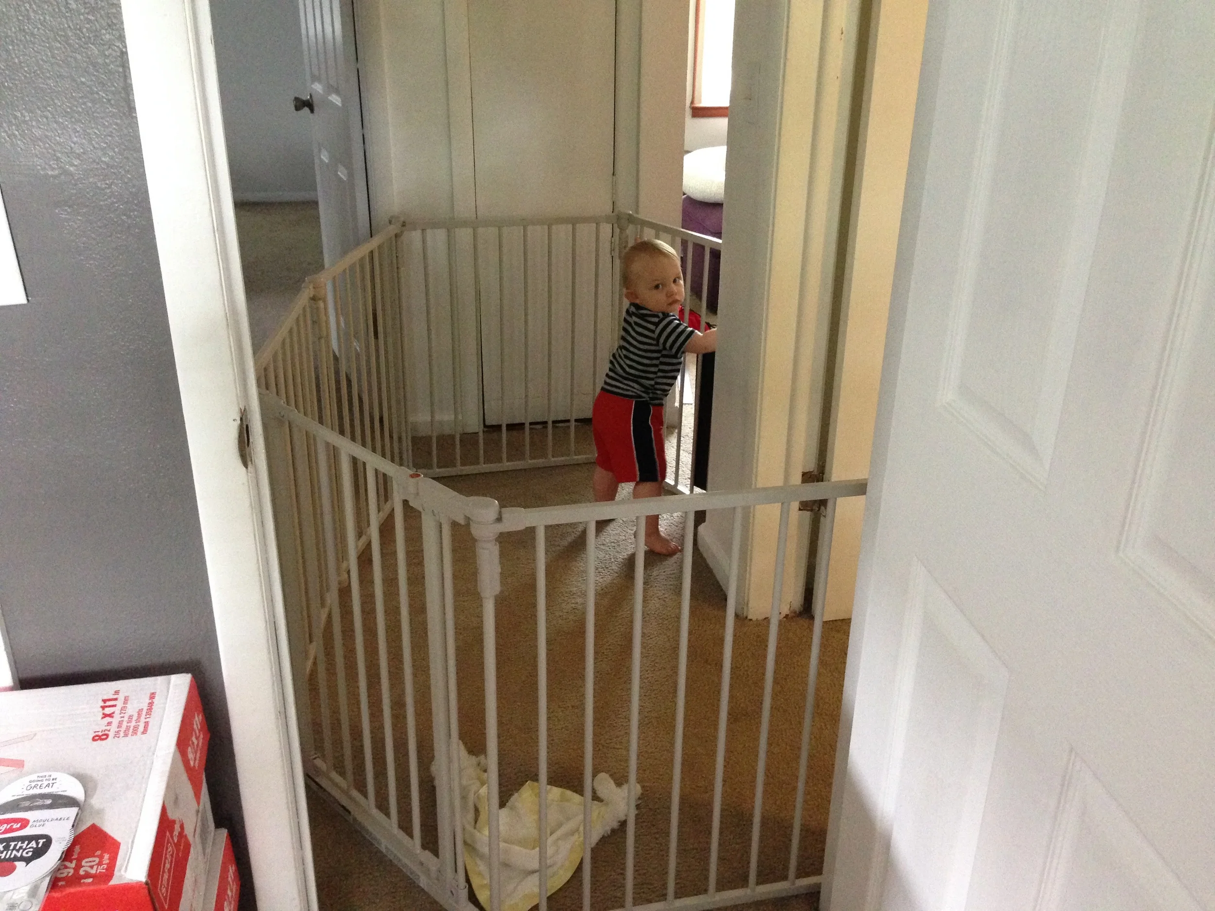 Resetting the entertainment center means the boy must be caged in a different place for a bit. He doesn't seem upset, just curious.