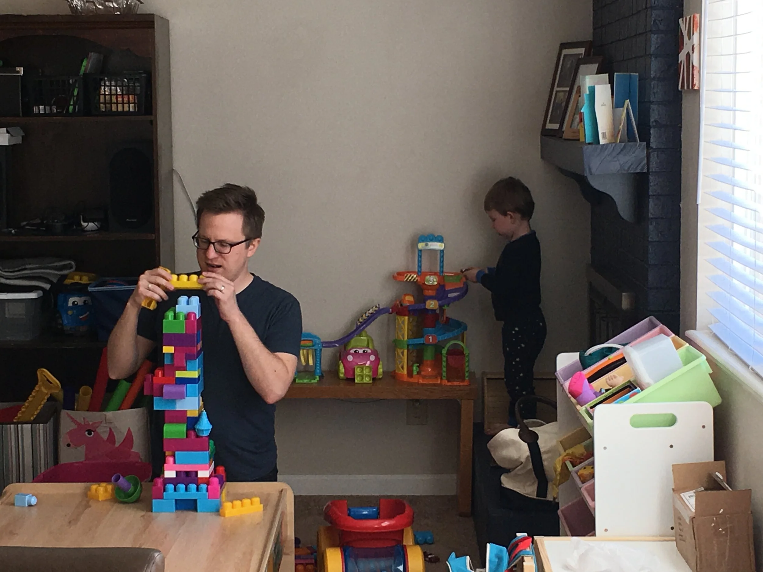 Yes, a huge mess to clean up at some point. But I try really hard to always see this as a great thing. It means we played, and had fun, and he got to explore and imagine however he wanted.