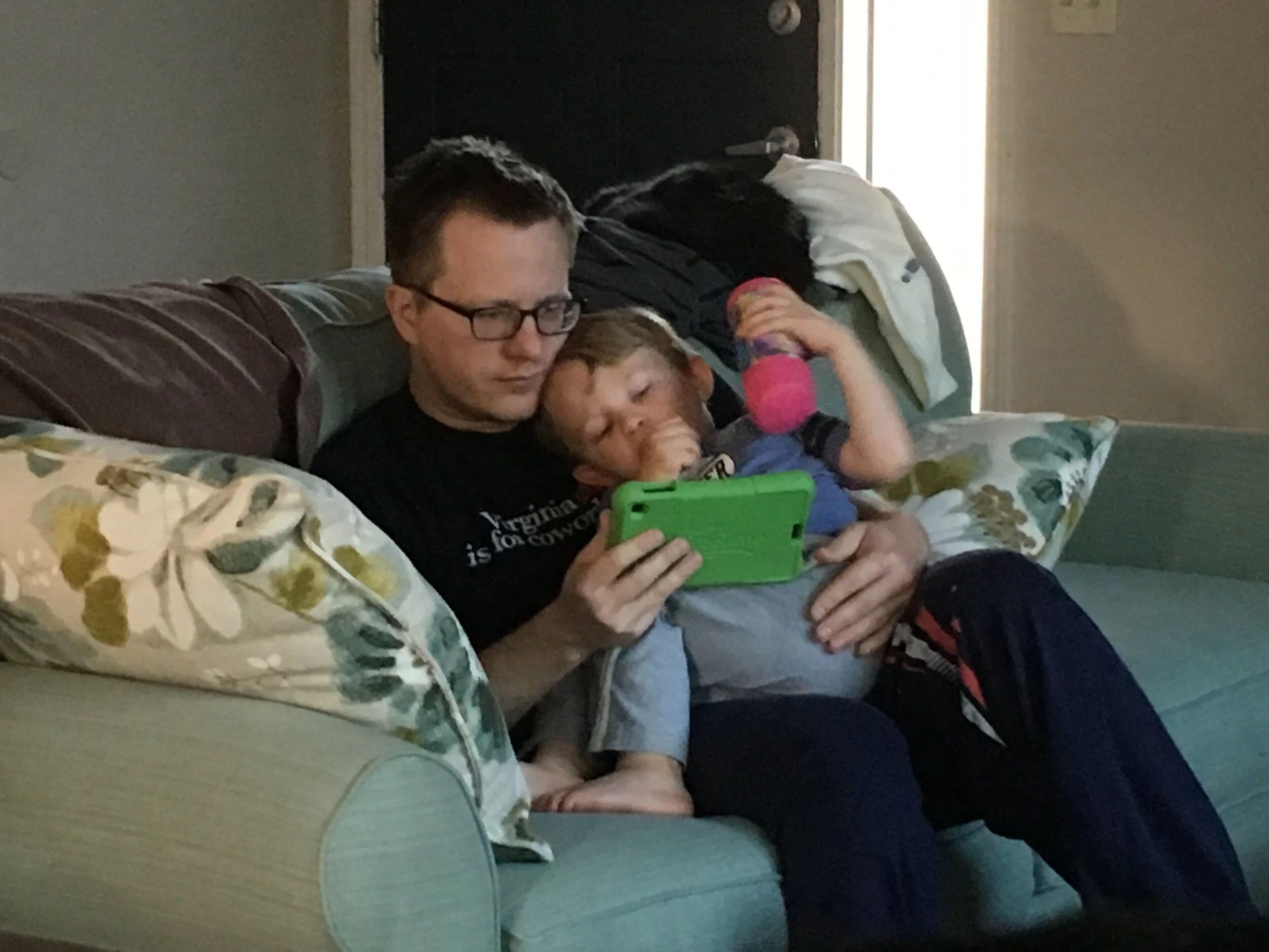 Gabriel nearly always spends part of nap time “reading” to himself. I can’t quite tell what book he’s reading here, but it’s still awfully cute.