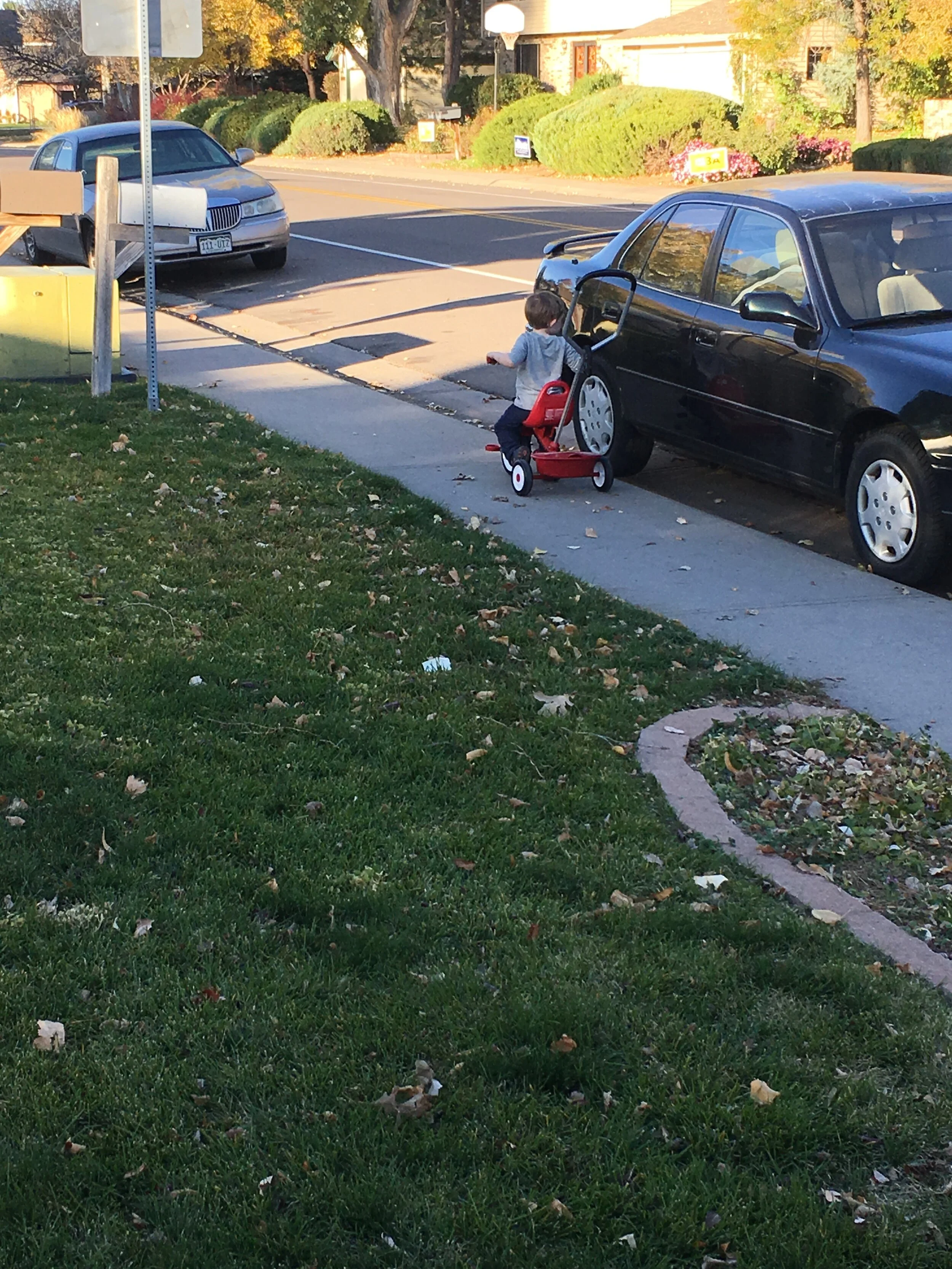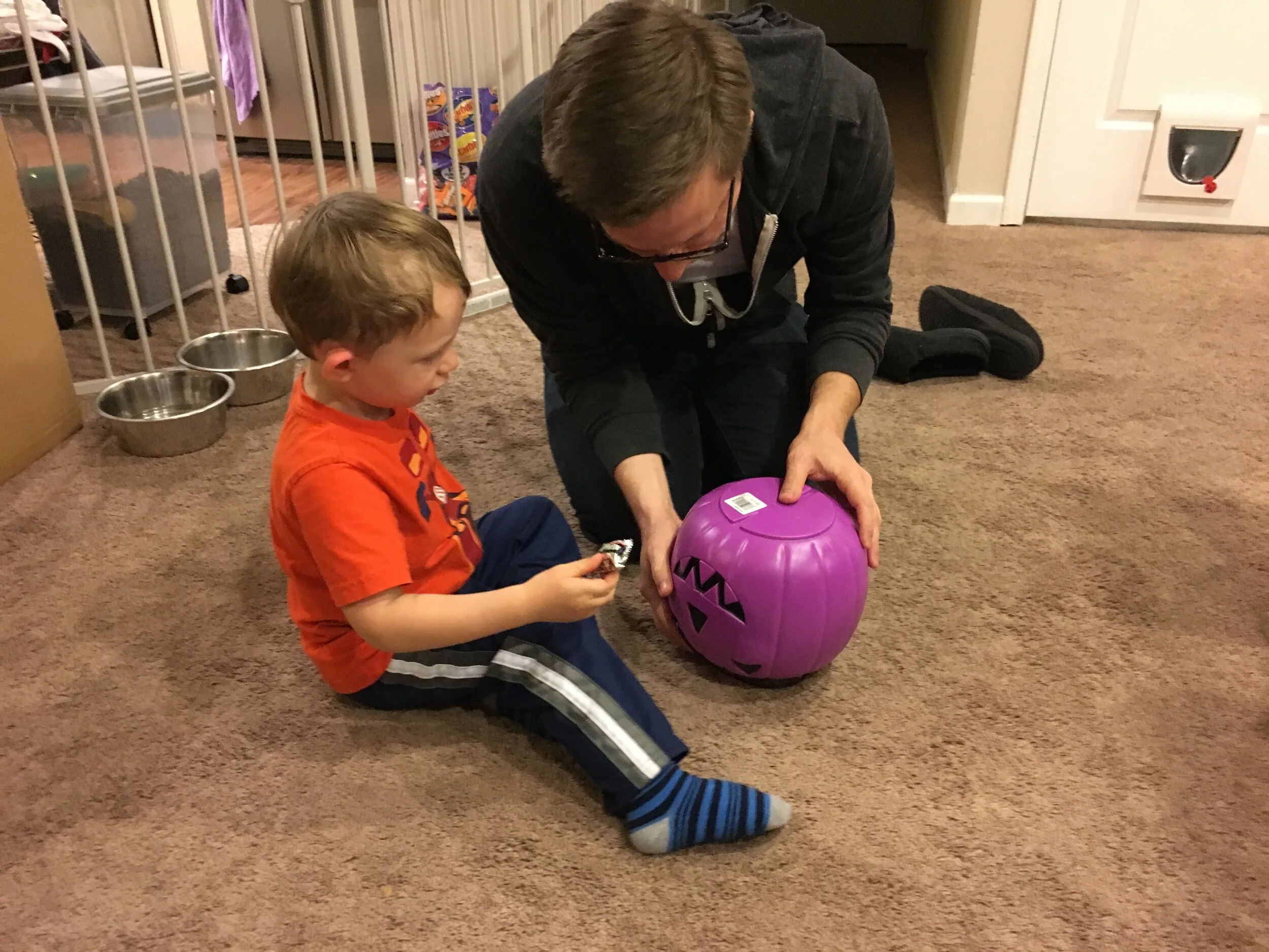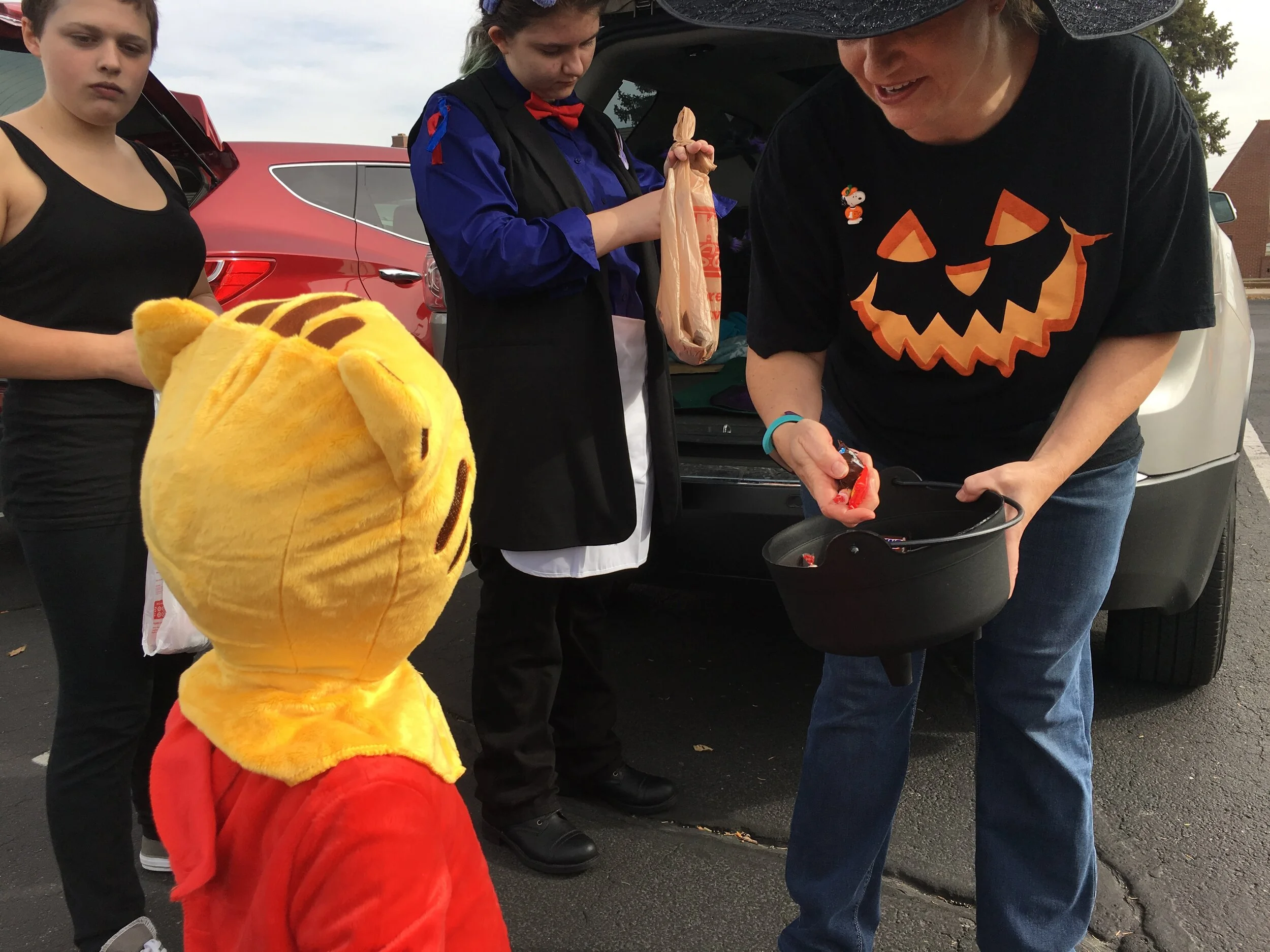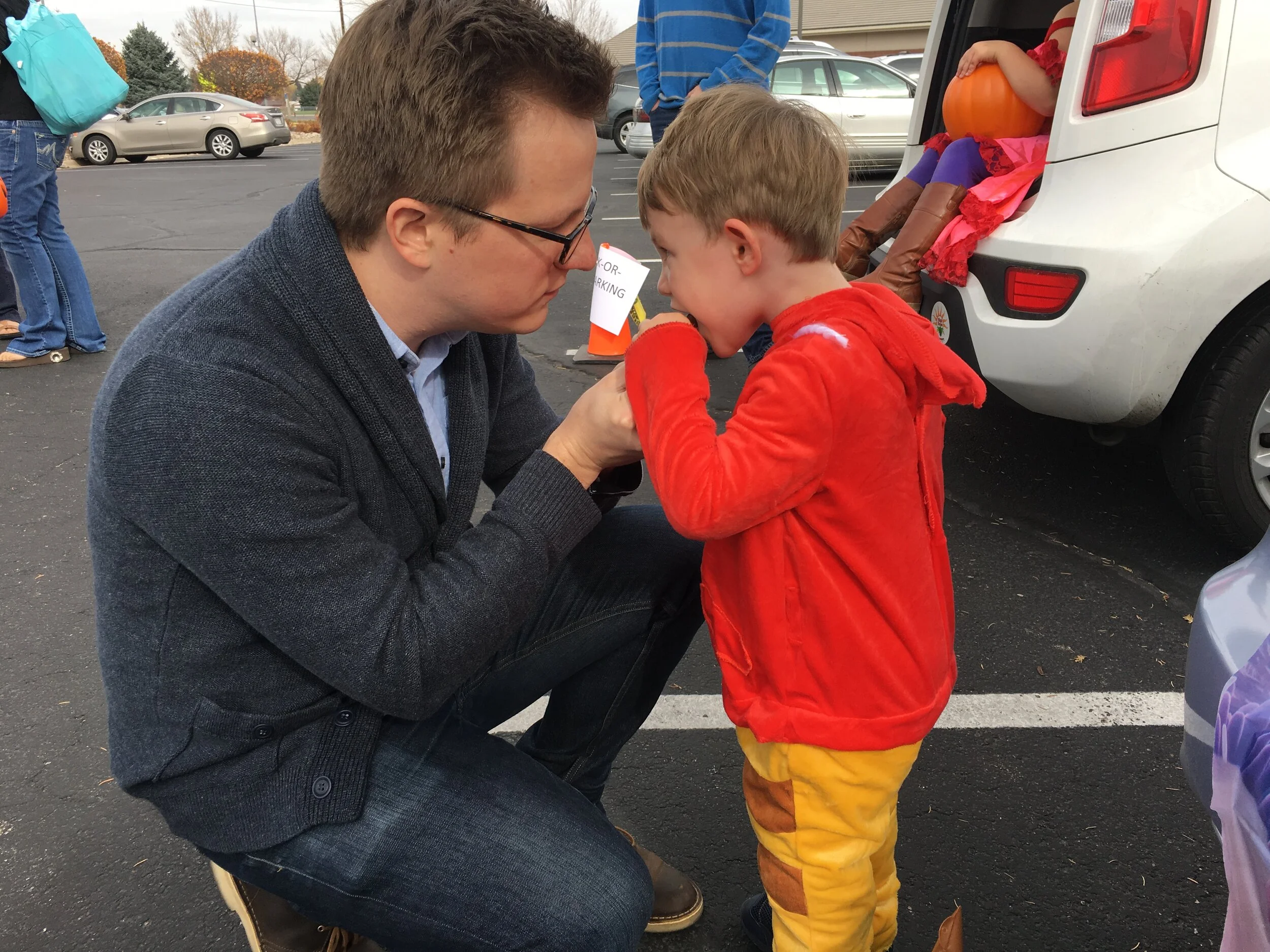 Trunk or treat at church. He’s getting the hang of trick or treating!